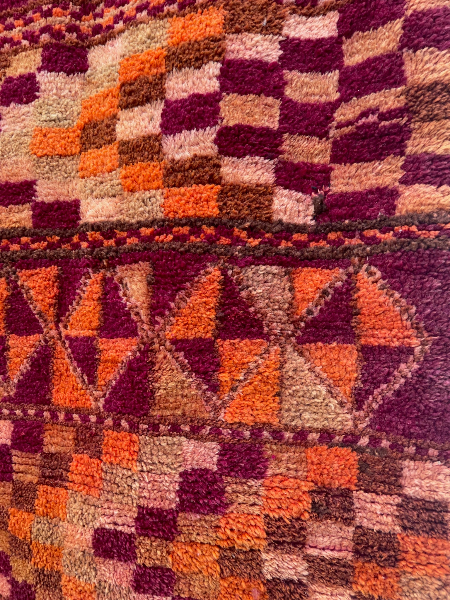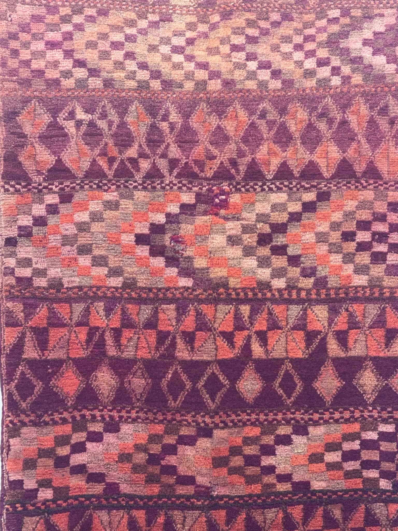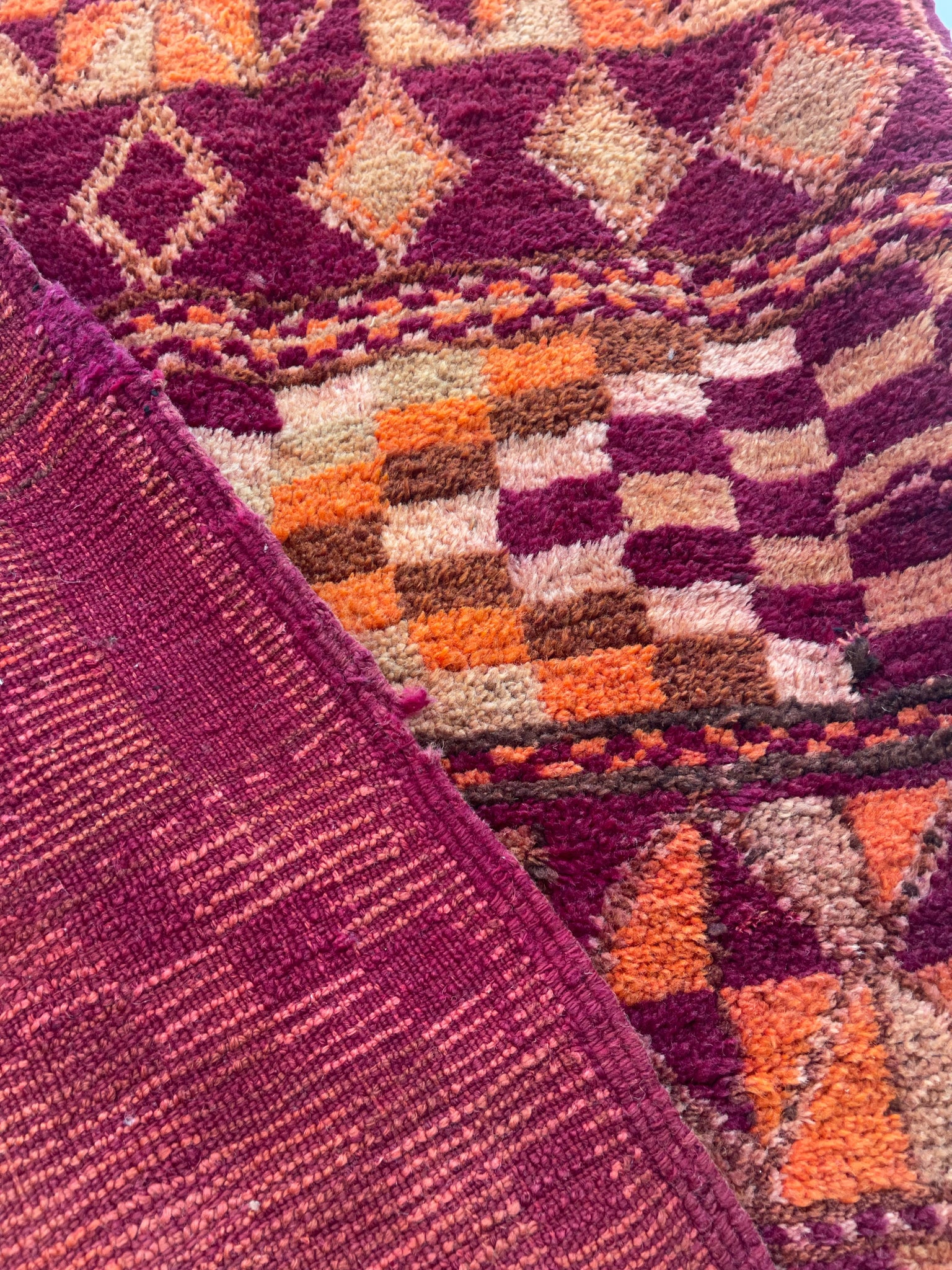 Each Moroccan vintage rug is chosen with expert care to ensure there are no obvious markings. However, being of vintage nature, some show signs of previous repair and others will have their trims repaired