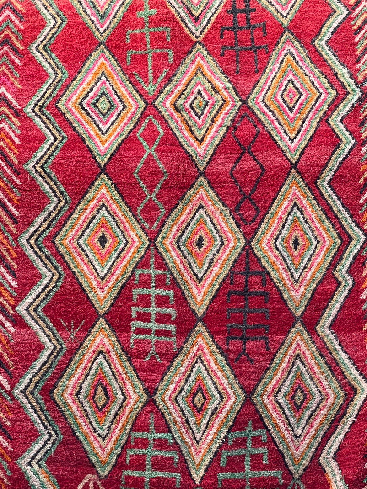 Each Moroccan vintage rug is chosen with expert care to ensure there are no obvious markings. However, being of vintage nature, some show signs of previous repair and others will have their trims repaired