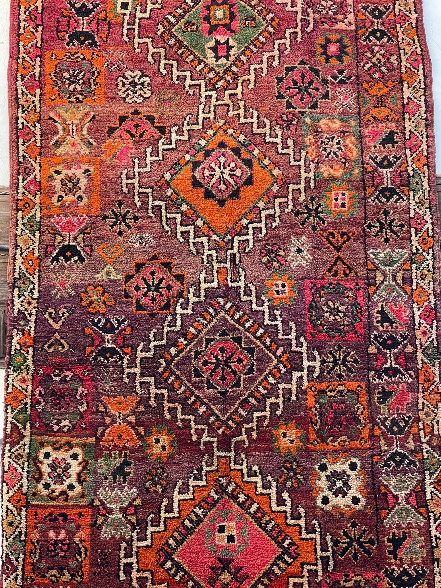 Each Moroccan vintage rug is chosen with expert care to ensure there are no obvious markings. However, being of vintage nature, some show signs of previous repair and others will have their trims repaired