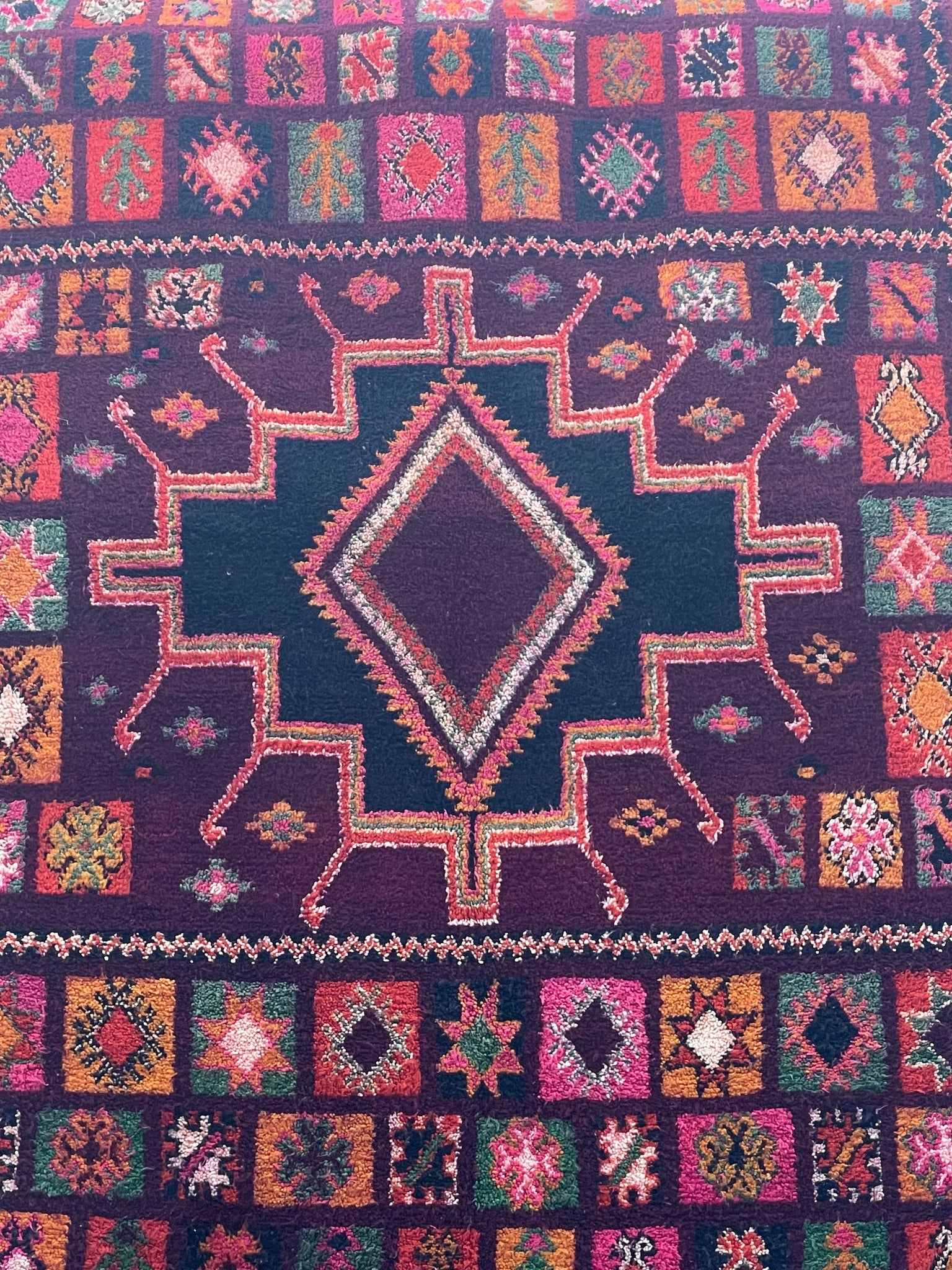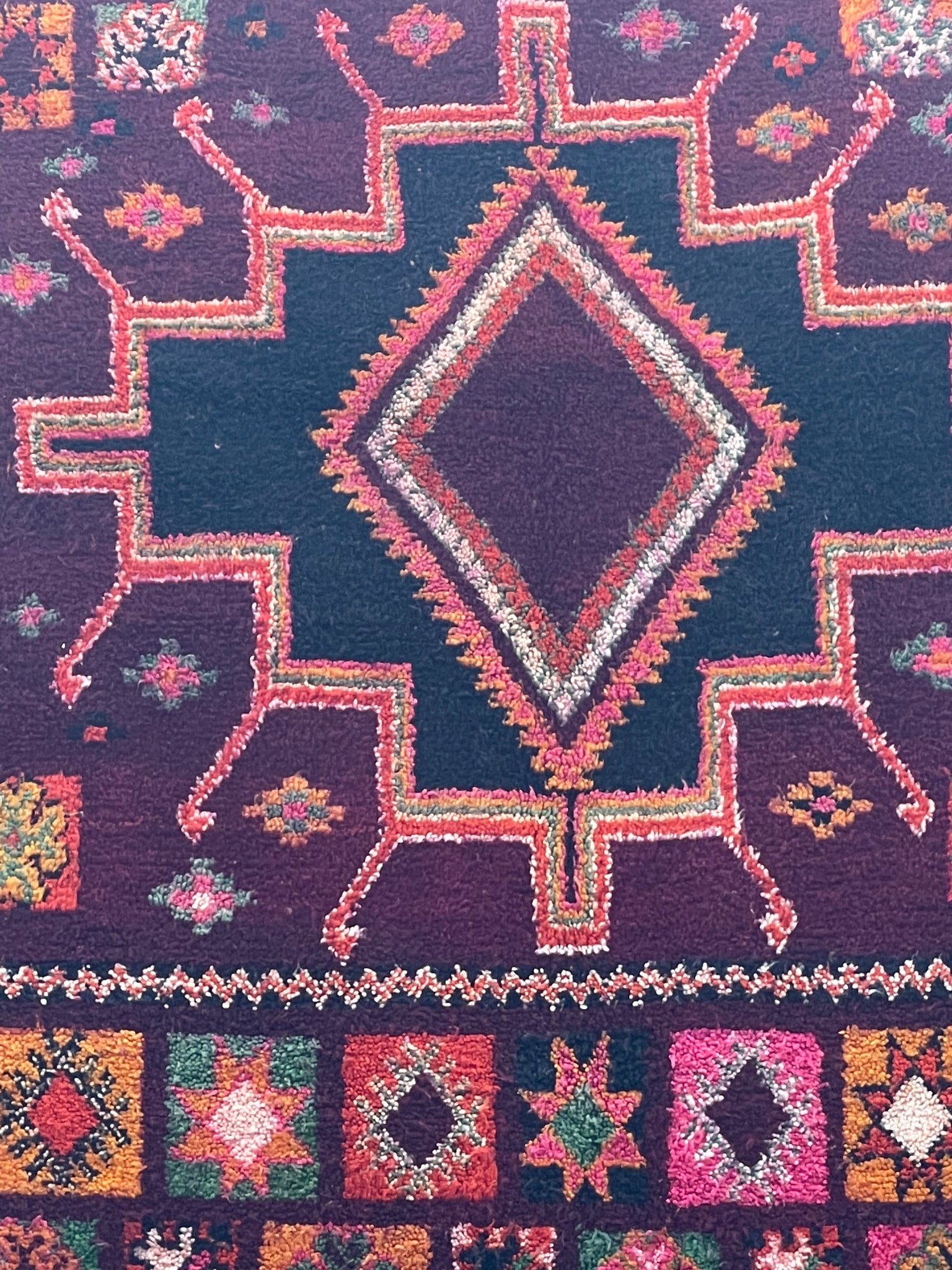 Each Moroccan vintage rug is chosen with expert care to ensure there are no obvious markings. However, being of vintage nature, some show signs of previous repair and others will have their trims repaired