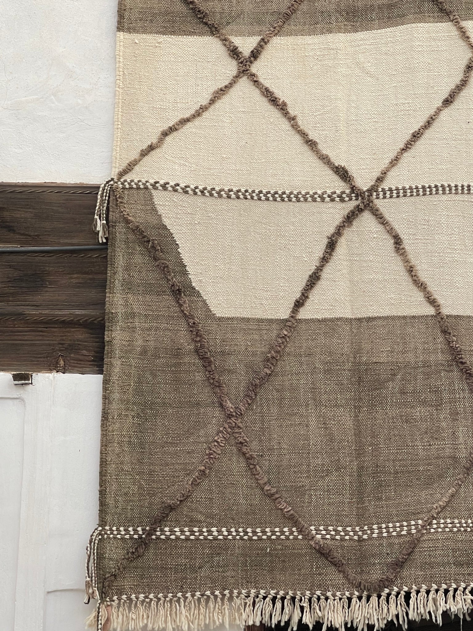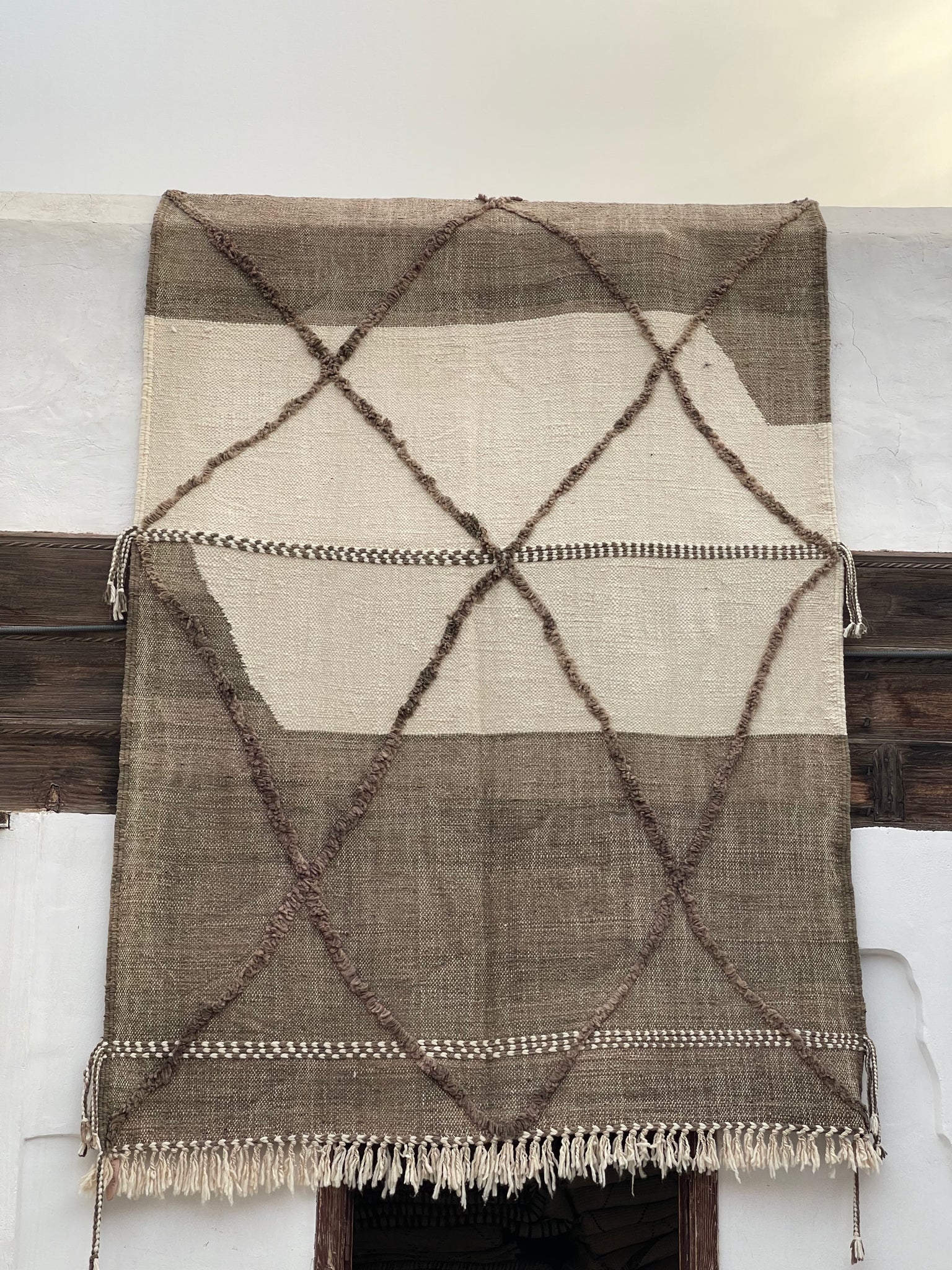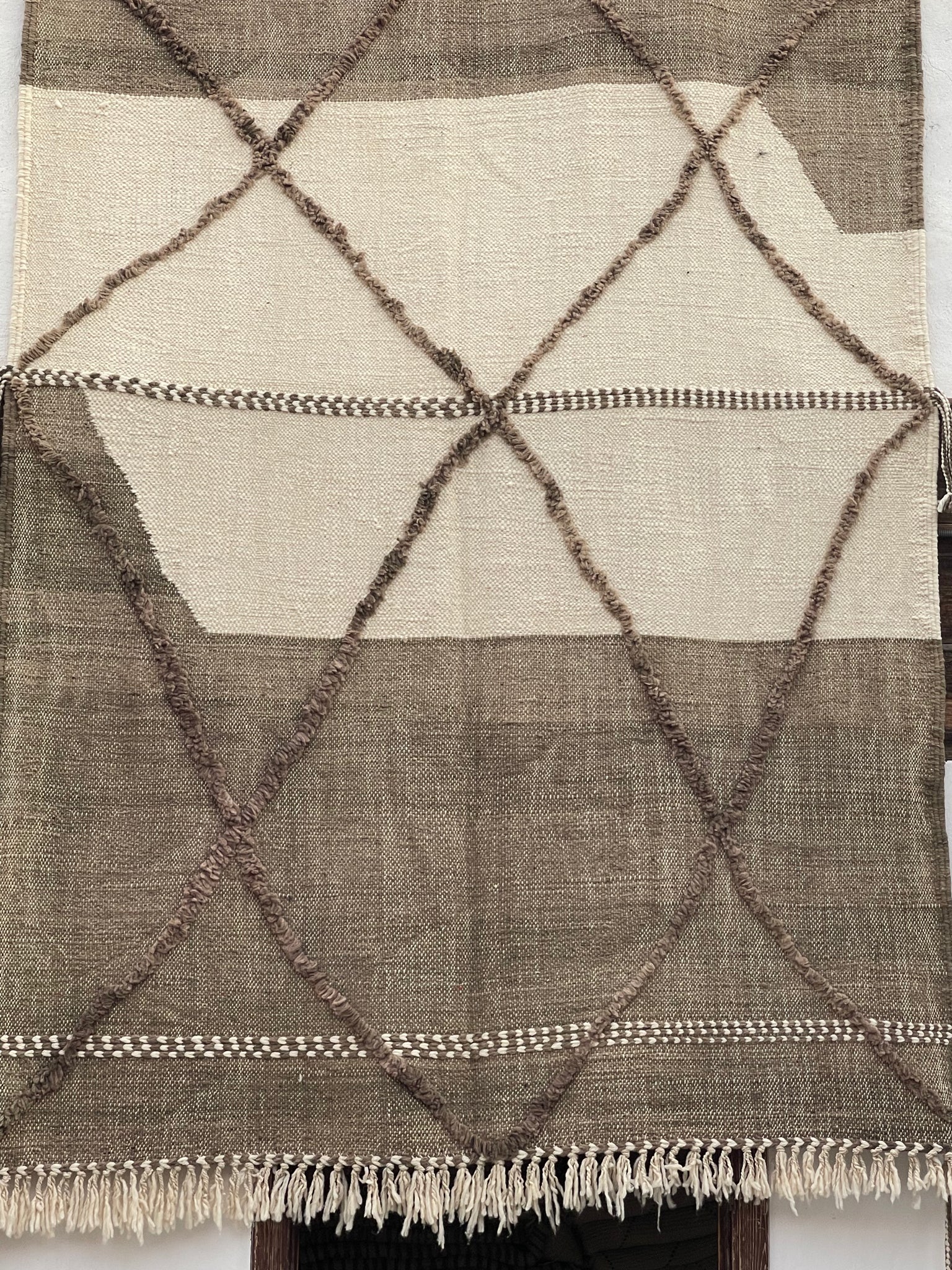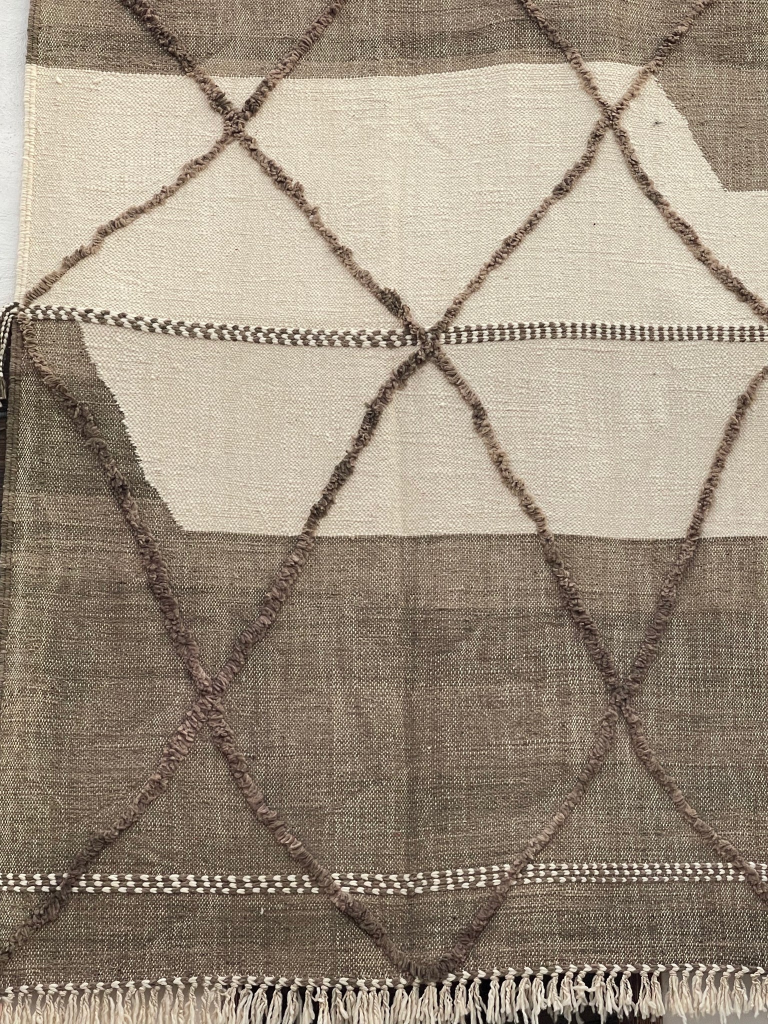 Modern killim rug, hand knotted by talented Berber dexterous weavers and professionally washed in boujaad City. 100% premium wool and all natural organic ingredients are used to ensure pliability, a plush feel and exceptionally soft texture of these beautiful rugs.