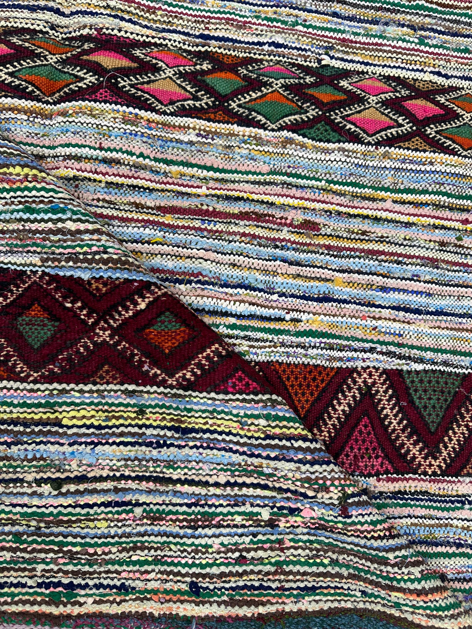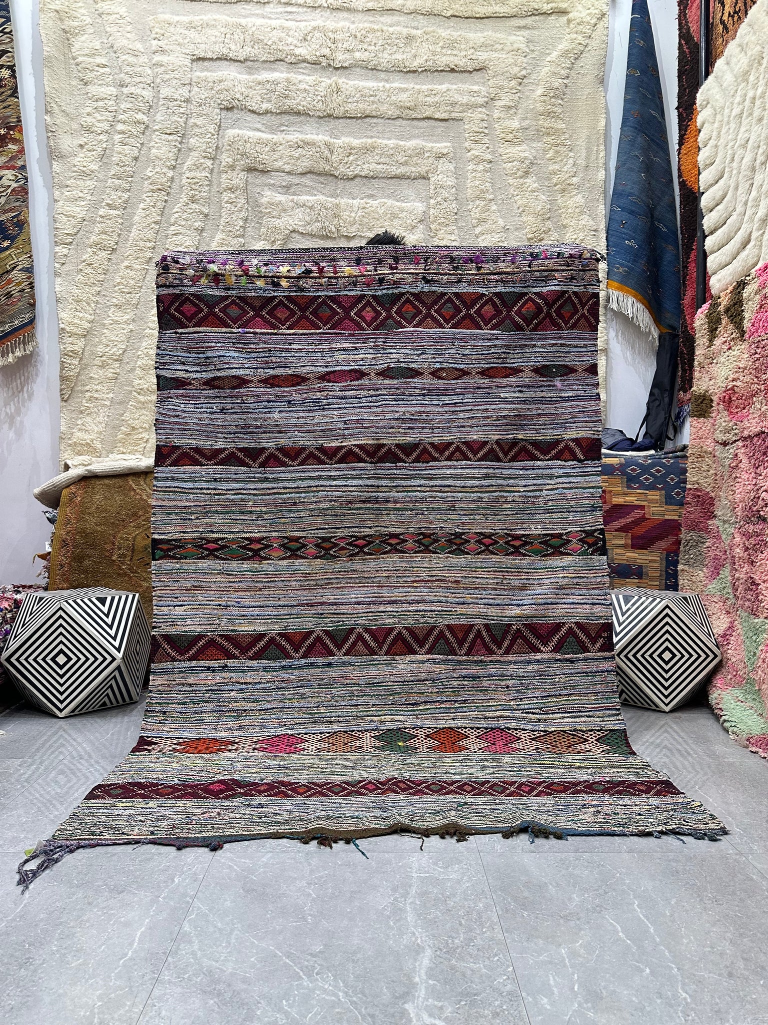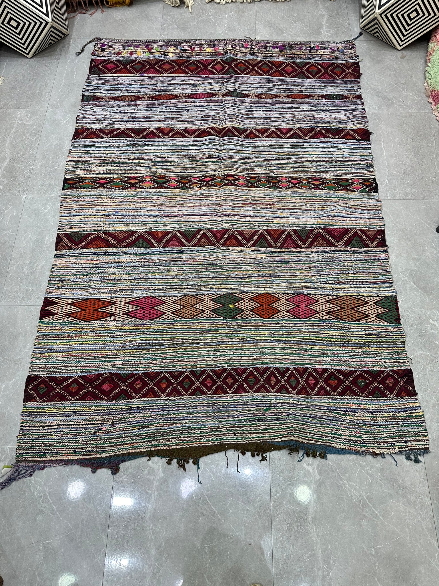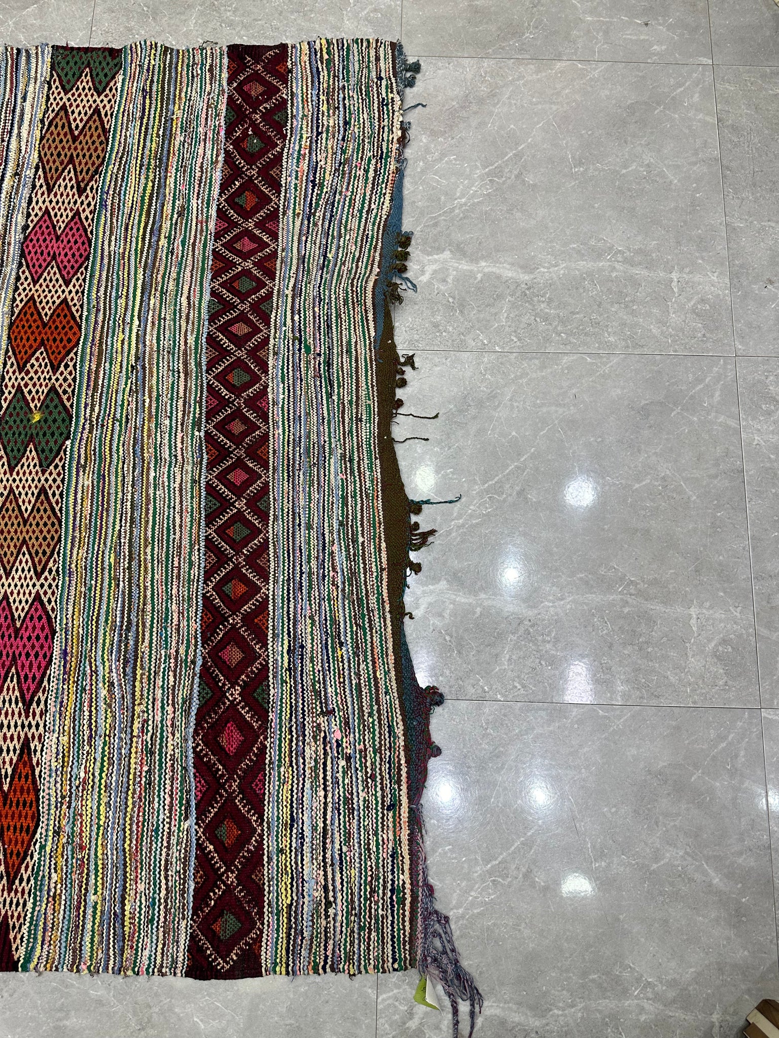 Modern killim rug, hand knotted by talented Berber dexterous weavers and professionally washed in boujaad City. 100% premium wool and all natural organic ingredients are used to ensure pliability, a plush feel and exceptionally soft texture of these beautiful rugs.