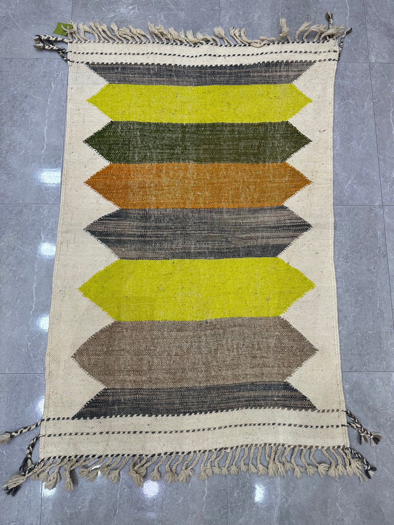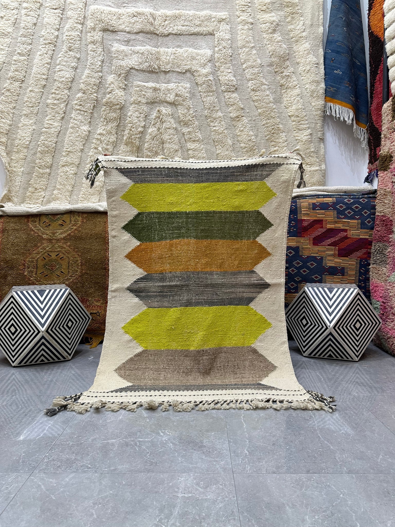 Modern killim   rug, hand knotted by talented Berber dexterous weavers and professionally washed in boujaad  City. 100% premium wool and all natural organic ingredients are used to ensure pliability, a plush feel and exceptionally soft texture of these beautiful rugs.
