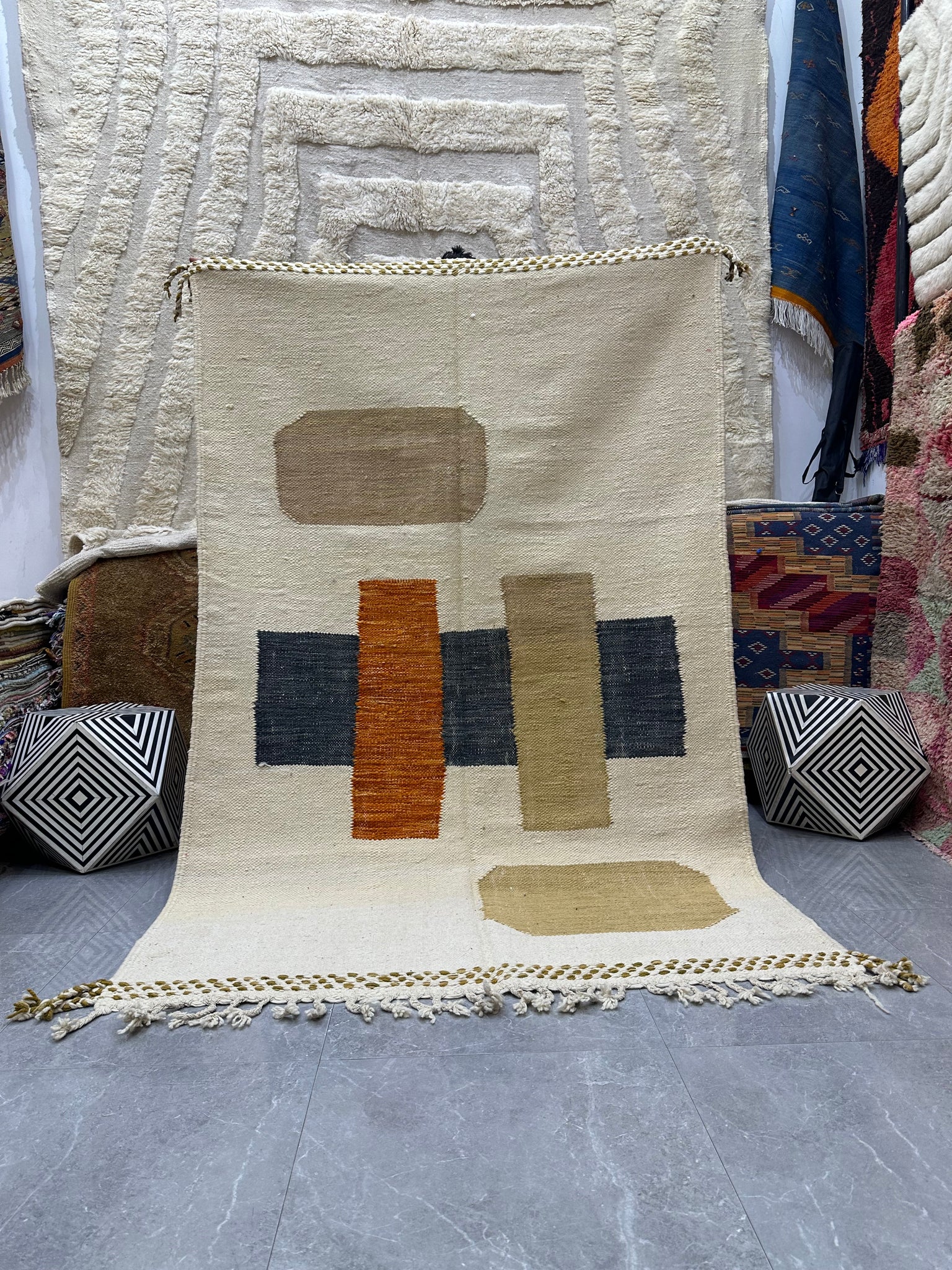Modern killim   rug, hand knotted by talented Berber dexterous weavers and professionally washed in boujaad  City. 100% premium wool and all natural organic ingredients are used to ensure pliability, a plush feel and exceptionally soft texture of these beautiful rugs.