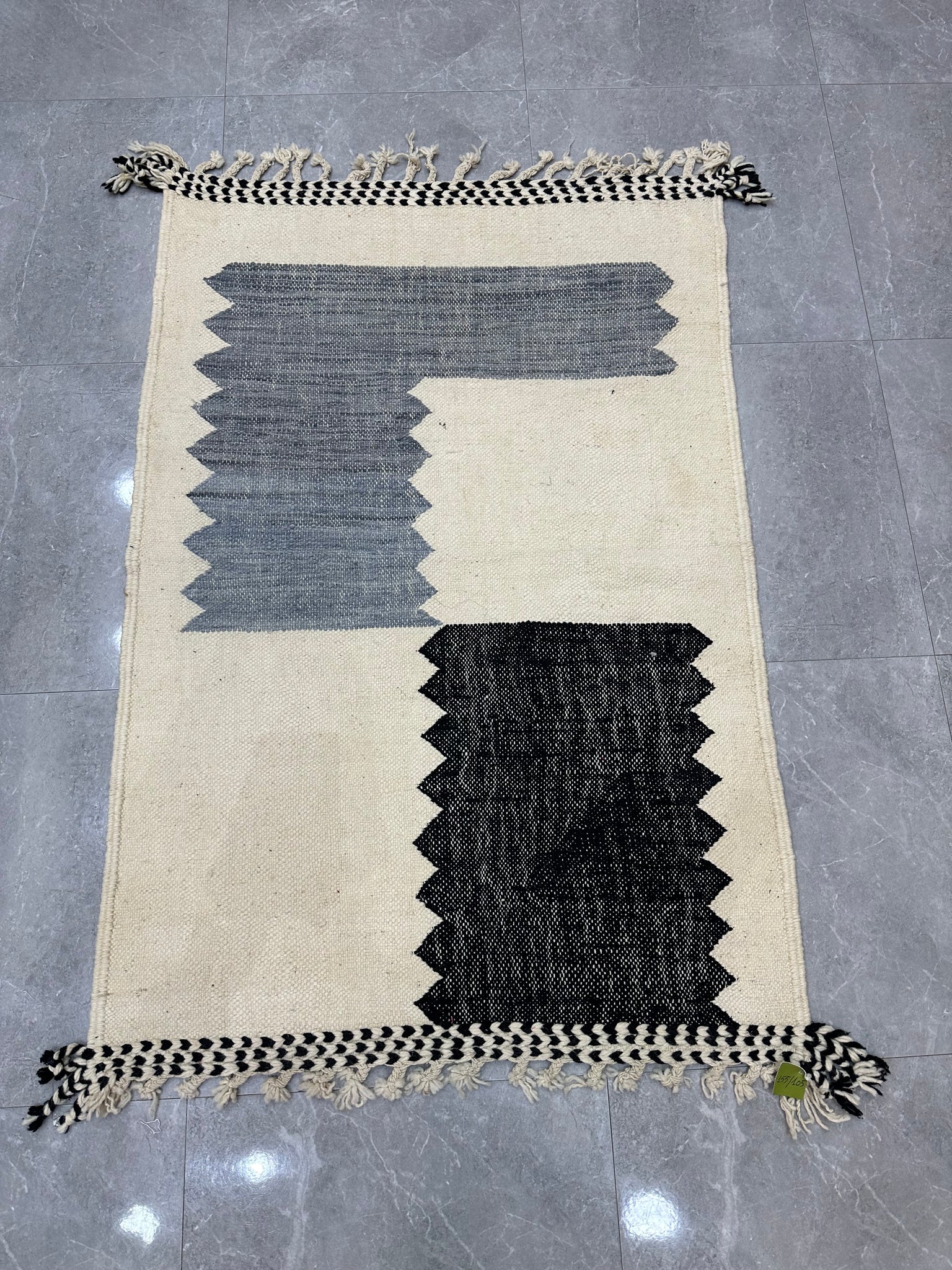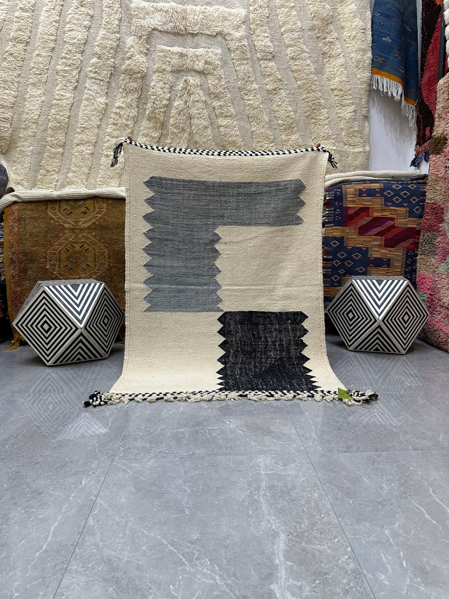 Modern killim   rug, hand knotted by talented Berber dexterous weavers and professionally washed in boujaad  City. 100% premium wool and all natural organic ingredients are used to ensure pliability, a plush feel and exceptionally soft texture of these beautiful rugs.