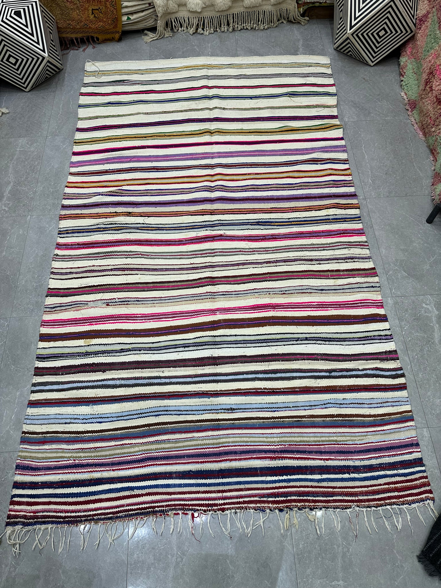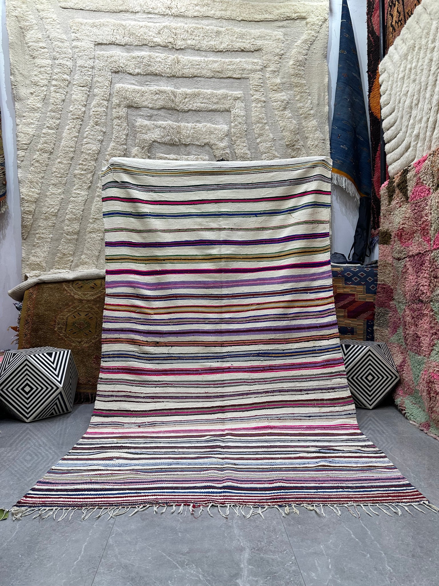 Modern killim rug, hand knotted by talented Berber dexterous weavers and professionally washed in boujaad City. 100% premium wool and all natural organic ingredients are used to ensure pliability, a plush feel and exceptionally soft texture of these beautiful rugs.