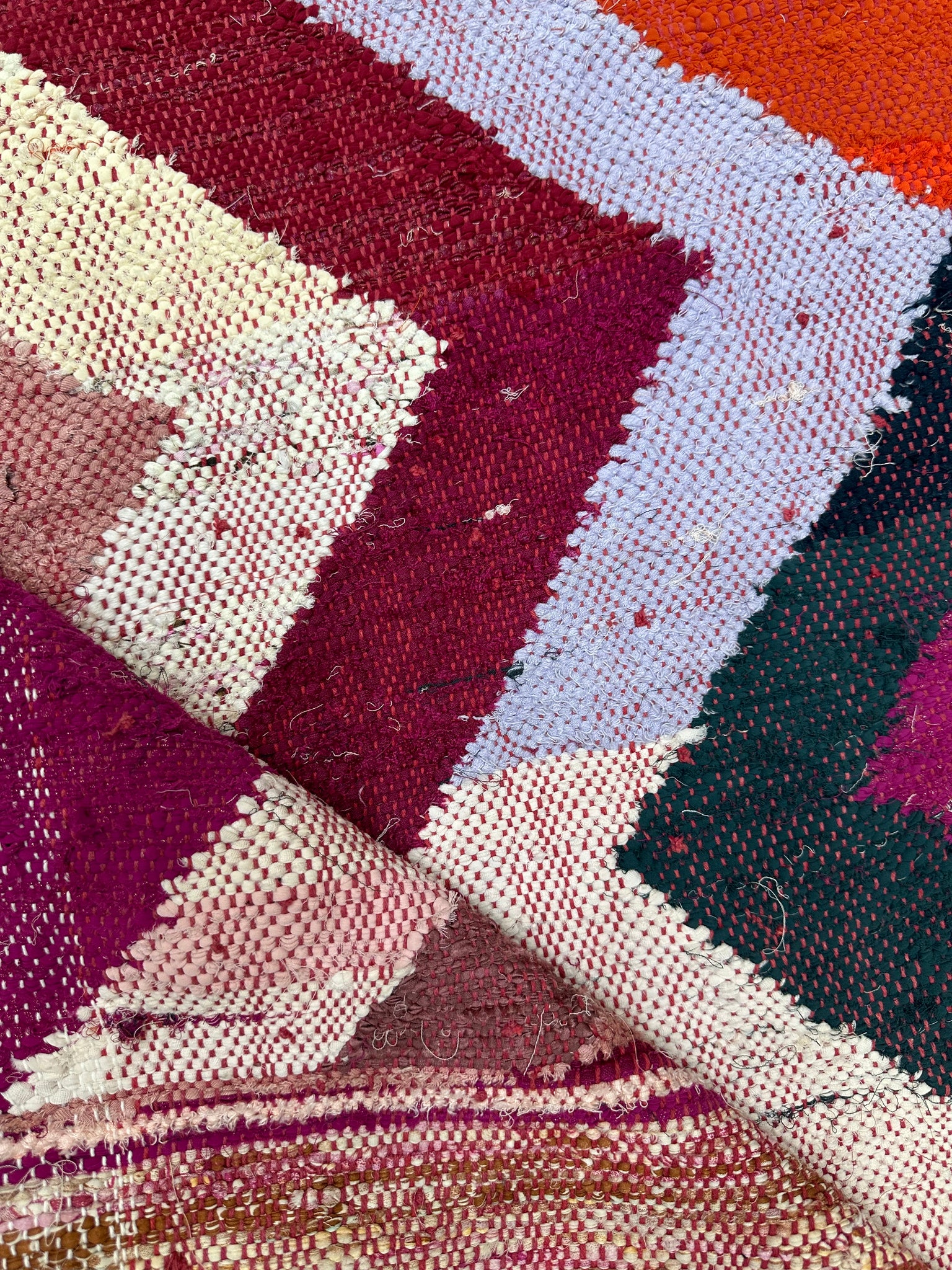 Modern killim rug, hand knotted by talented Berber dexterous weavers and professionally washed in boujaad City. 100% premium wool and all natural organic ingredients are used to ensure pliability, a plush feel and exceptionally soft texture of these beautiful rugs.
