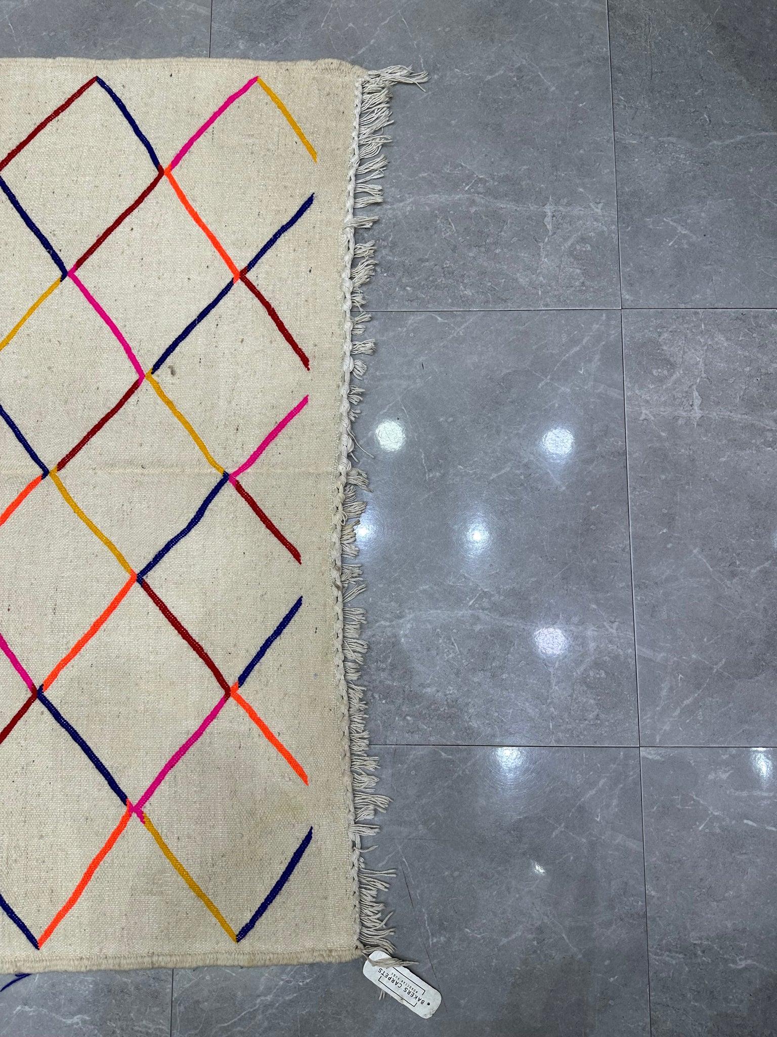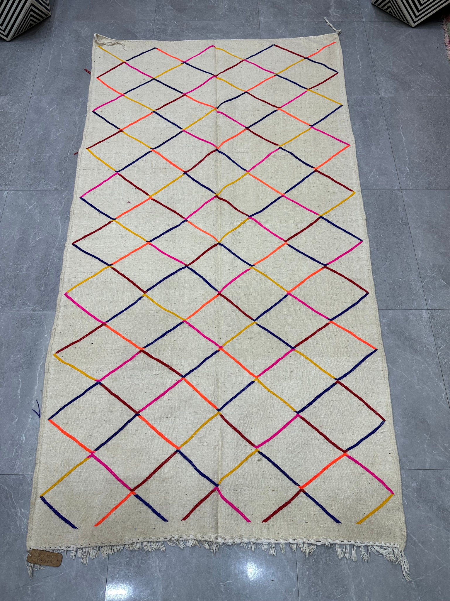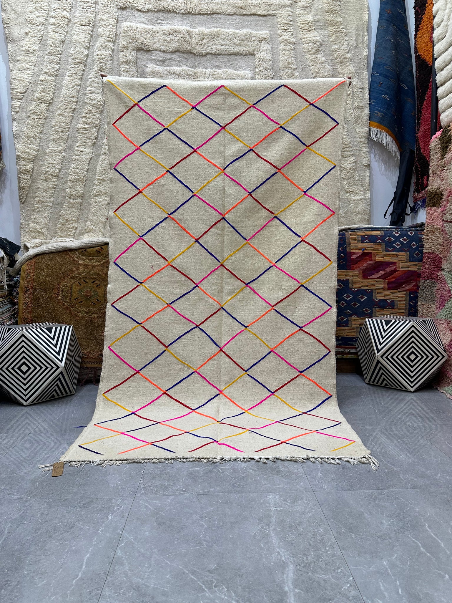 Modern killim rug, hand knotted by talented Berber dexterous weavers and professionally washed in boujaad City. 100% premium wool and all natural organic ingredients are used to ensure pliability, a plush feel and exceptionally soft texture of these beautiful rugs.