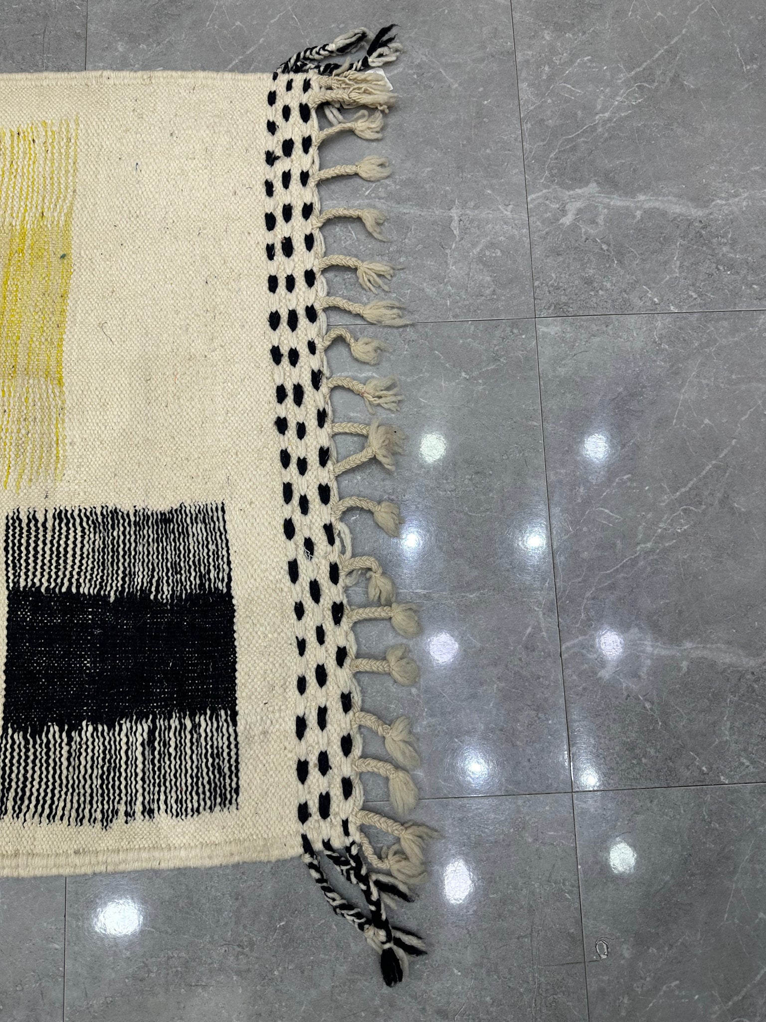 Modern killim rug, hand knotted by talented Berber dexterous weavers and professionally washed in boujaad City. 100% premium wool and all natural organic ingredients are used to ensure pliability, a plush feel and exceptionally soft texture of these beautiful rugs.