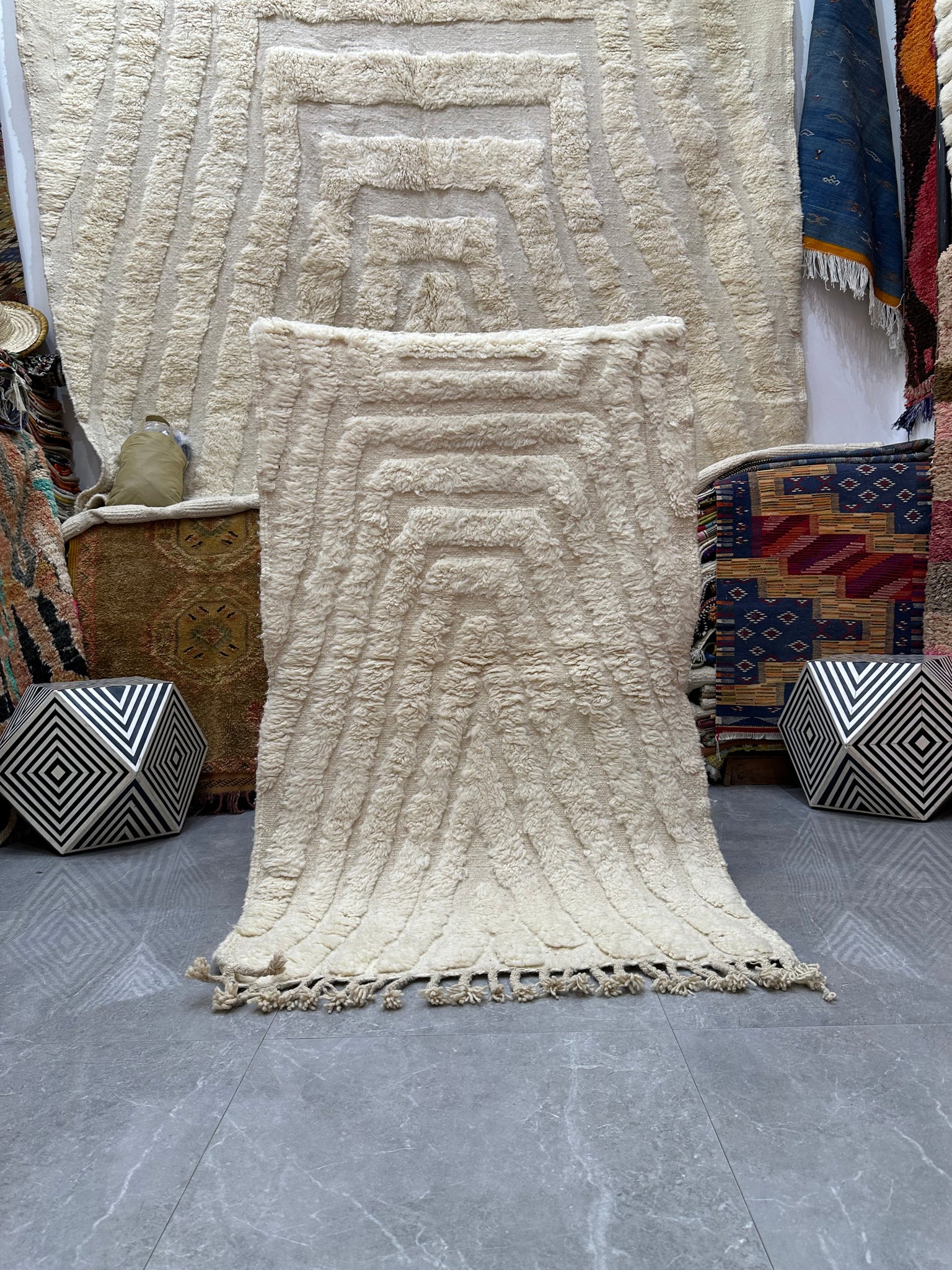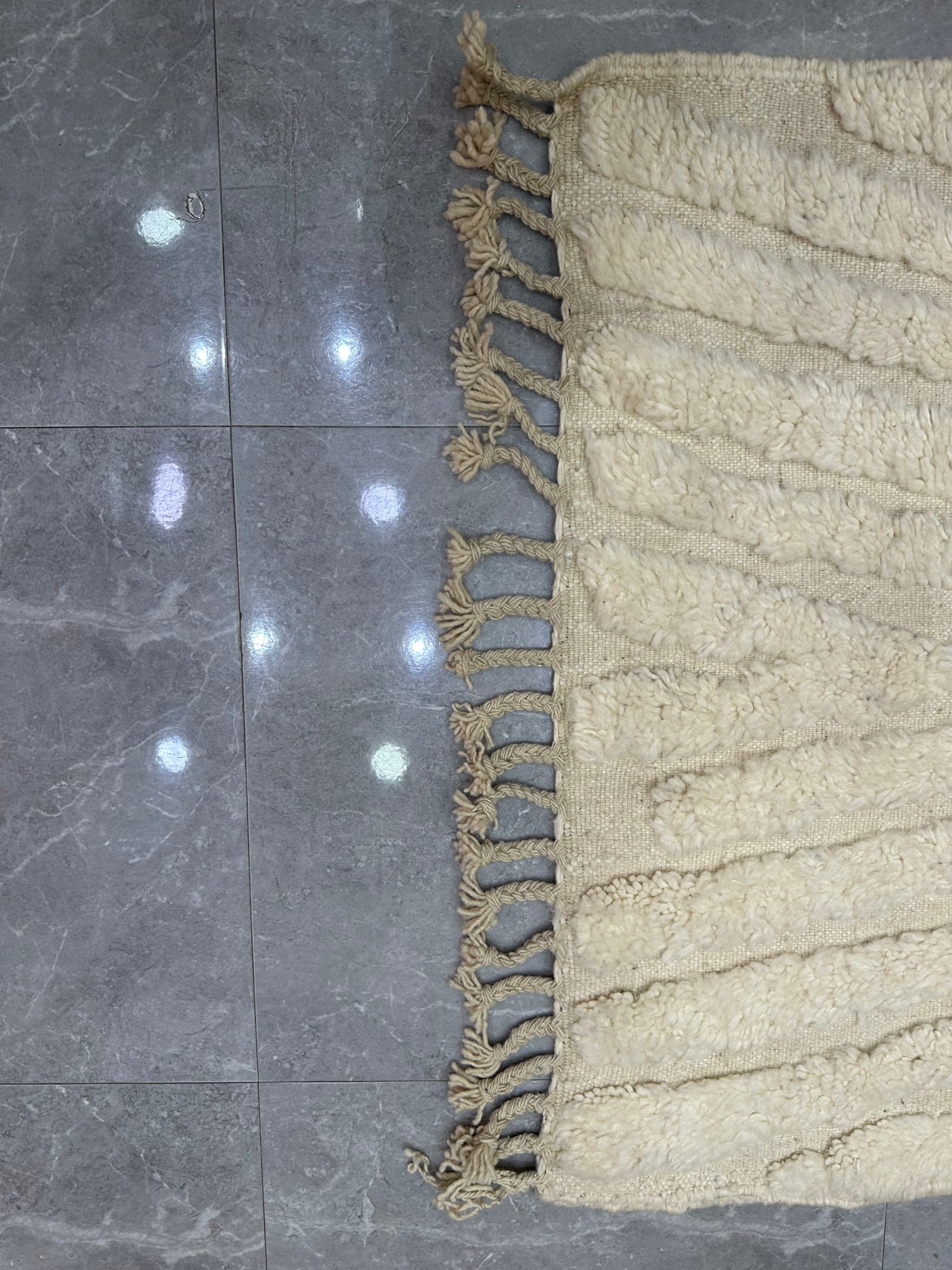 Modern beni ourain rug, hand knotted by talented Berber dexterous weavers and professionally washed in beni ourain City. 100% premium wool and all natural organic ingredients are used to ensure pliability, a plush feel and exceptionally soft texture of these beautiful rugs.
