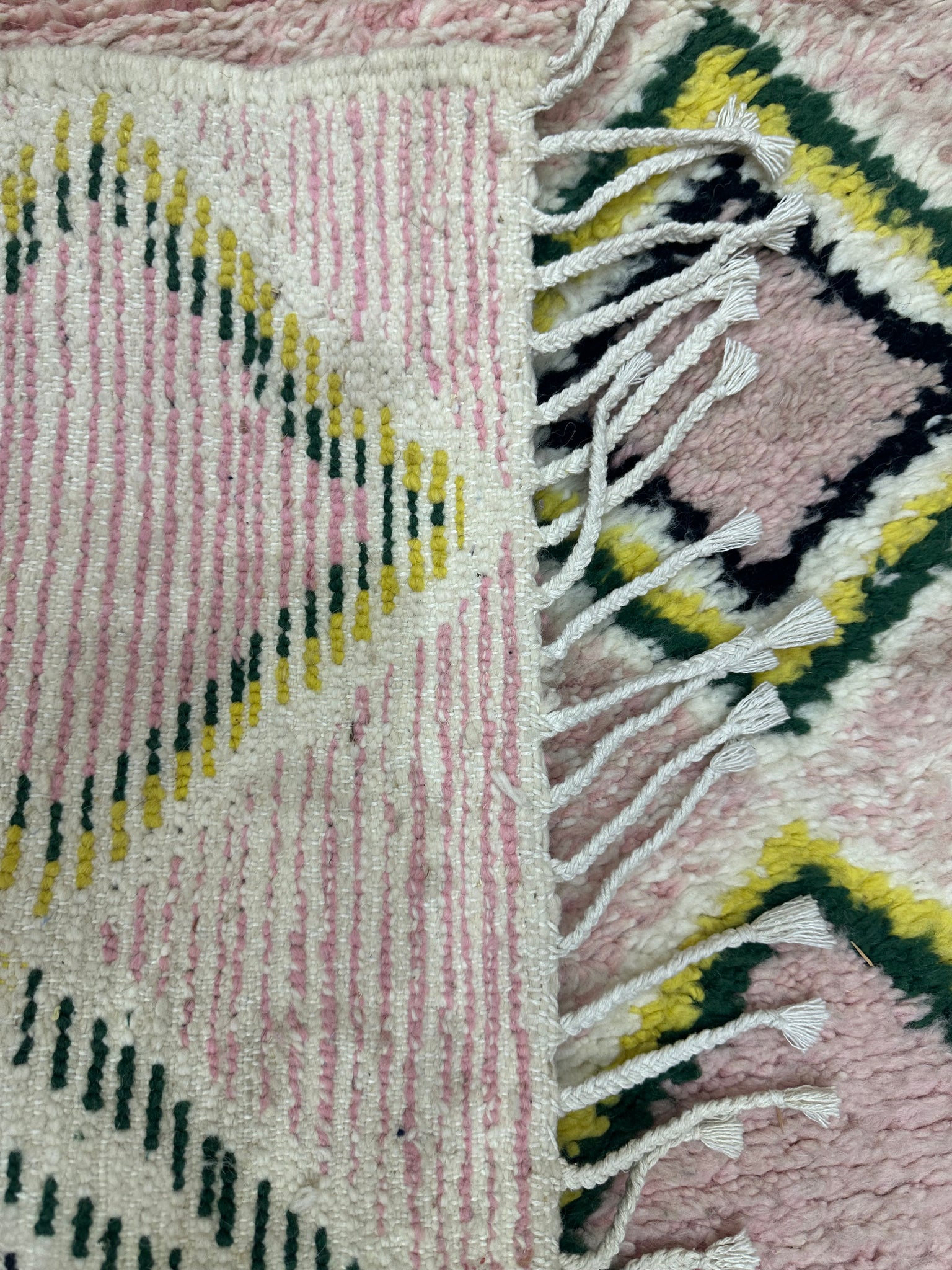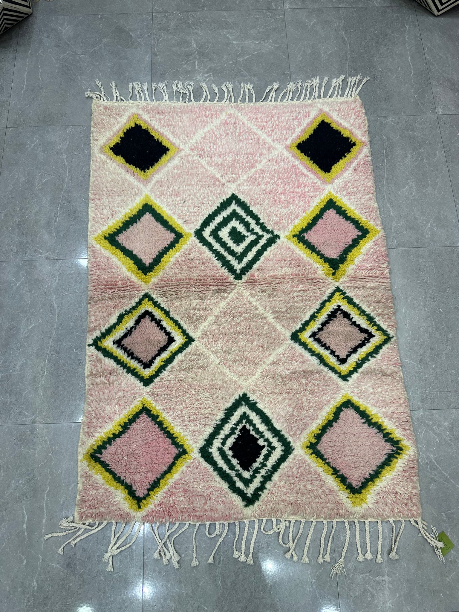 Modern beni ourain rug, hand knotted by talented Berber dexterous weavers and professionally washed in beni ourain City. 100% premium wool and all natural organic ingredients are used to ensure pliability, a plush feel and exceptionally soft texture of these beautiful rugs.