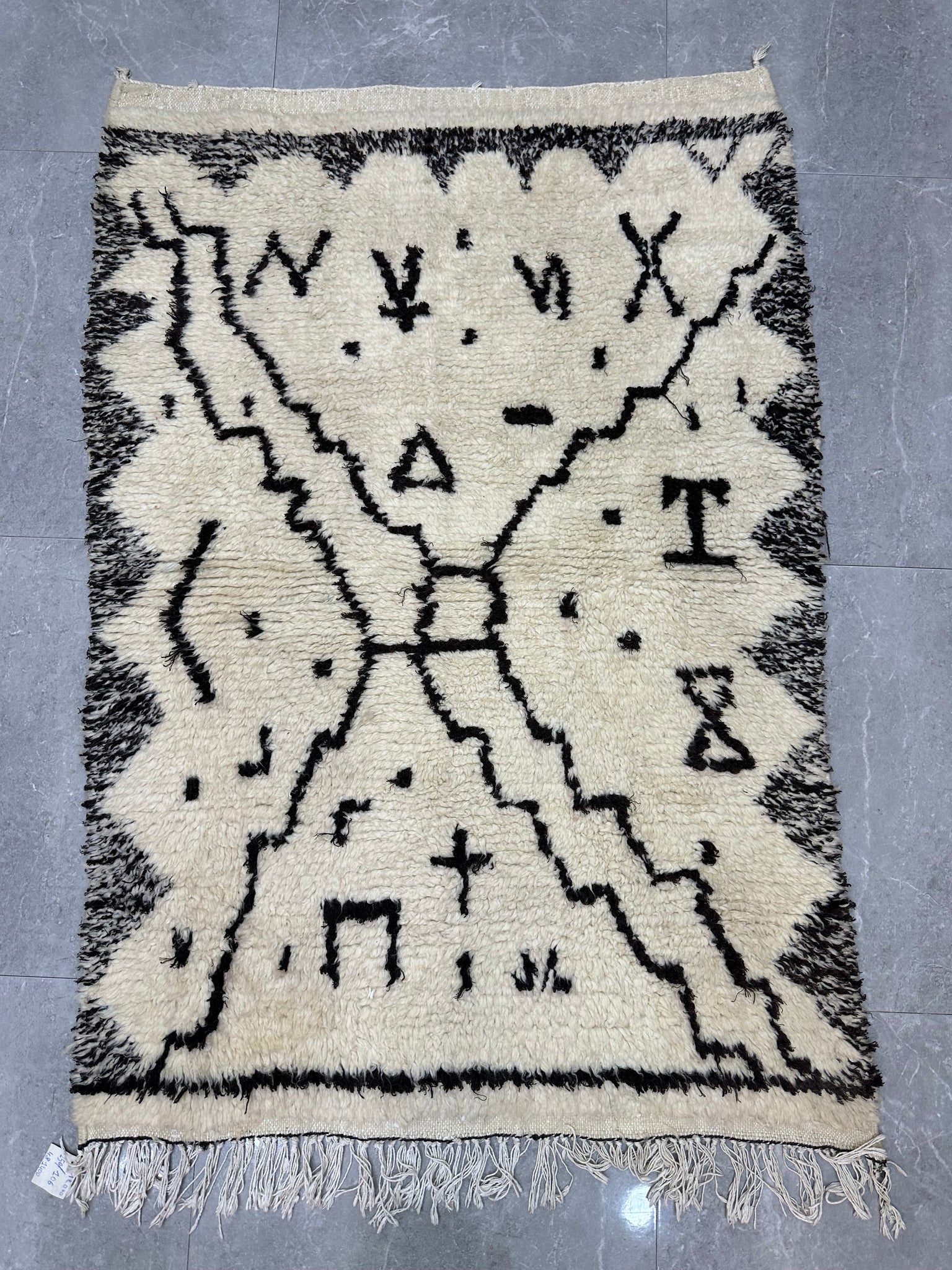 Modern beni ourain   rug, hand knotted by talented Berber dexterous weavers and professionally washed in beni ourain City. 100% premium wool and all natural organic ingredients are used to ensure pliability, a plush feel and exceptionally soft texture of these beautiful rugs.