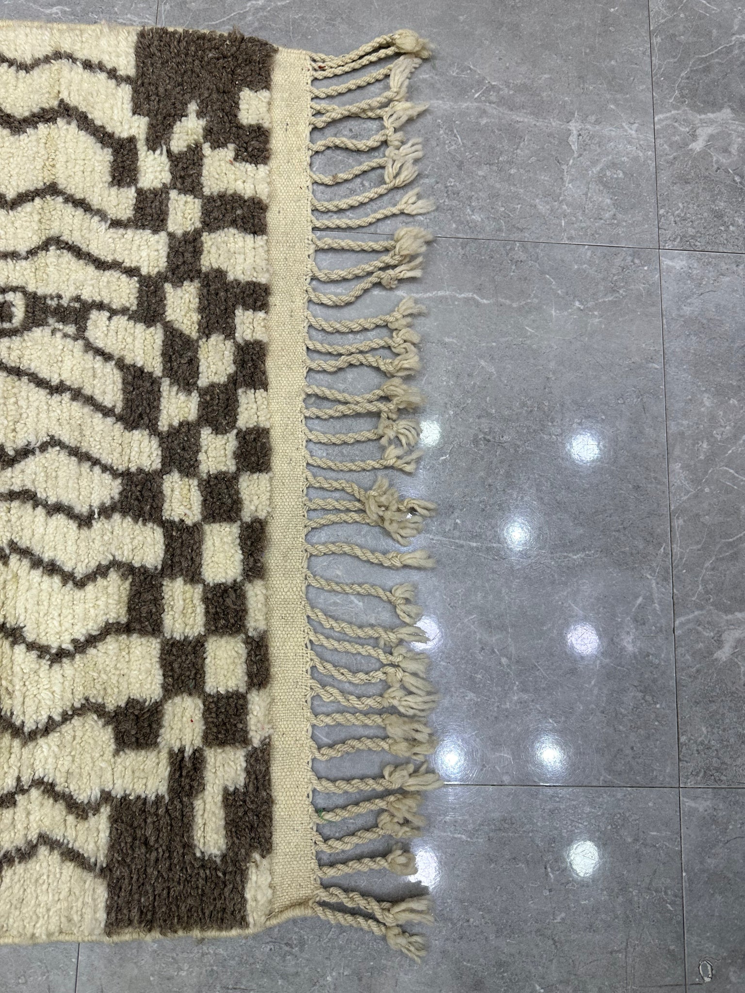 Modern beni ourain rug, hand knotted by talented Berber dexterous weavers and professionally washed in beni ourain City. 100% premium wool and all natural organic ingredients are used to ensure pliability, a plush feel and exceptionally soft texture of these beautiful rugs.