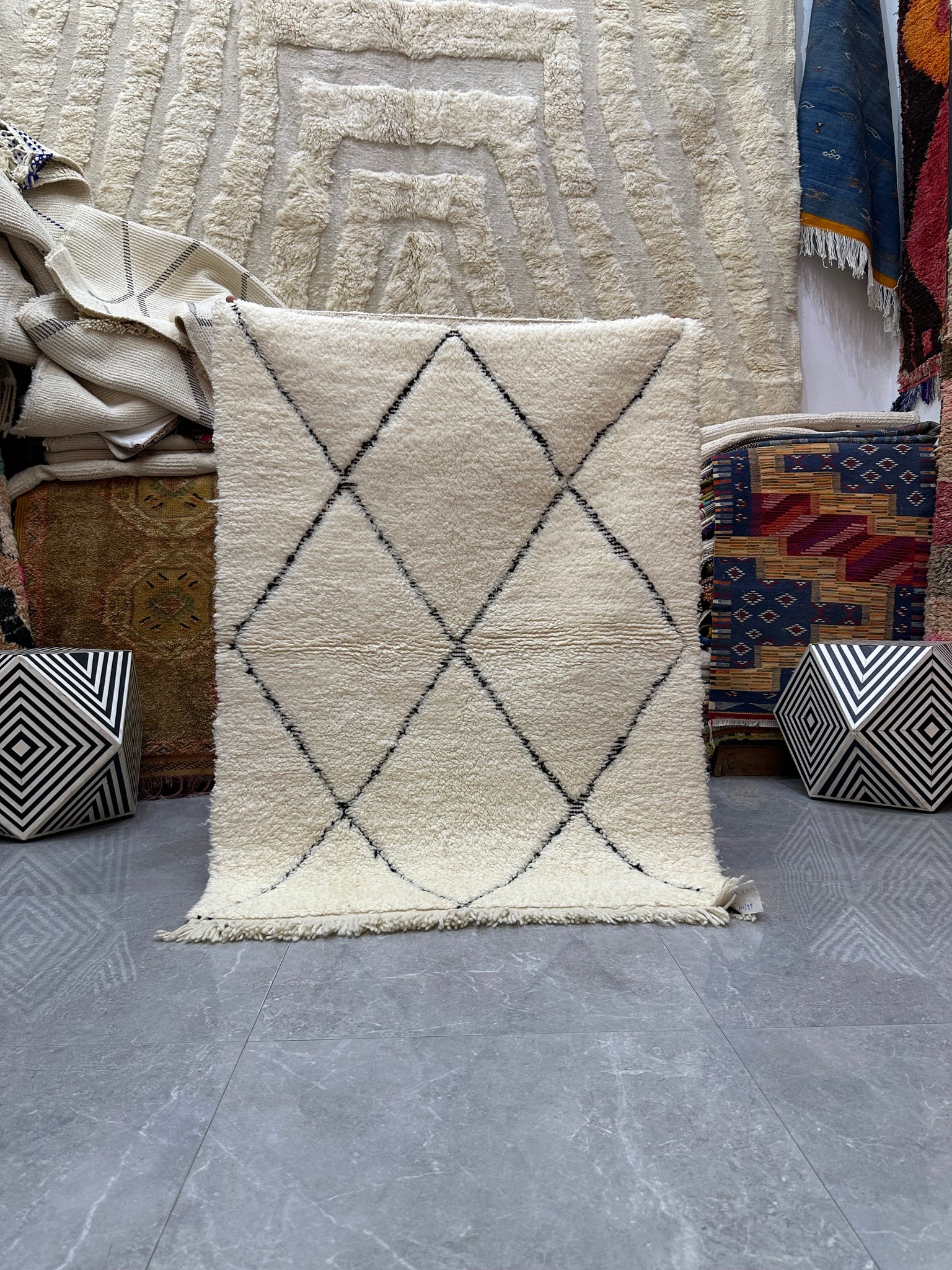 Modern beni ourain   rug, hand knotted by talented Berber dexterous weavers and professionally washed in beni ourain City. 100% premium wool and all natural organic ingredients are used to ensure pliability, a plush feel and exceptionally soft texture of these beautiful rugs.