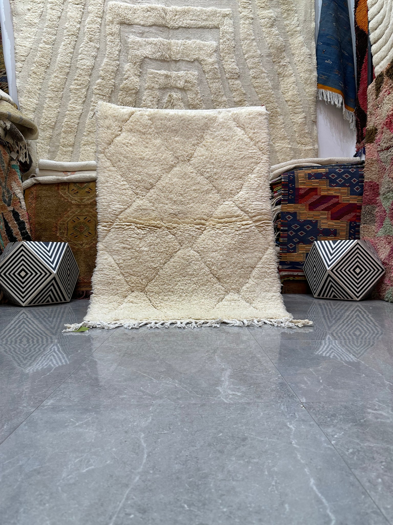 Modern beni ourain rug, hand knotted by talented Berber dexterous weavers and professionally washed in beni ourain City. 100% premium wool and all natural organic ingredients are used to ensure pliability, a plush feel and exceptionally soft texture of these beautiful rugs.
