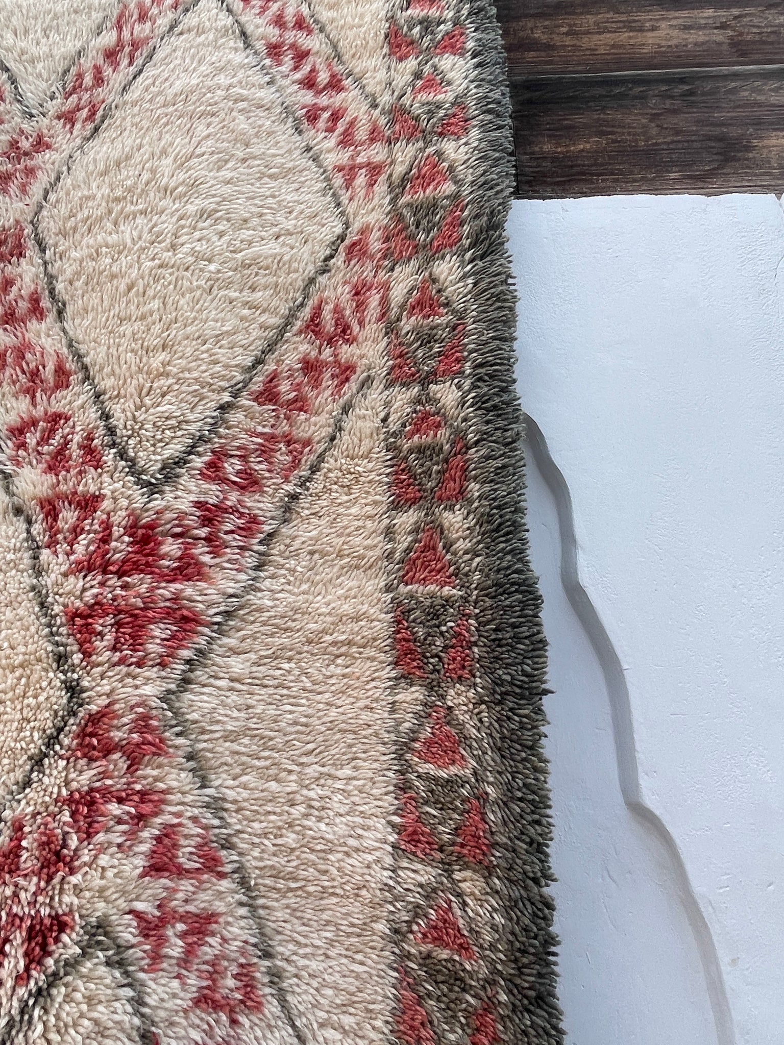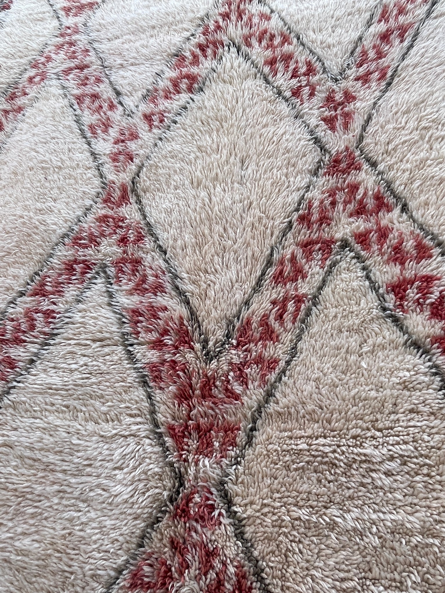 Each Moroccan vintage rug is chosen with expert care to ensure there are no obvious markings. However, being of vintage nature, some show signs of previous repair and others will have their trims repaired