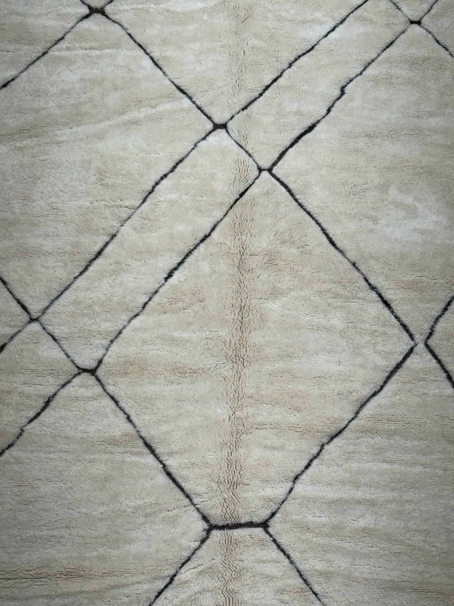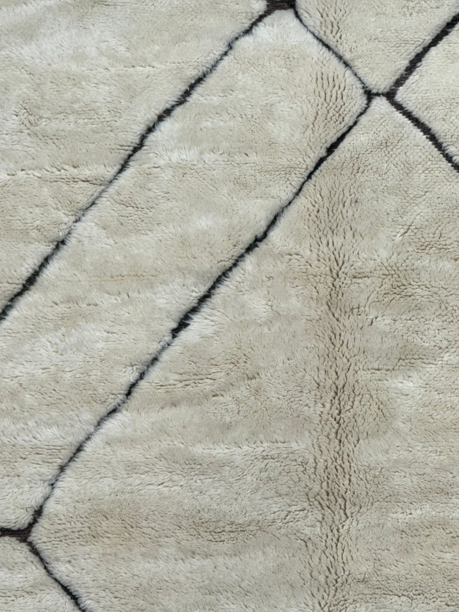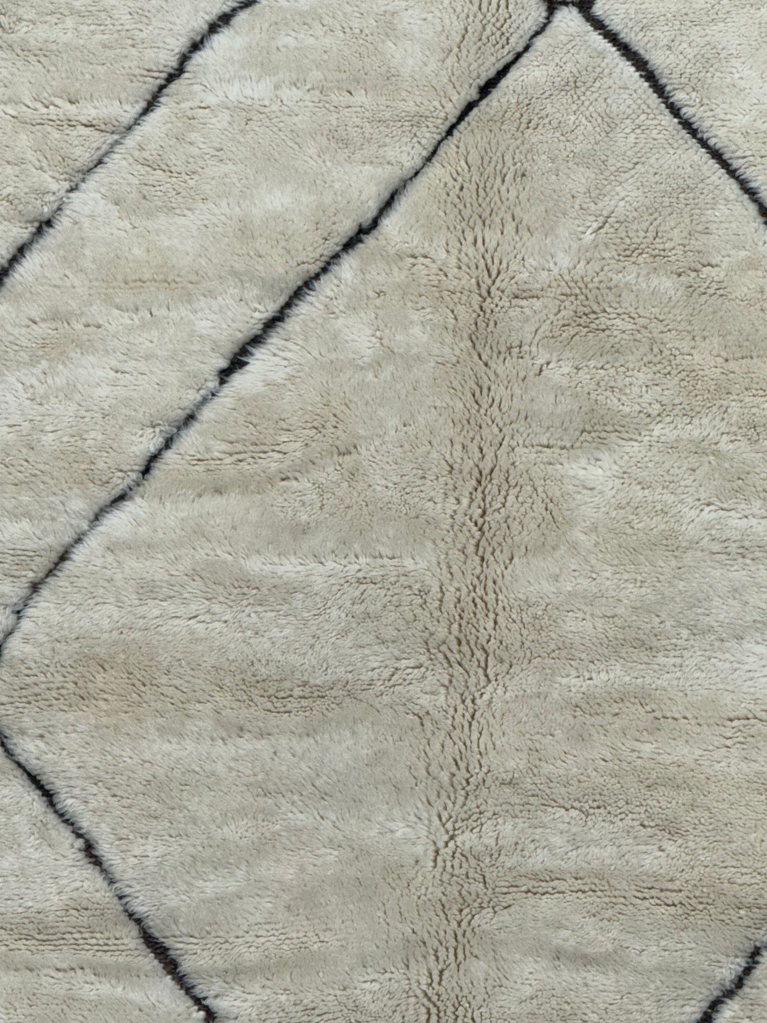 Modern Beni mrirt rug, hand knotted by talented Berber dexterous weavers and professionally washed in Khenifra City. 100% premium wool and all natural organic ingredients are used to ensure pliability, a plush feel and exceptionally soft texture of these beautiful rugs.