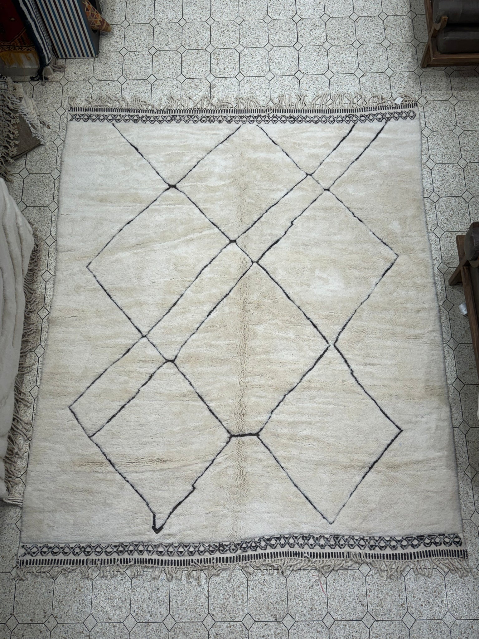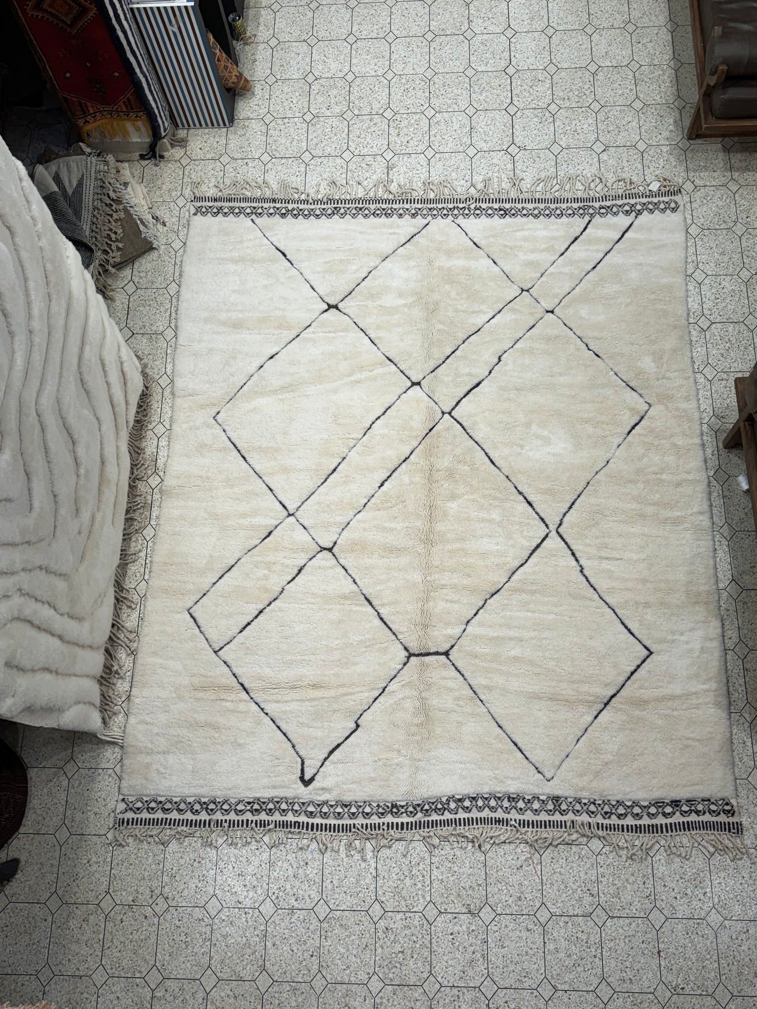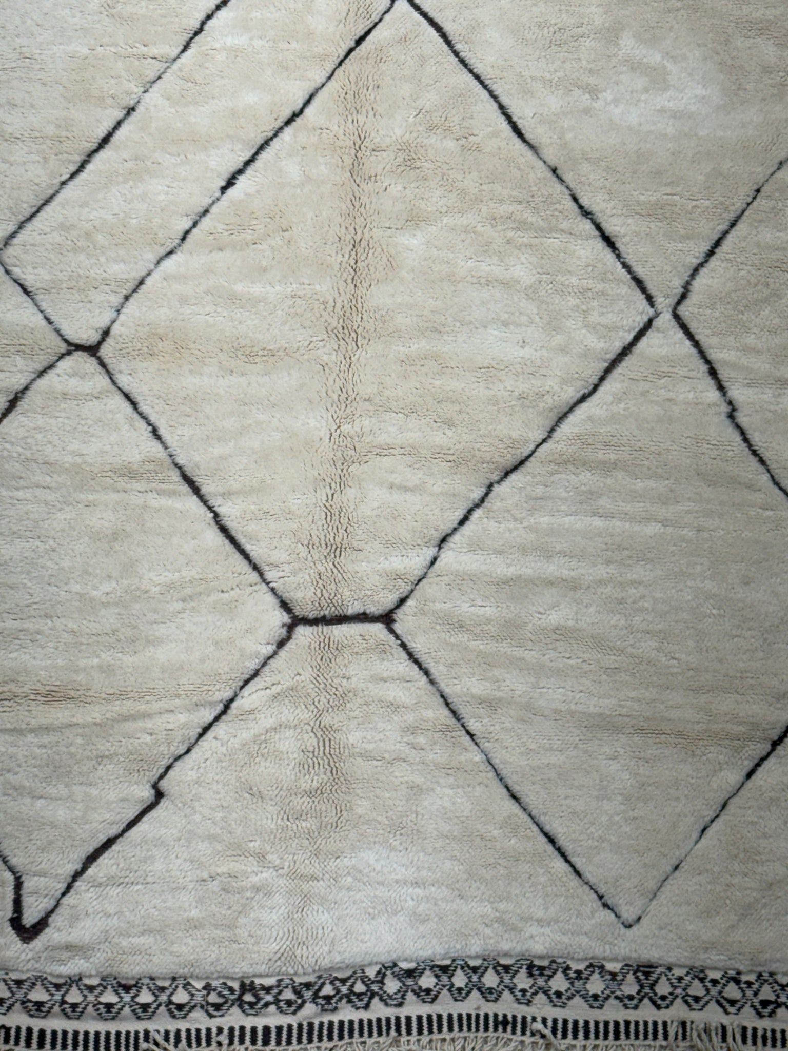 Modern Beni mrirt rug, hand knotted by talented Berber dexterous weavers and professionally washed in Khenifra City. 100% premium wool and all natural organic ingredients are used to ensure pliability, a plush feel and exceptionally soft texture of these beautiful rugs.