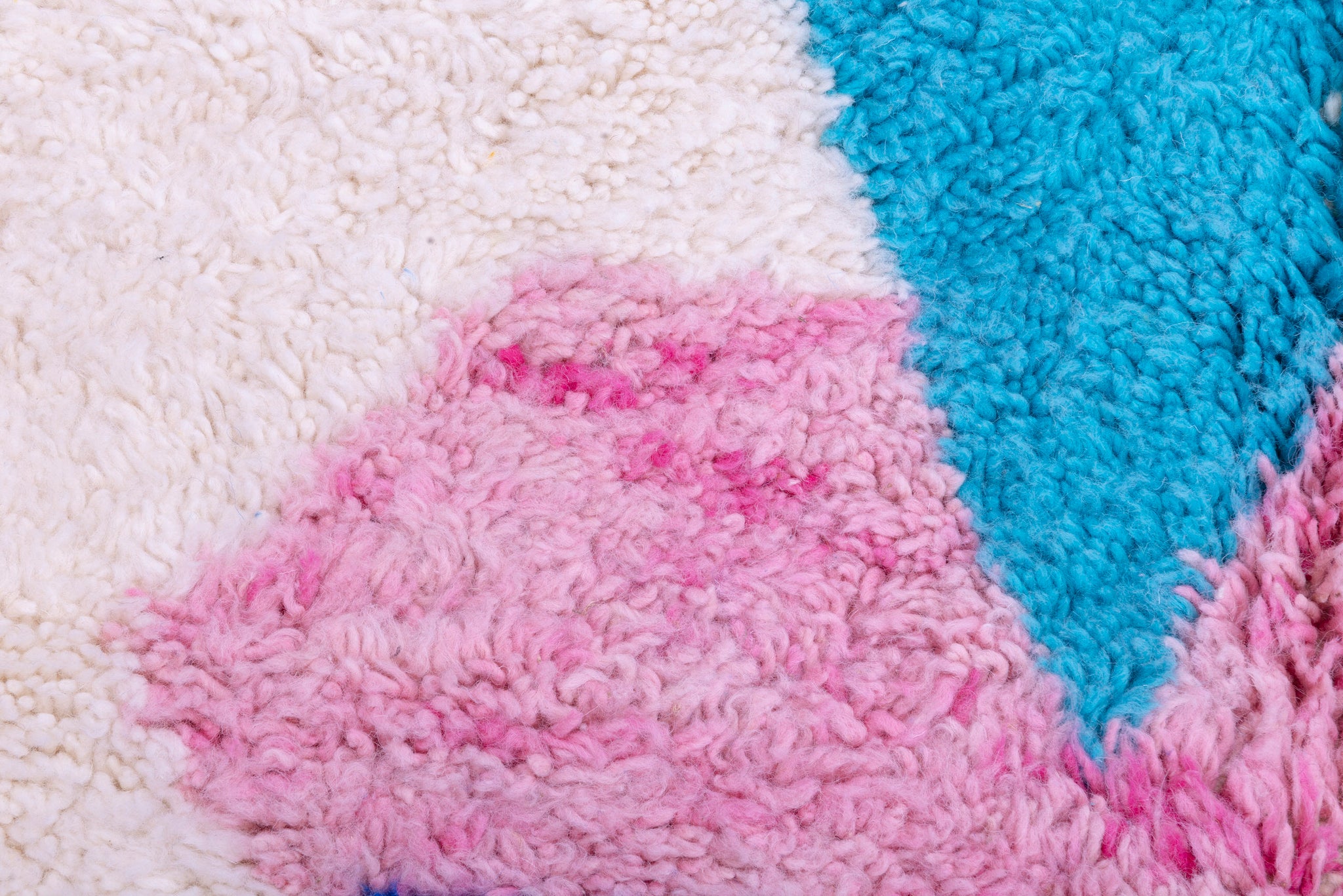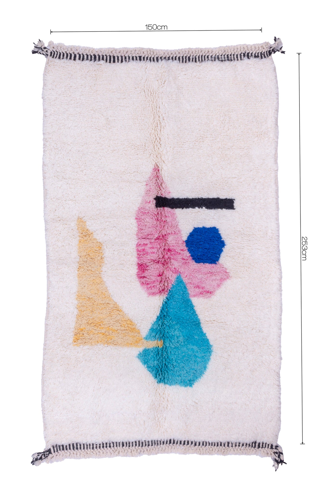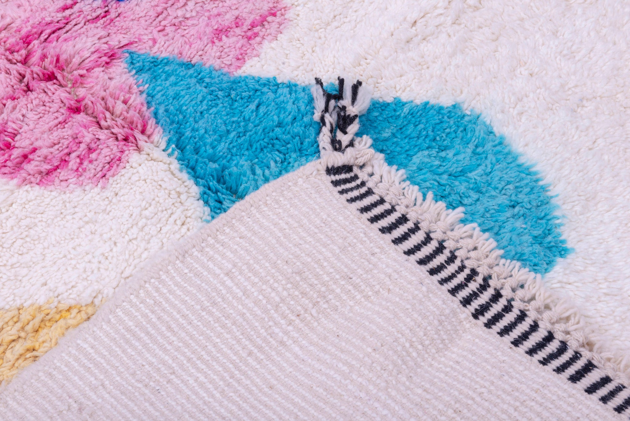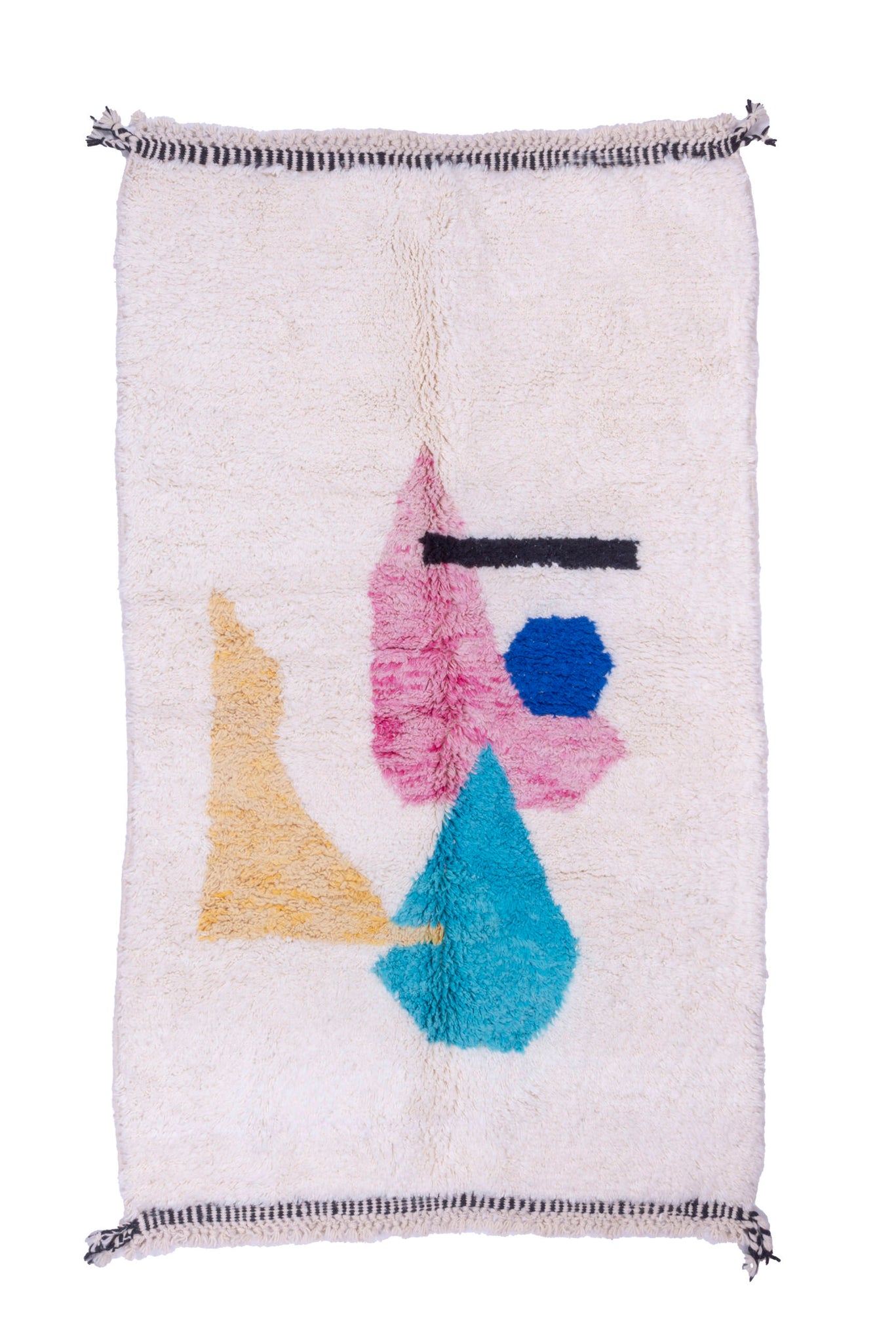 Modern Beni OURAIN rug, hand knotted by talented Berber dexterous weavers and professionally washed in Khenifra City. 100% premium wool and all natural organic ingredients are used to ensure pliability, a plush feel and exceptionally soft texture of these beautiful rugs.