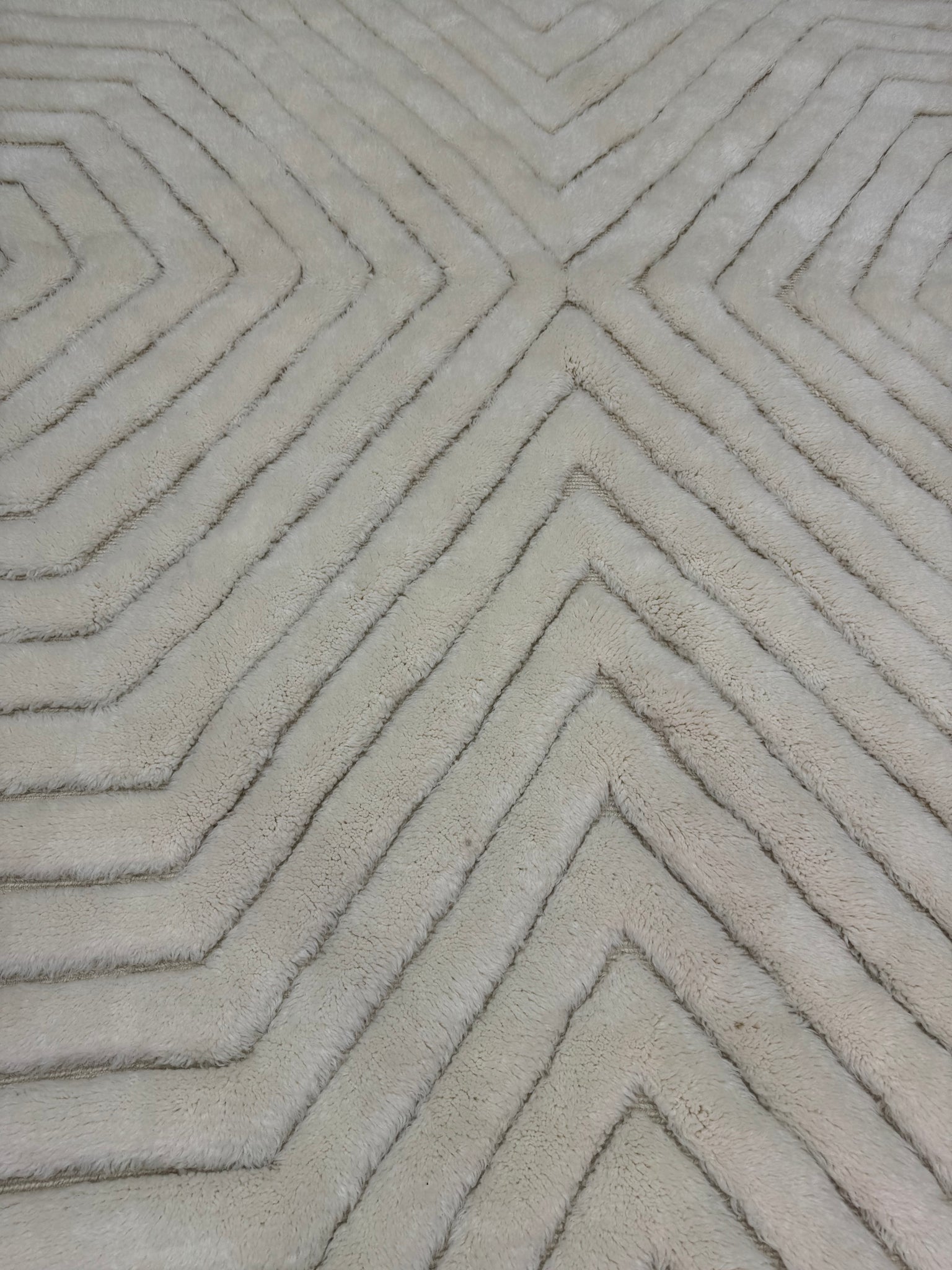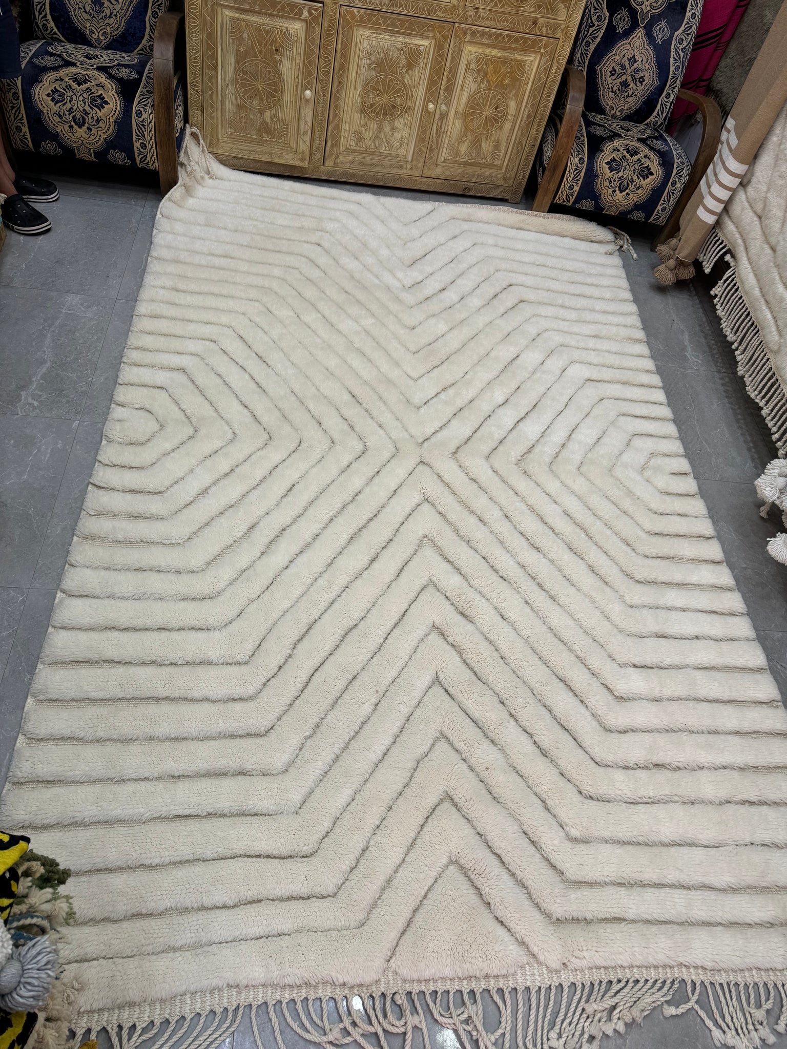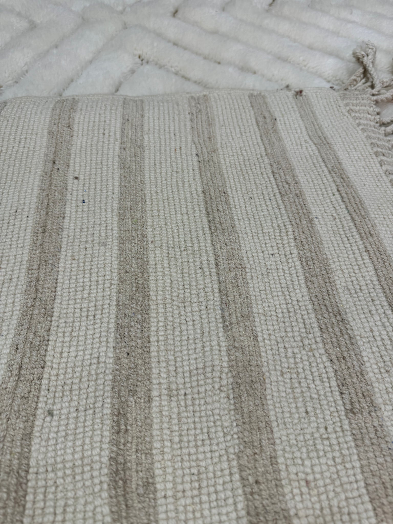 Modern Beni OURAIN rug, hand knotted by talented Berber dexterous weavers and professionally washed in Khenifra City. 100% premium wool and all natural organic ingredients are used to ensure pliability, a plush feel and exceptionally soft texture of these beautiful rugs.