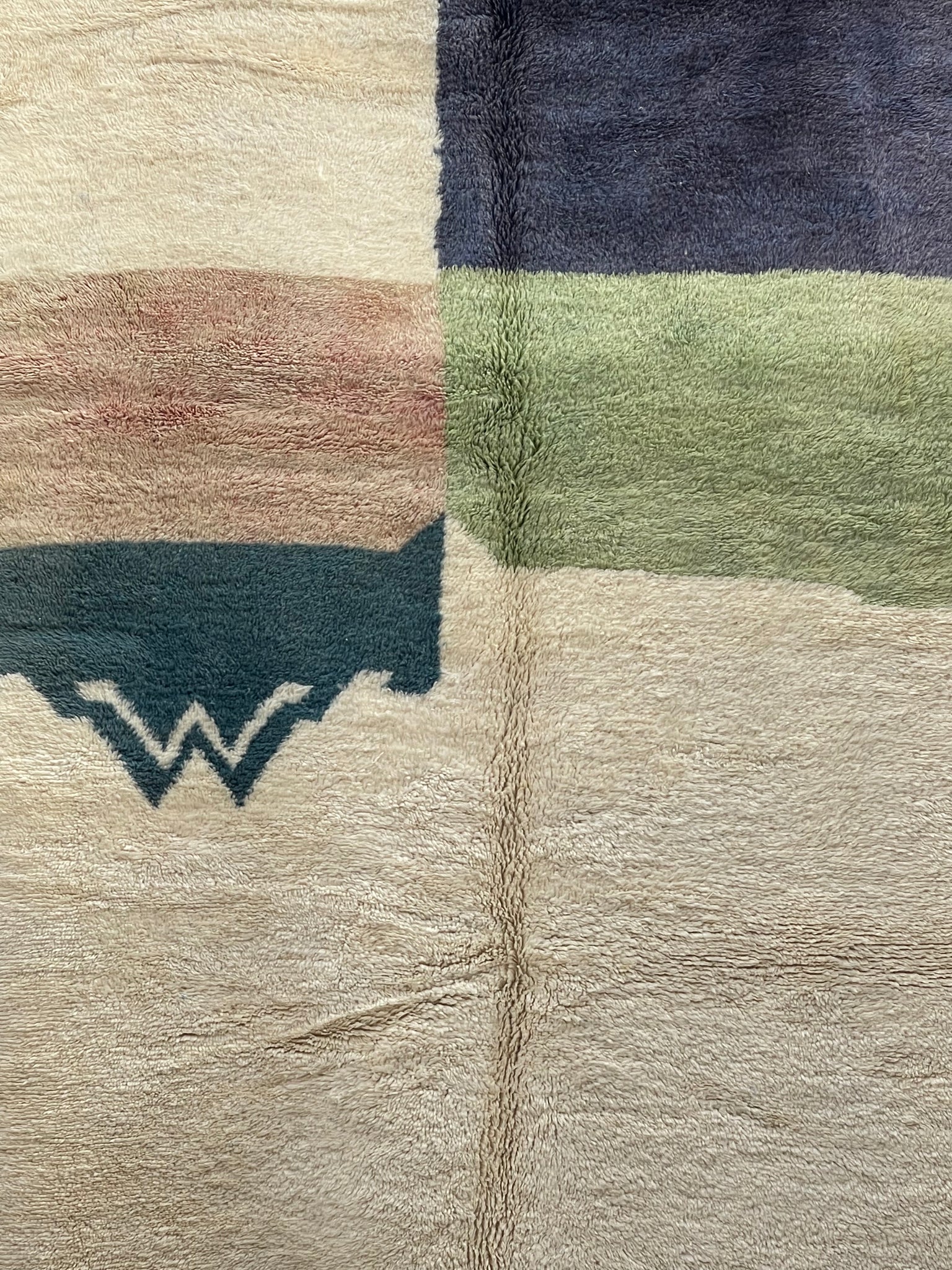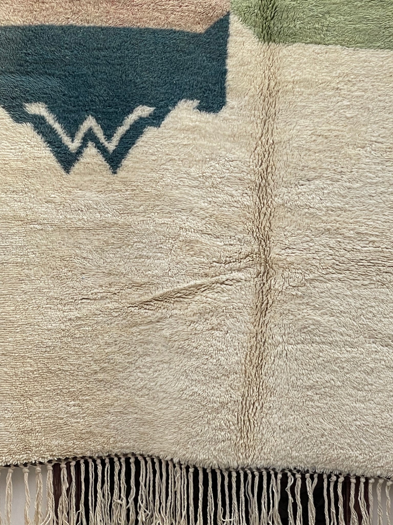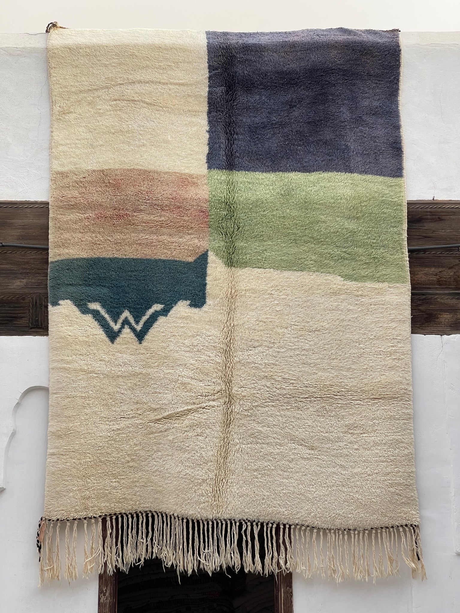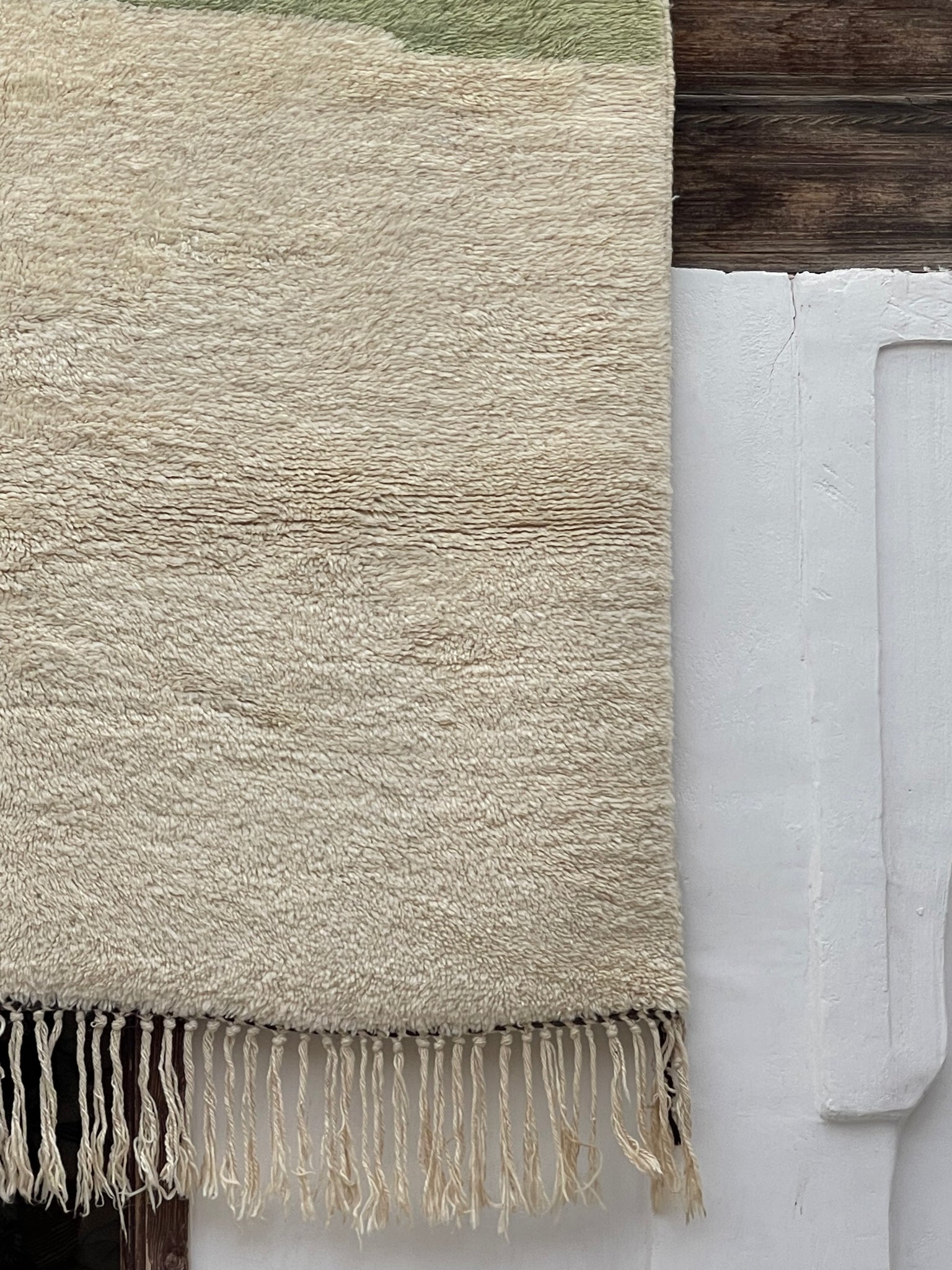 Modern Beni OURAIN rug, hand knotted by talented Berber dexterous weavers and professionally washed in Khenifra City. 100% premium wool and all natural organic ingredients are used to ensure pliability, a plush feel and exceptionally soft texture of these beautiful rugs.
