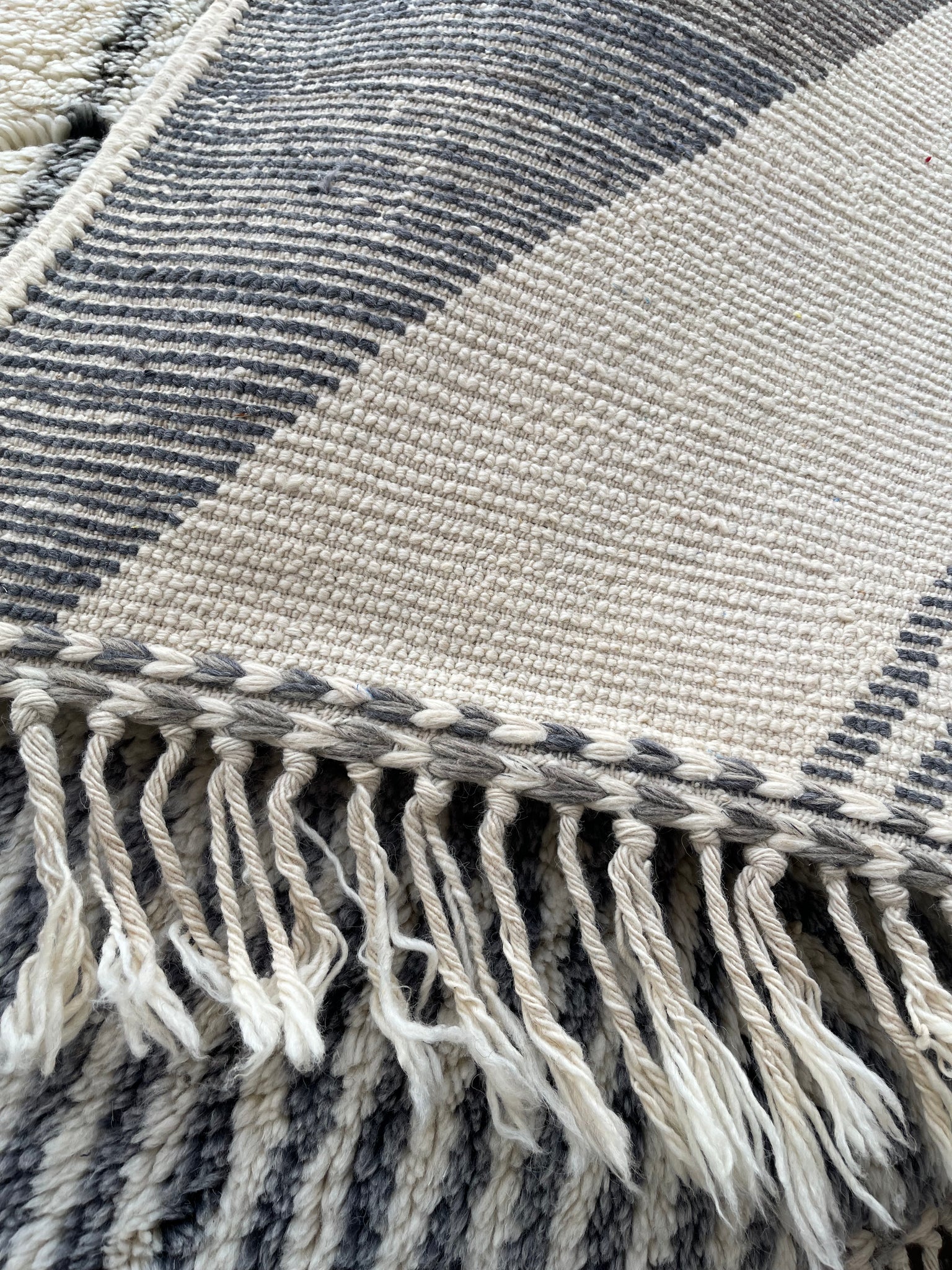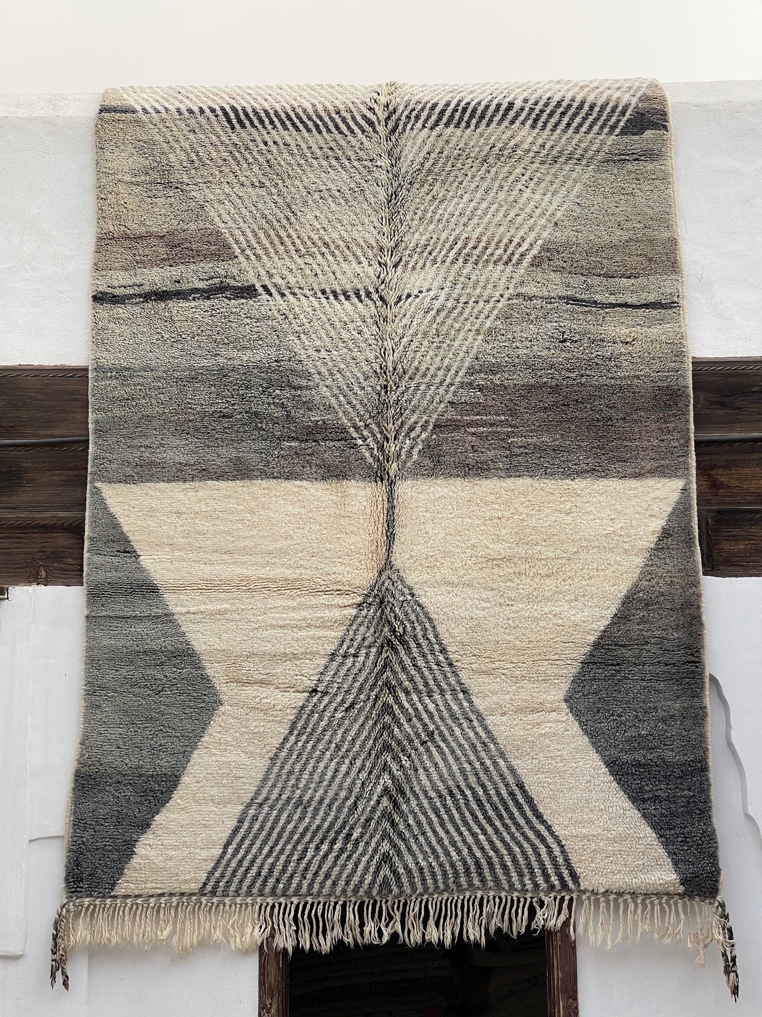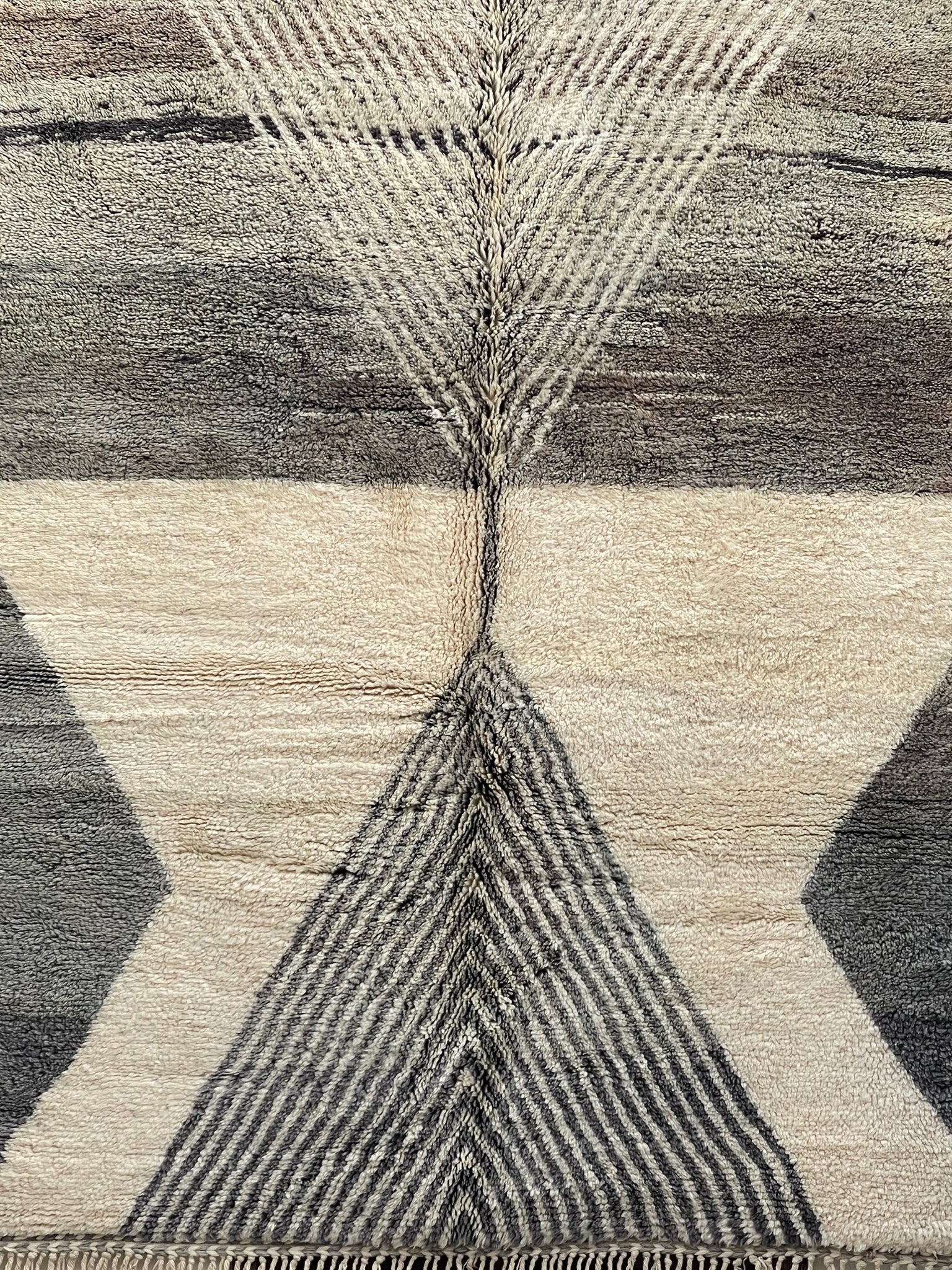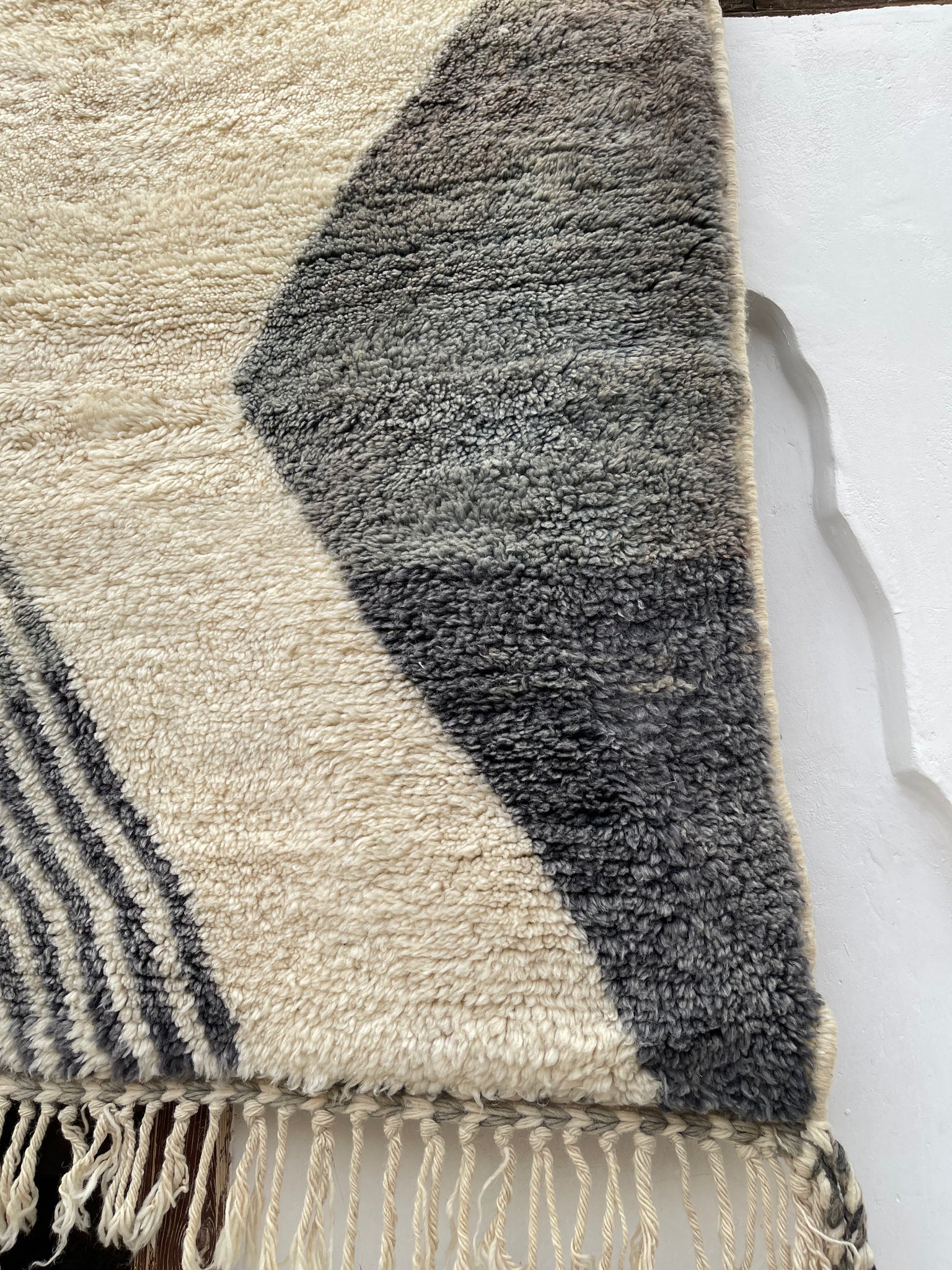 Modern Beni OURAIN rug, hand knotted by talented Berber dexterous weavers and professionally washed in Khenifra City. 100% premium wool and all natural organic ingredients are used to ensure pliability, a plush feel and exceptionally soft texture of these beautiful rugs.