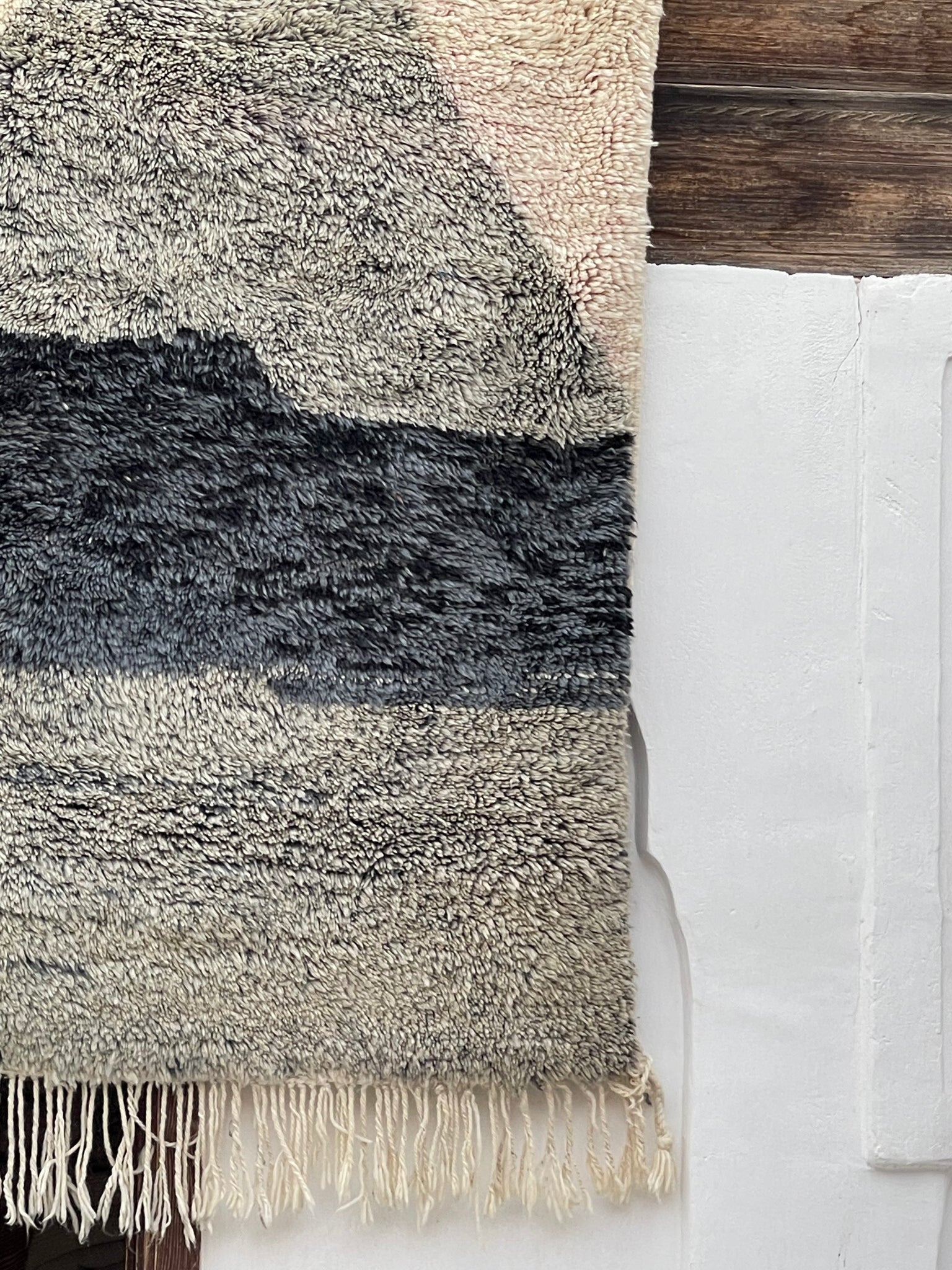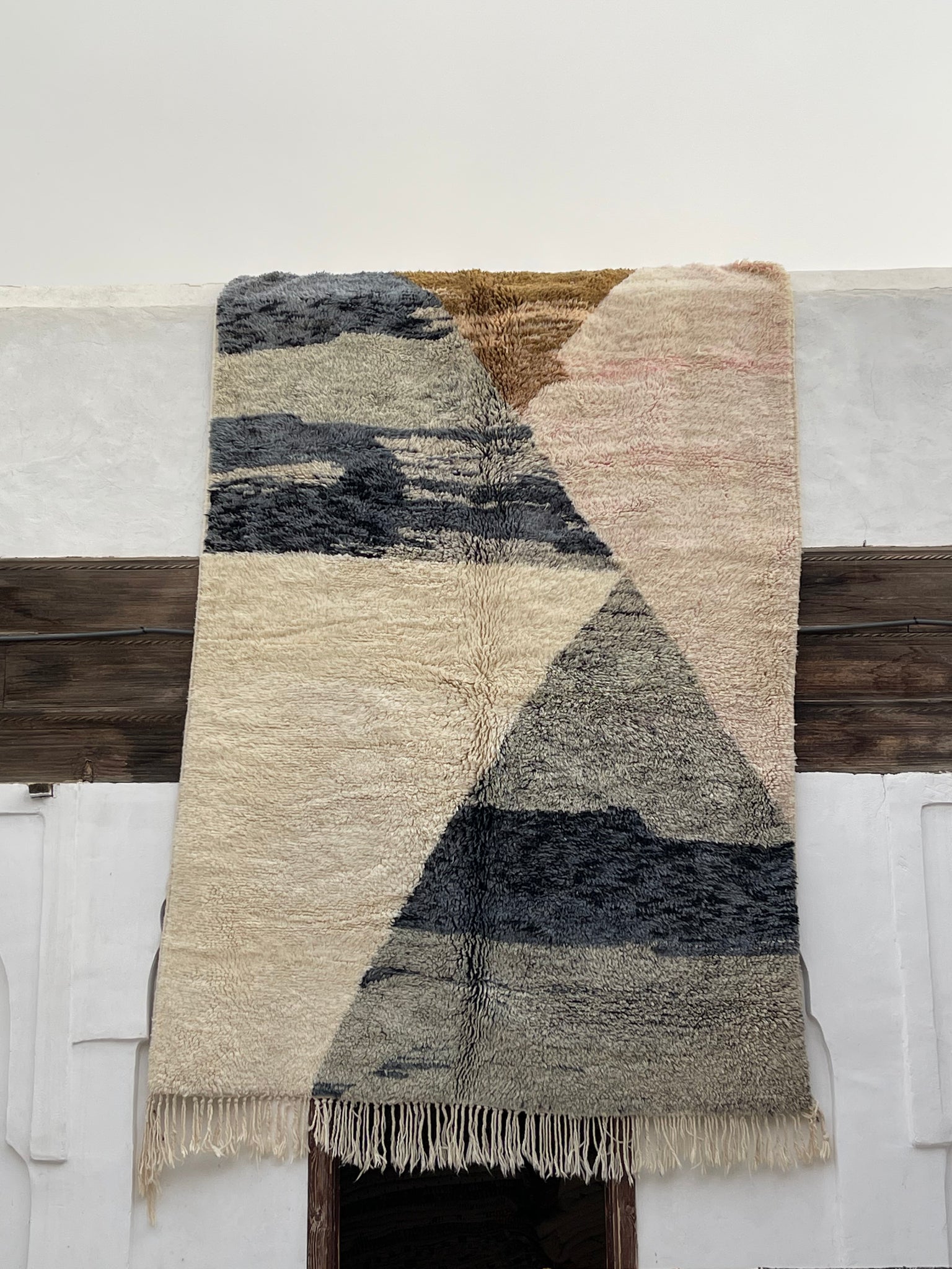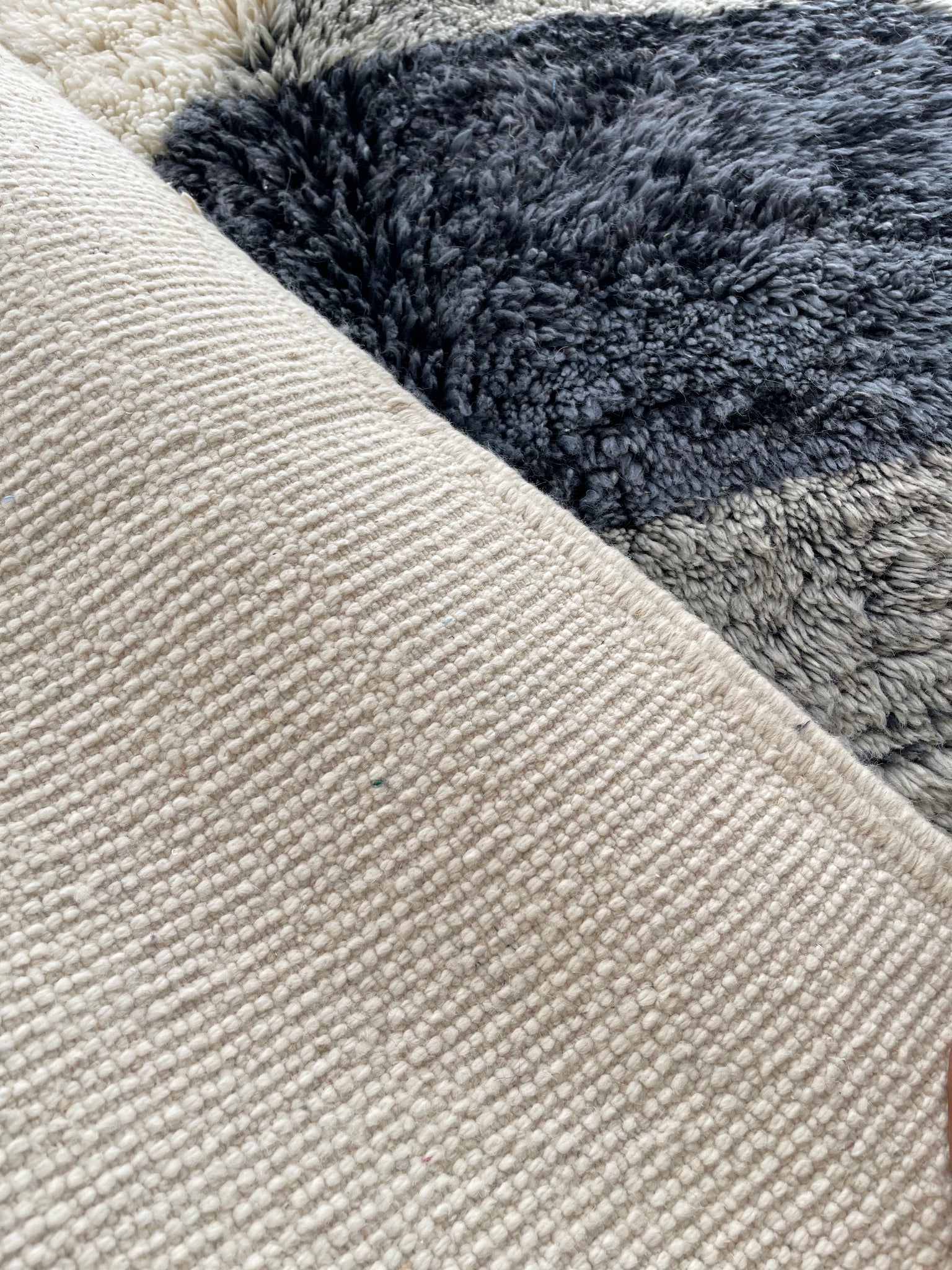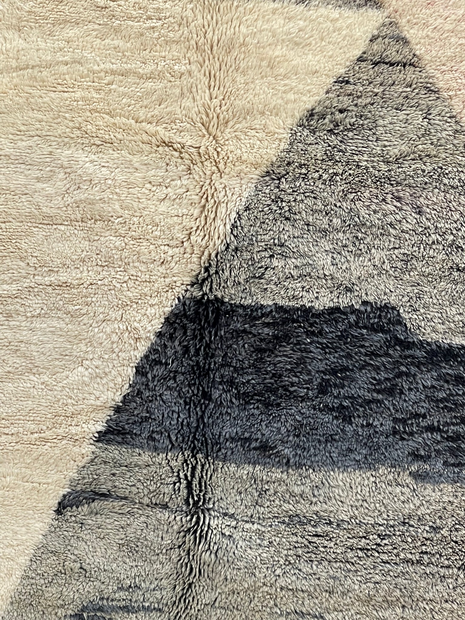 Modern Beni OURAIN rug, hand knotted by talented Berber dexterous weavers and professionally washed in Khenifra City. 100% premium wool and all natural organic ingredients are used to ensure pliability, a plush feel and exceptionally soft texture of these beautiful rugs.
