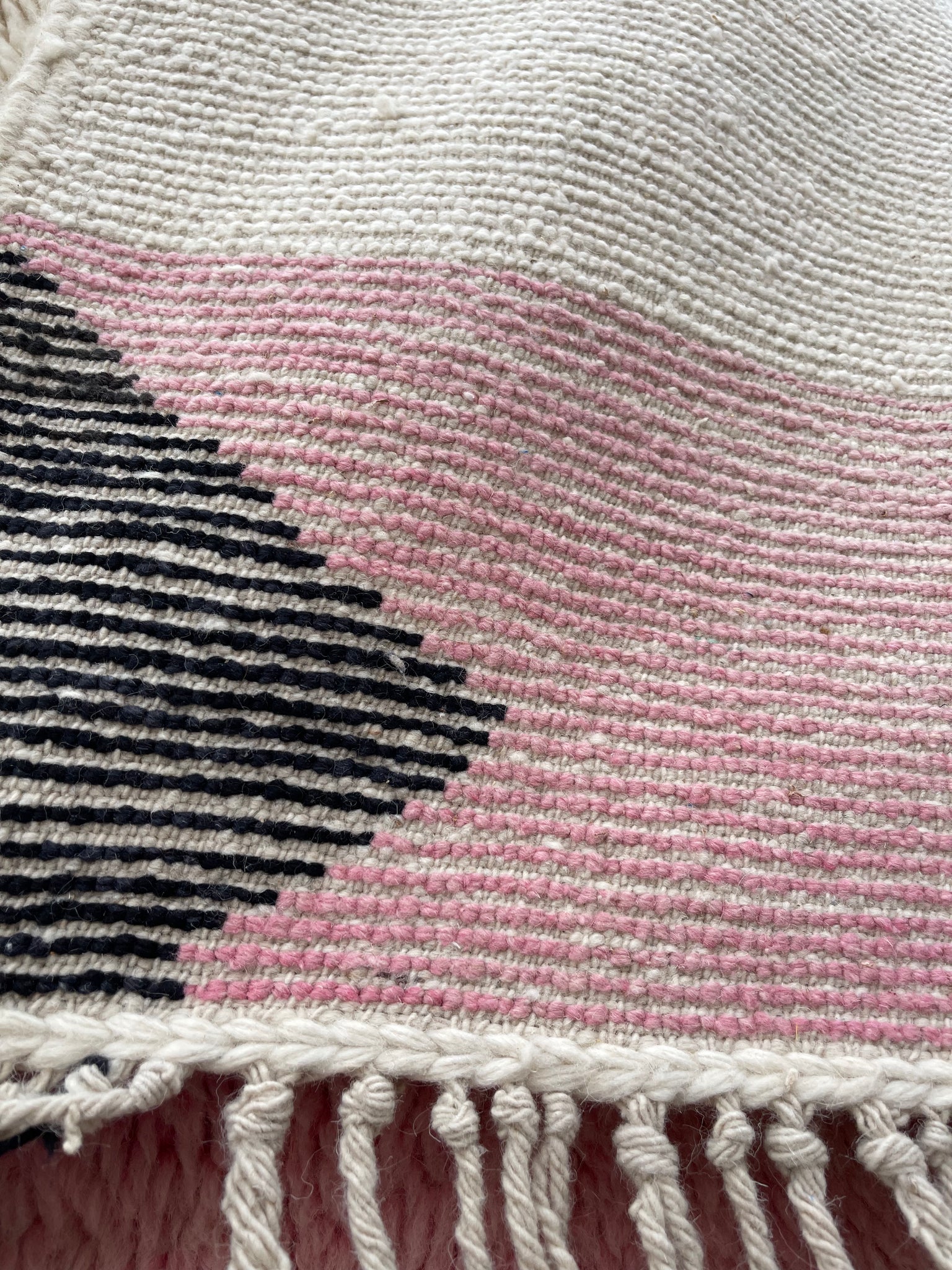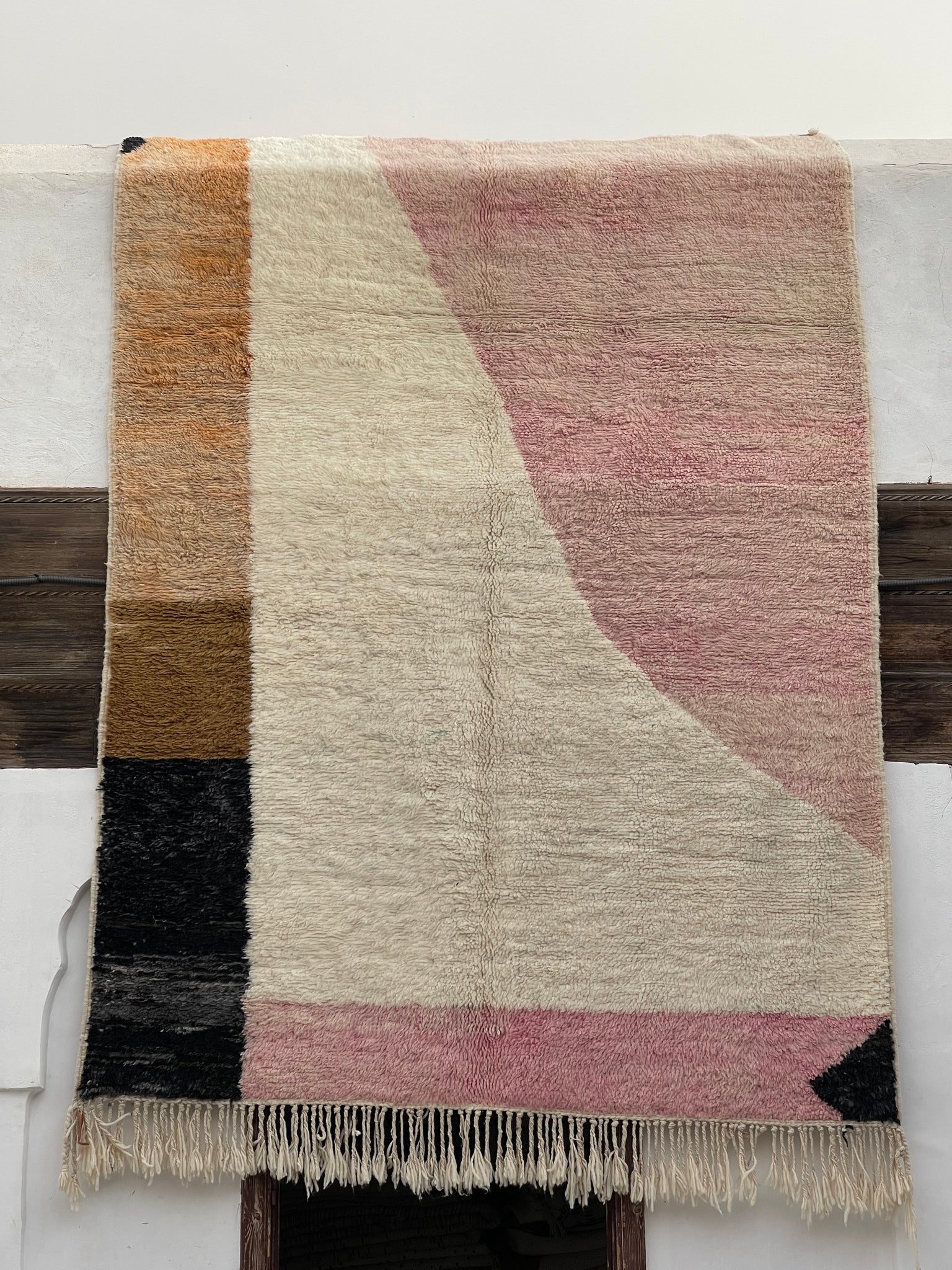 Modern Beni OURAIN rug, hand knotted by talented Berber dexterous weavers and professionally washed in Khenifra City. 100% premium wool and all natural organic ingredients are used to ensure pliability, a plush feel and exceptionally soft texture of these beautiful rugs.