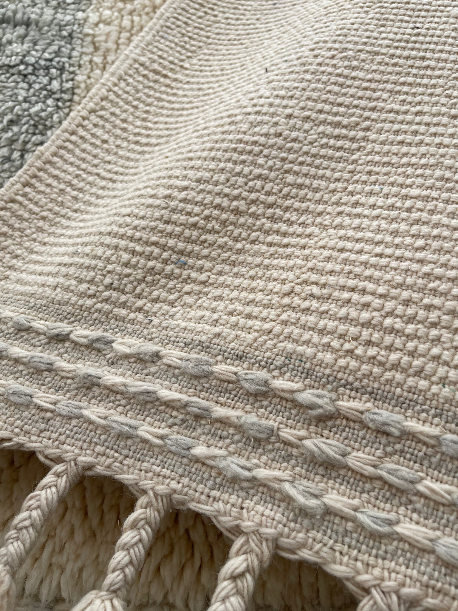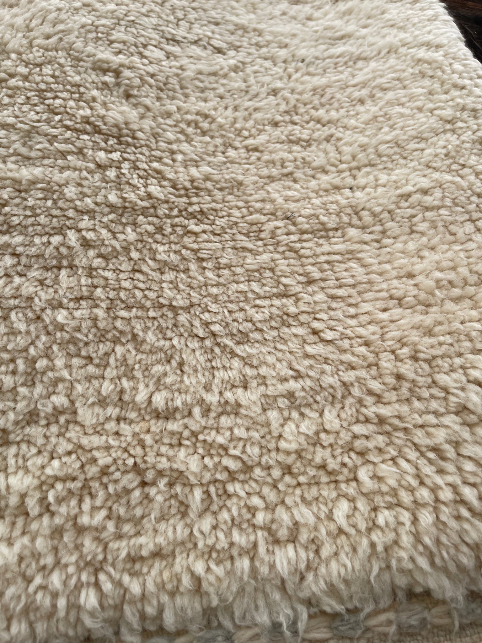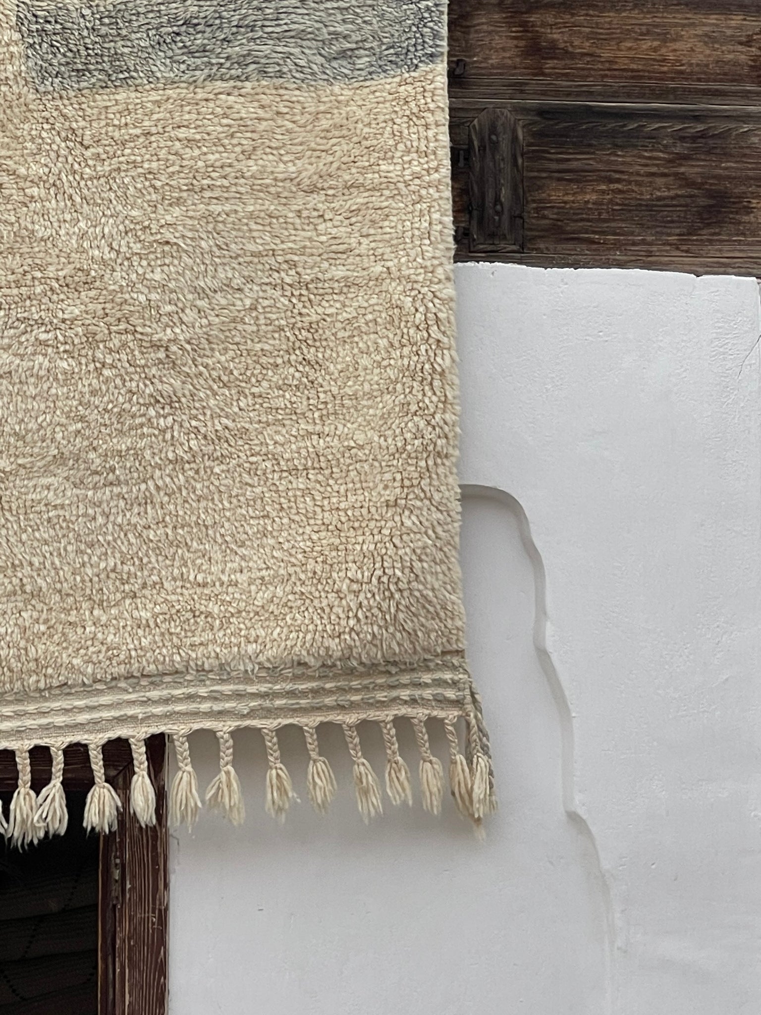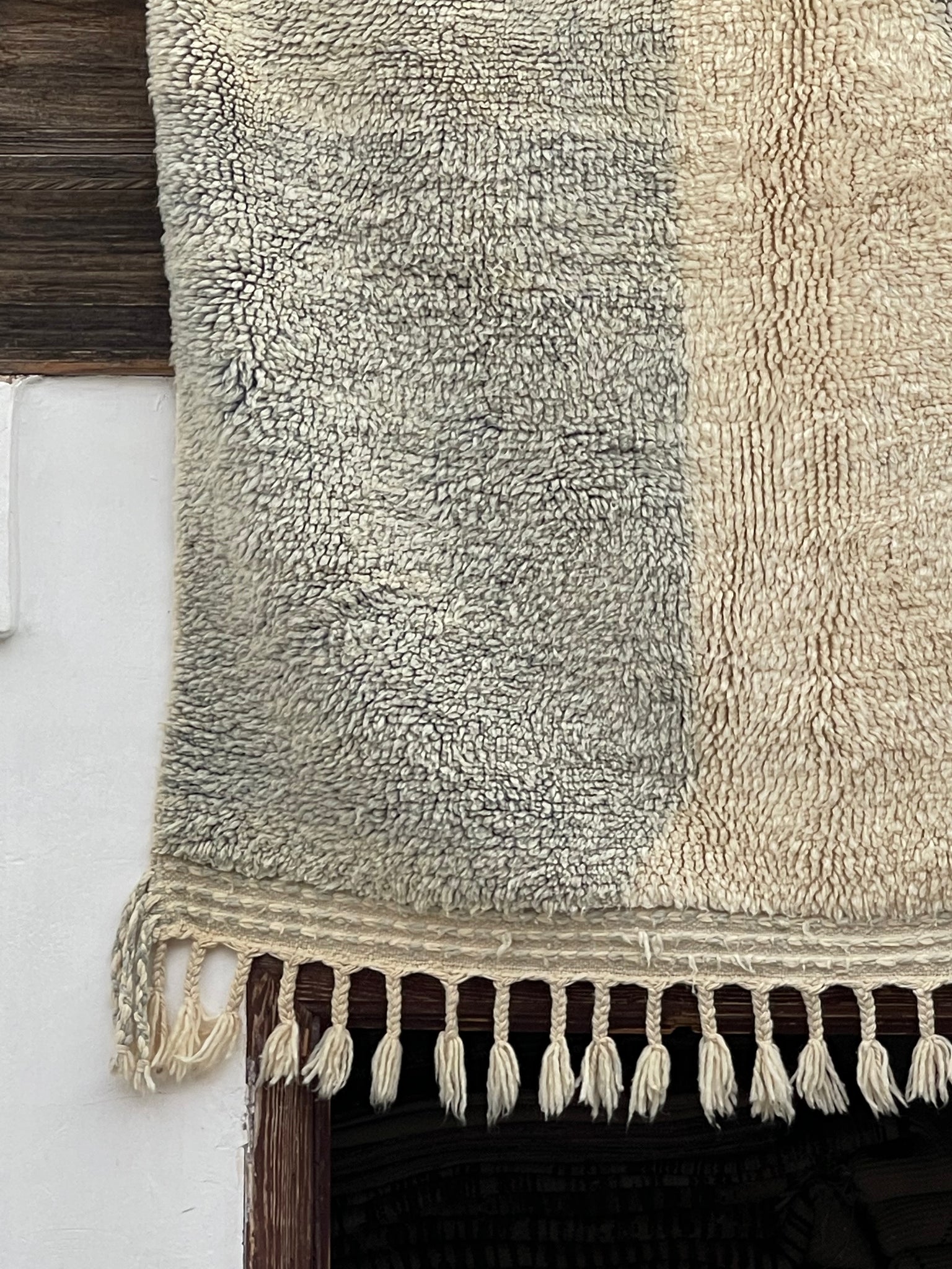 Modern Beni OURAIN rug, hand knotted by talented Berber dexterous weavers and professionally washed in Khenifra City. 100% premium wool and all natural organic ingredients are used to ensure pliability, a plush feel and exceptionally soft texture of these beautiful rugs.