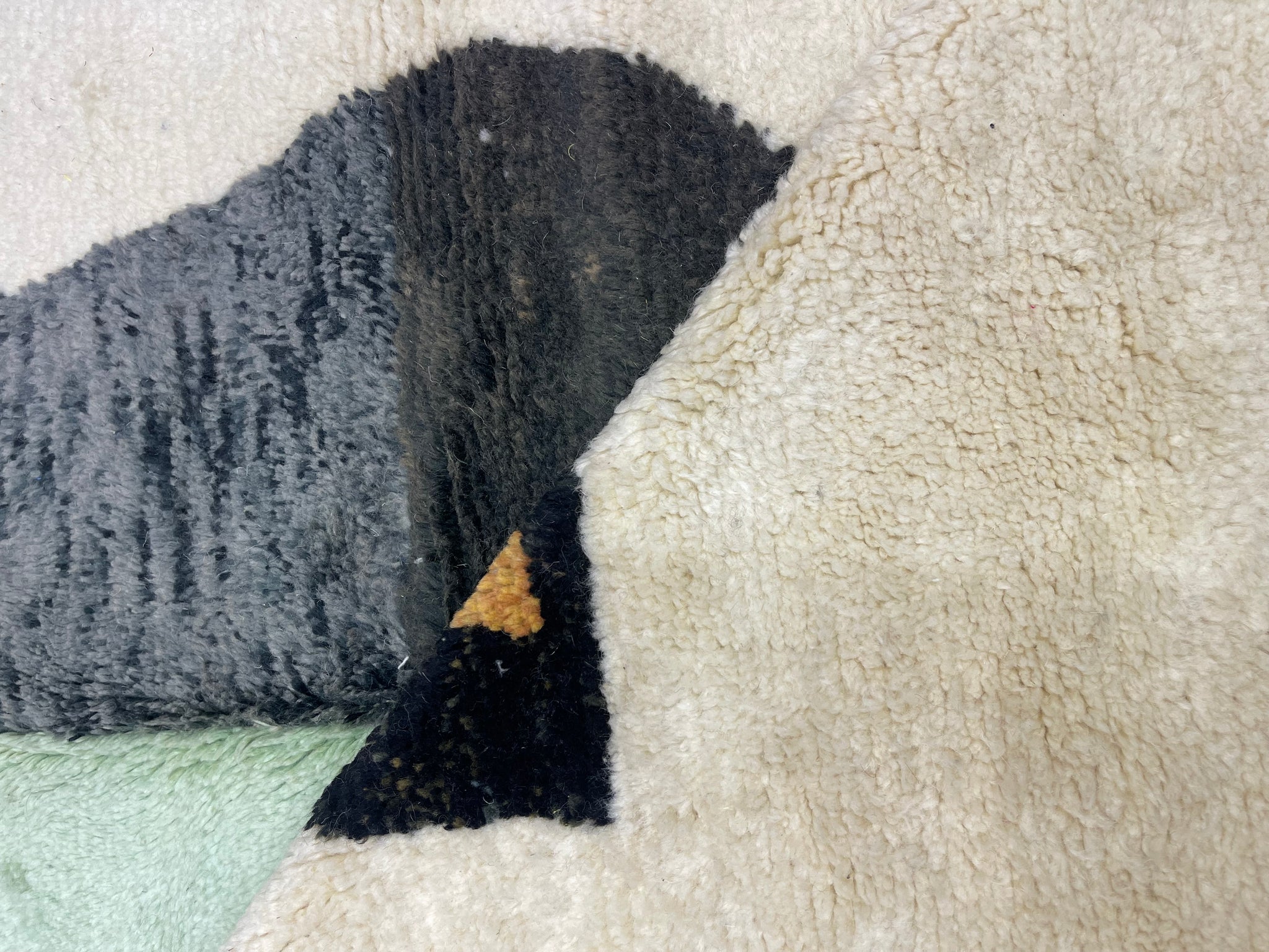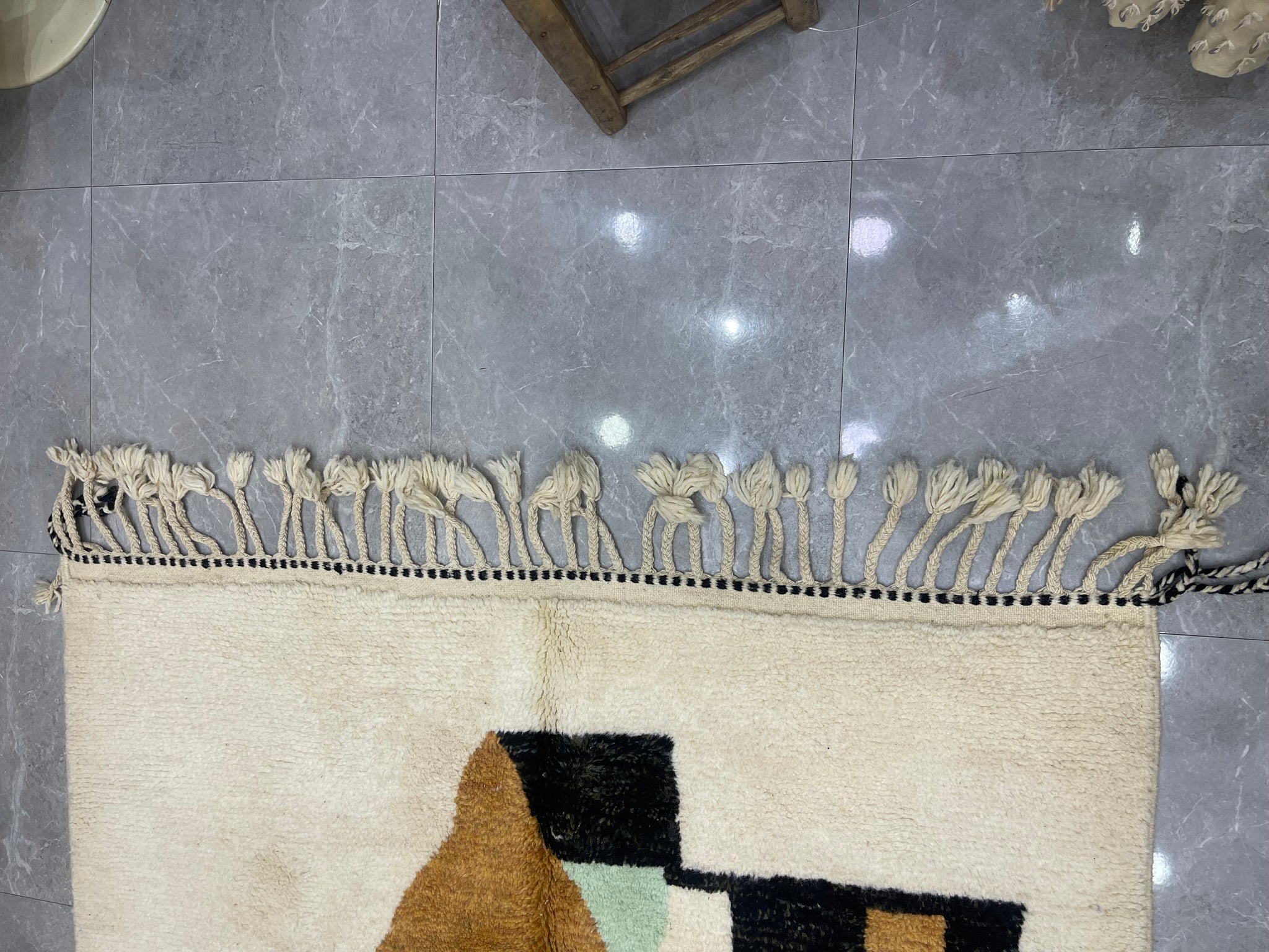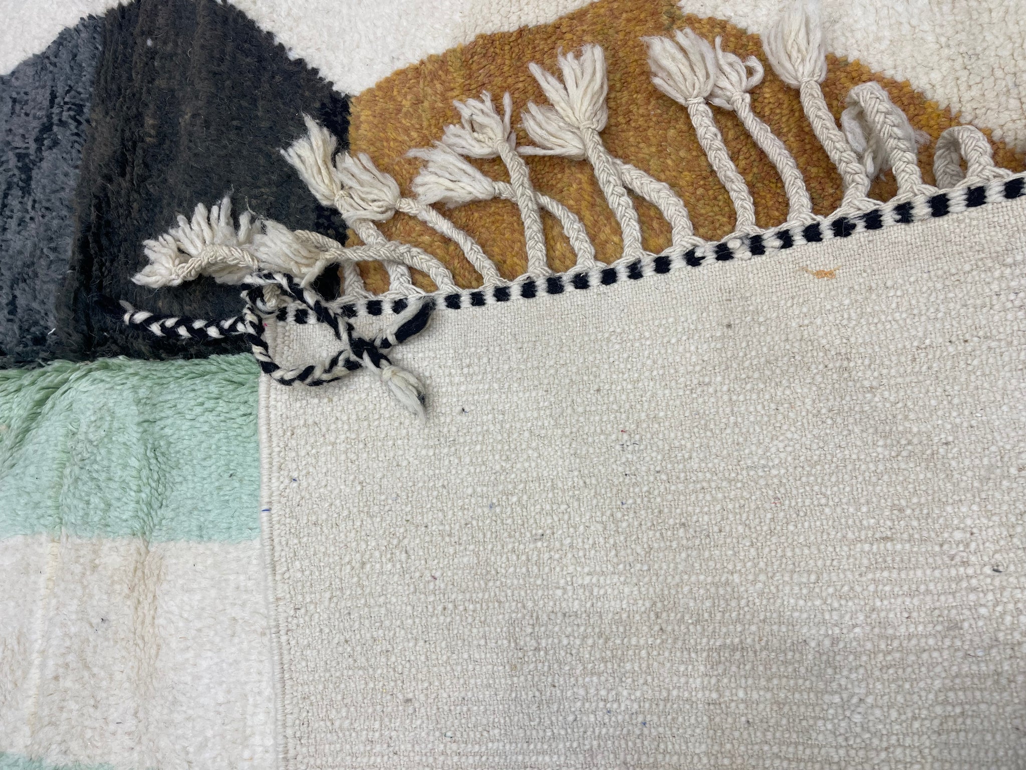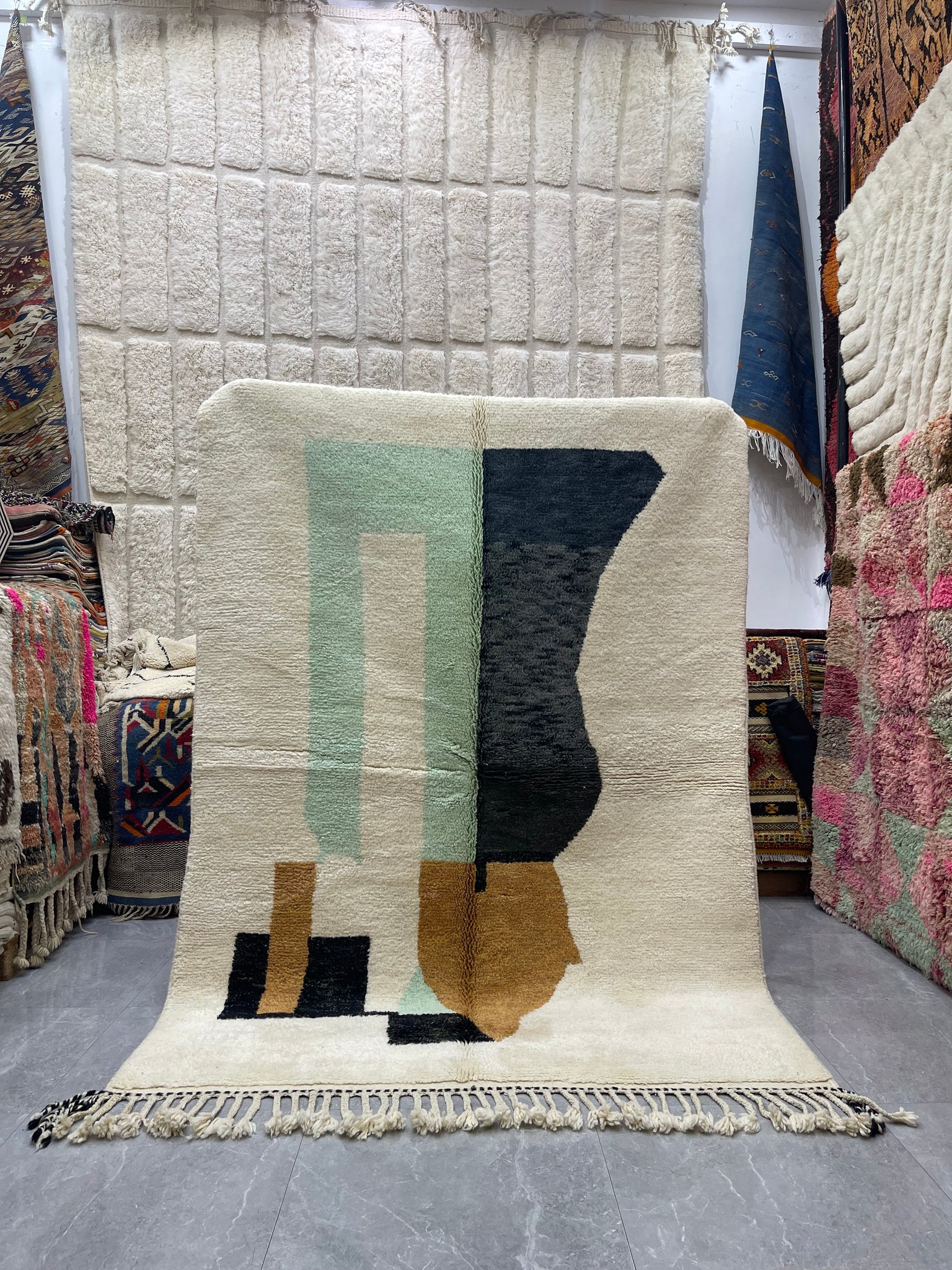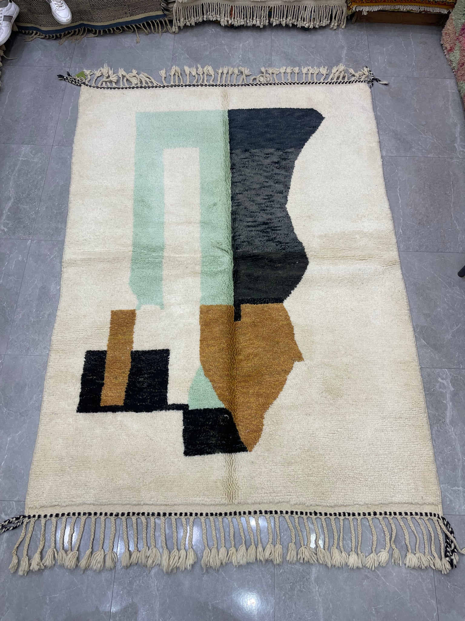 Modern Beni OURAIN rug, hand knotted by talented Berber dexterous weavers and professionally washed in Khenifra City. 100% premium wool and all natural organic ingredients are used to ensure pliability, a plush feel and exceptionally soft texture of these beautiful rugs.