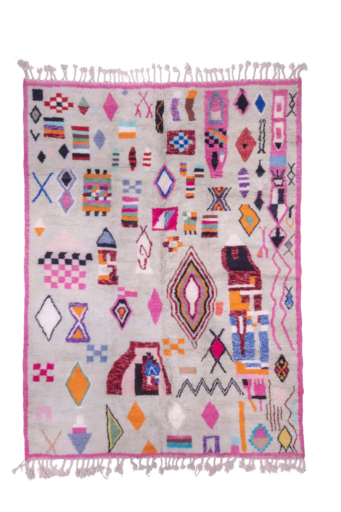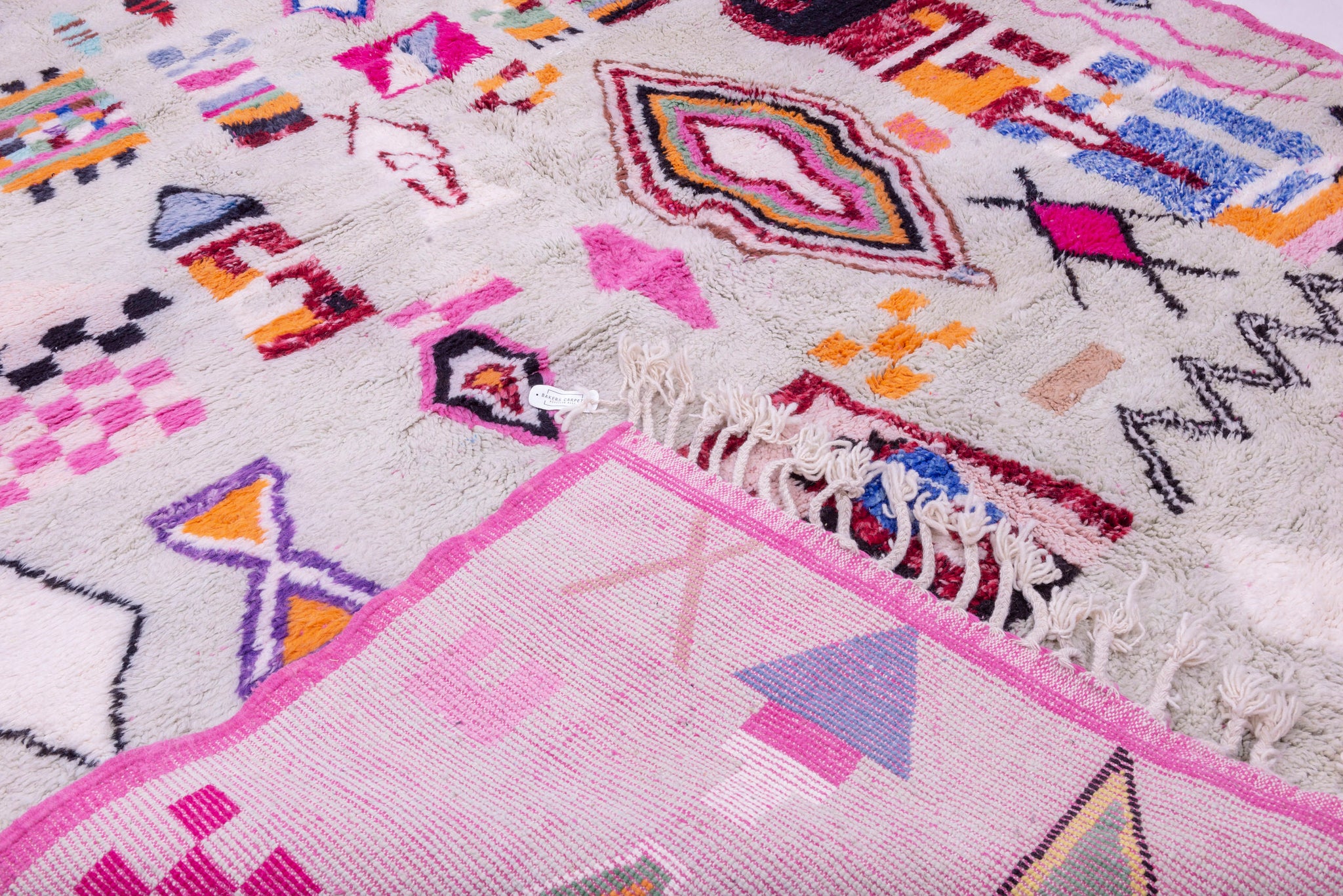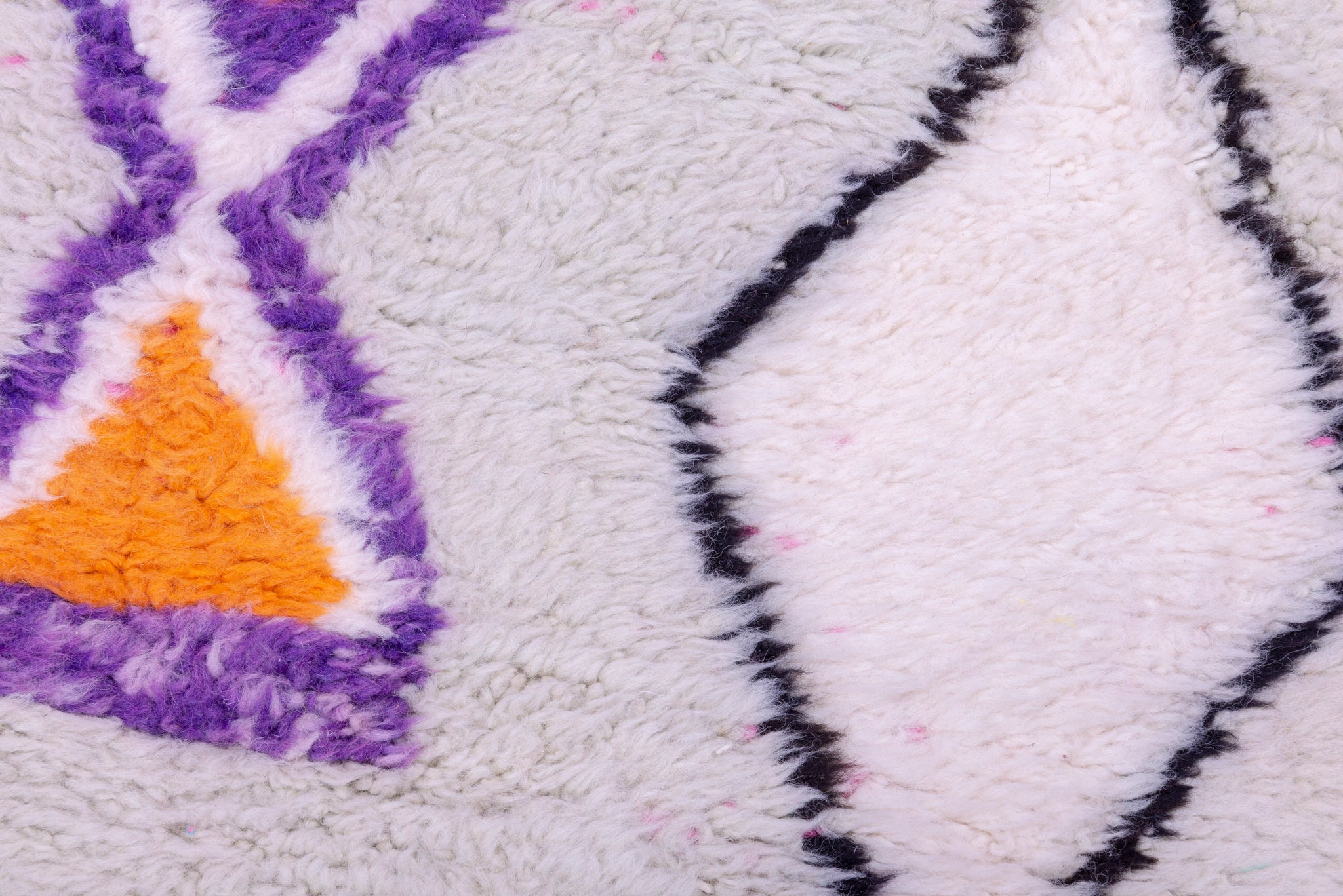 Modern Beni mrirt rug, handknotted by talented Berber dexterous weavers and professionally washed in Khenifra City. 100% premium wool and all natural organic ingredients are used to ensure pliability, a plush feel and exceptionally soft texture of these beautiful rugs.