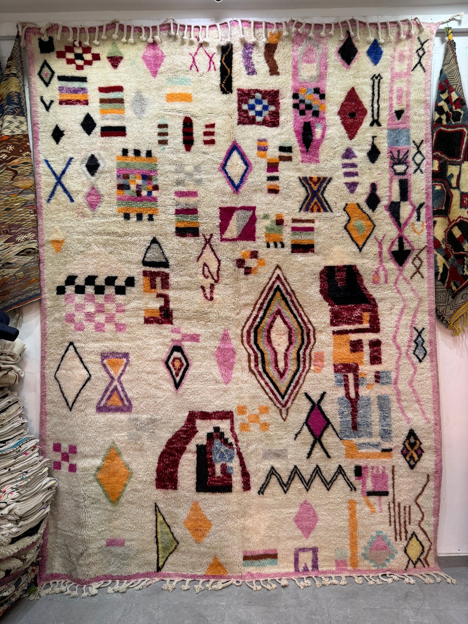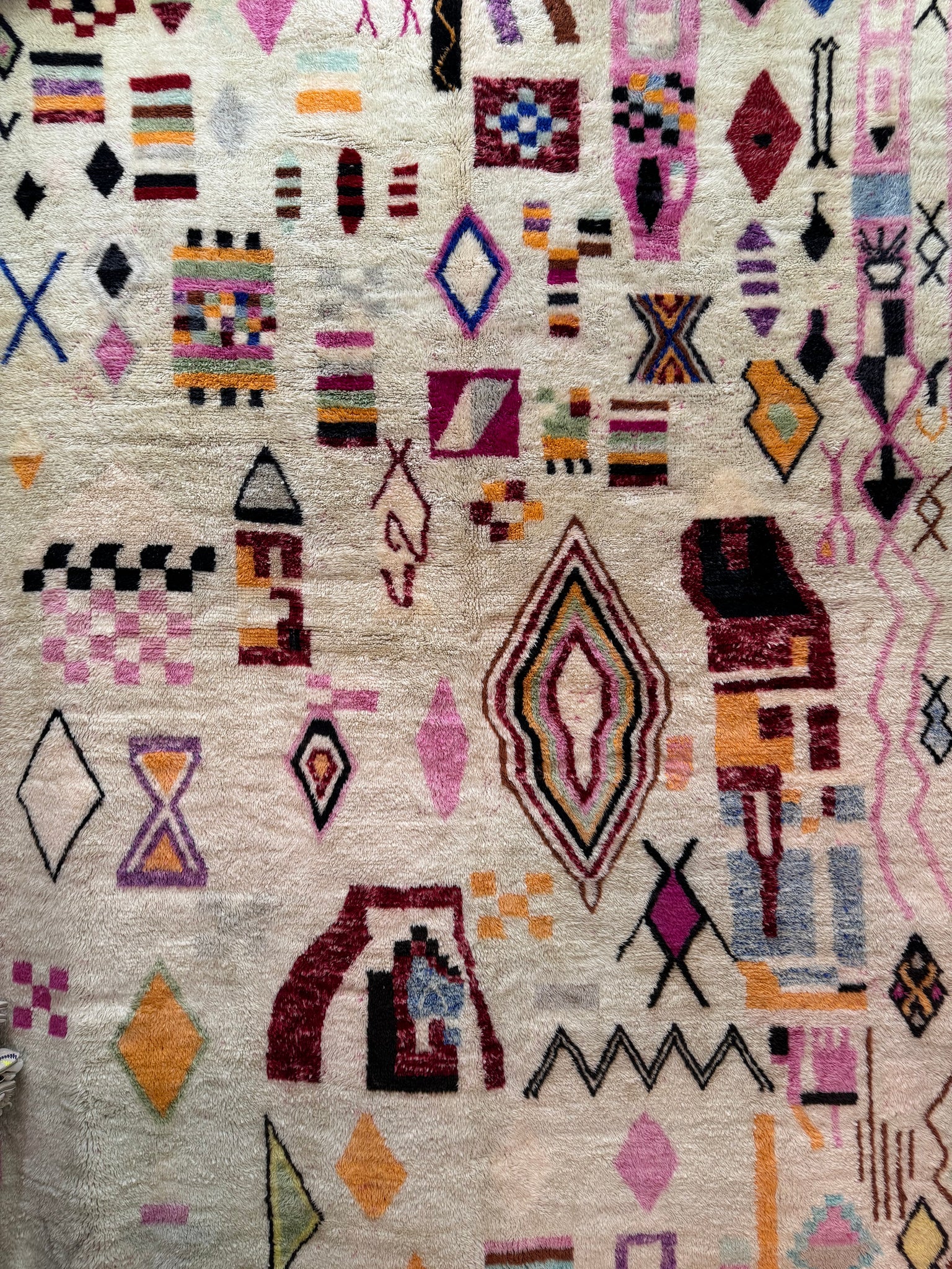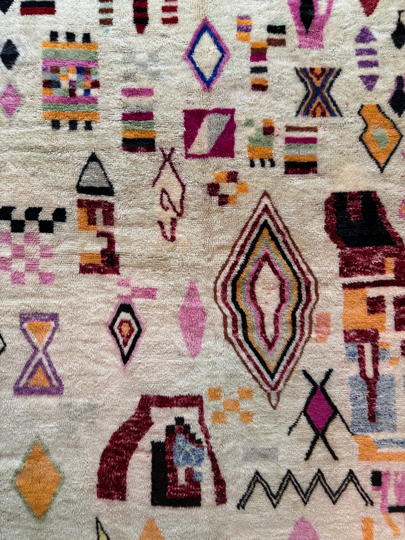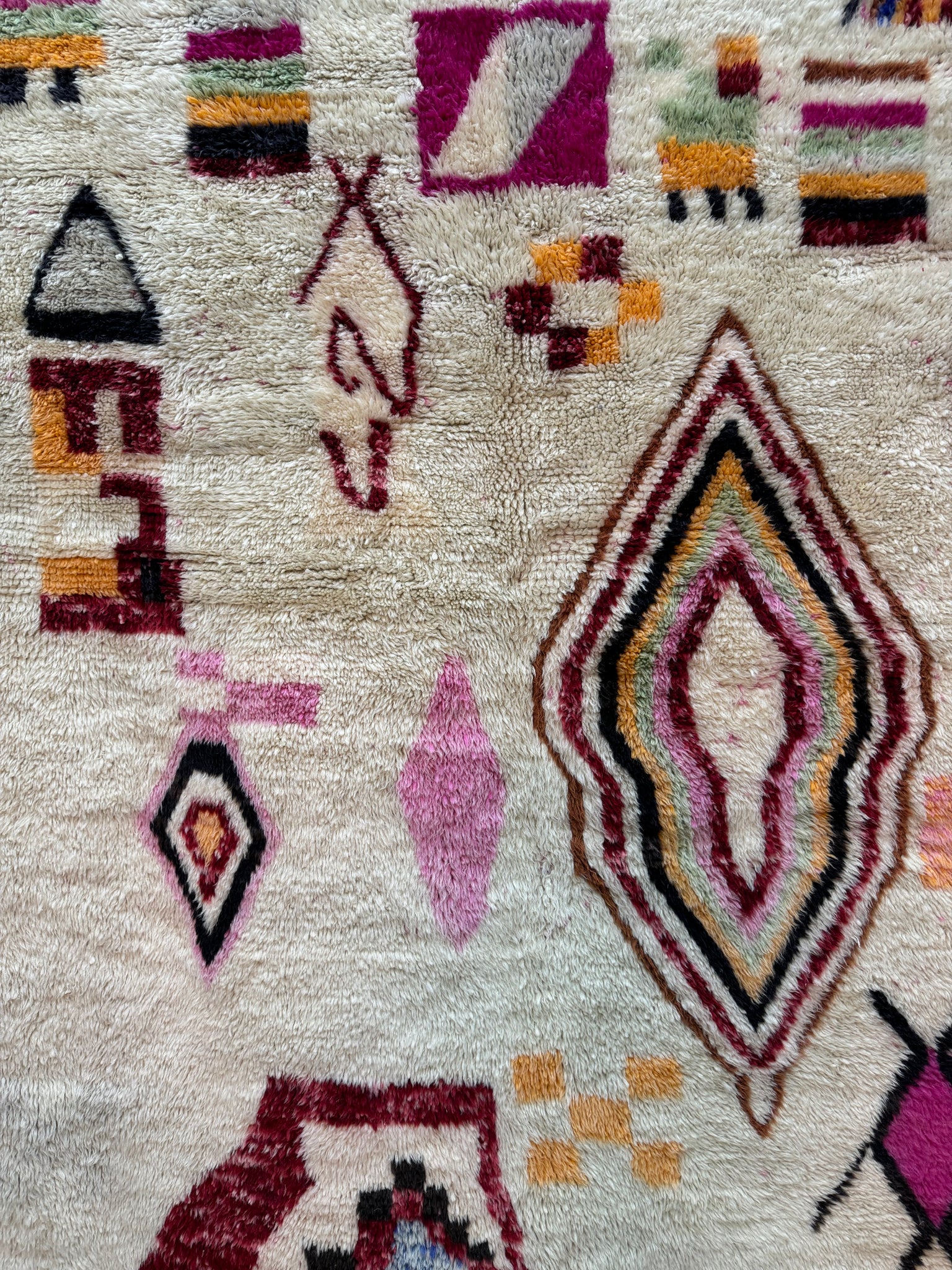 Modern Beni mrirt rug, handknotted by talented Berber dexterous weavers and professionally washed in Khenifra City. 100% premium wool and all natural organic ingredients are used to ensure pliability, a plush feel and exceptionally soft texture of these beautiful rugs.