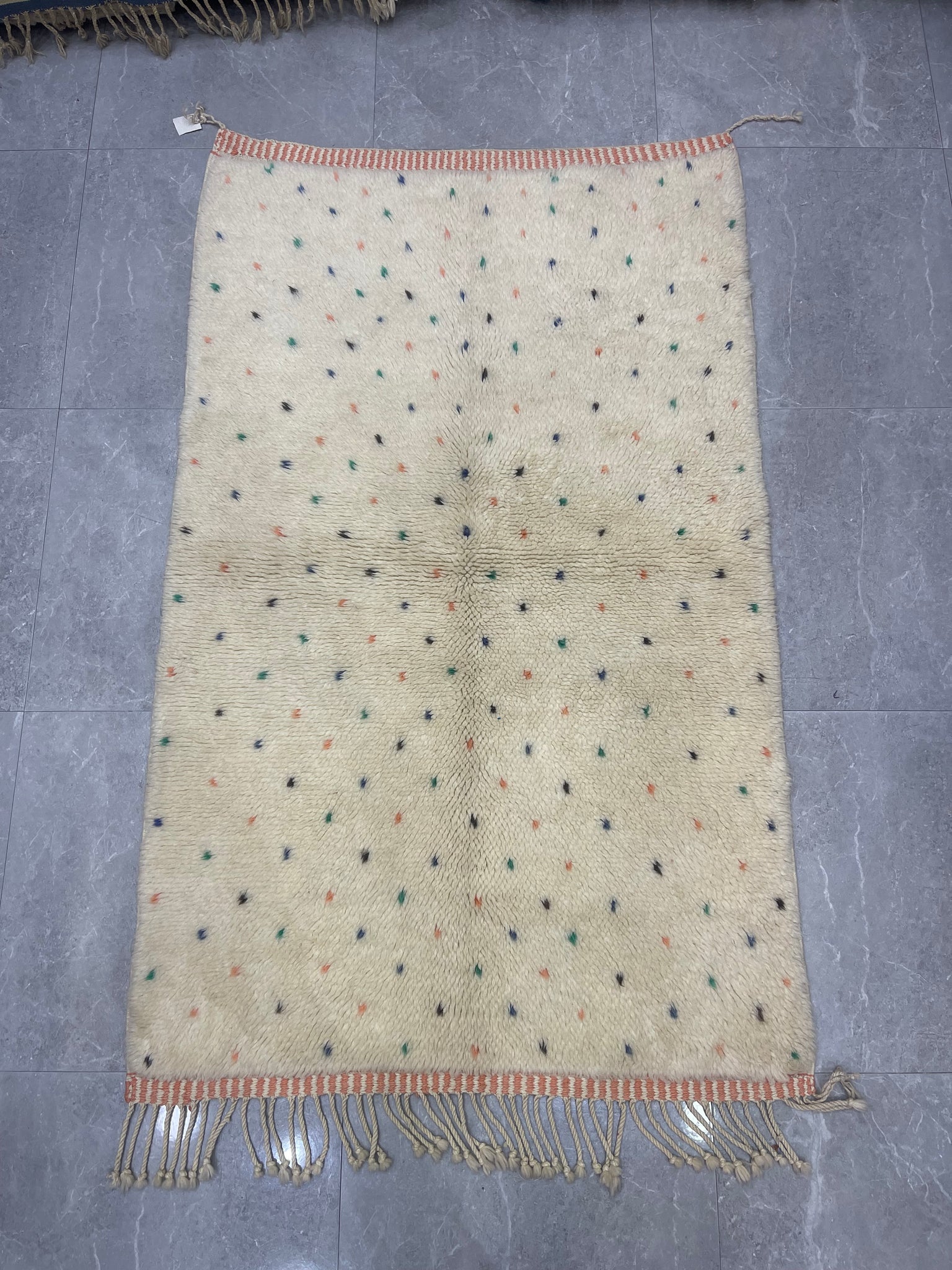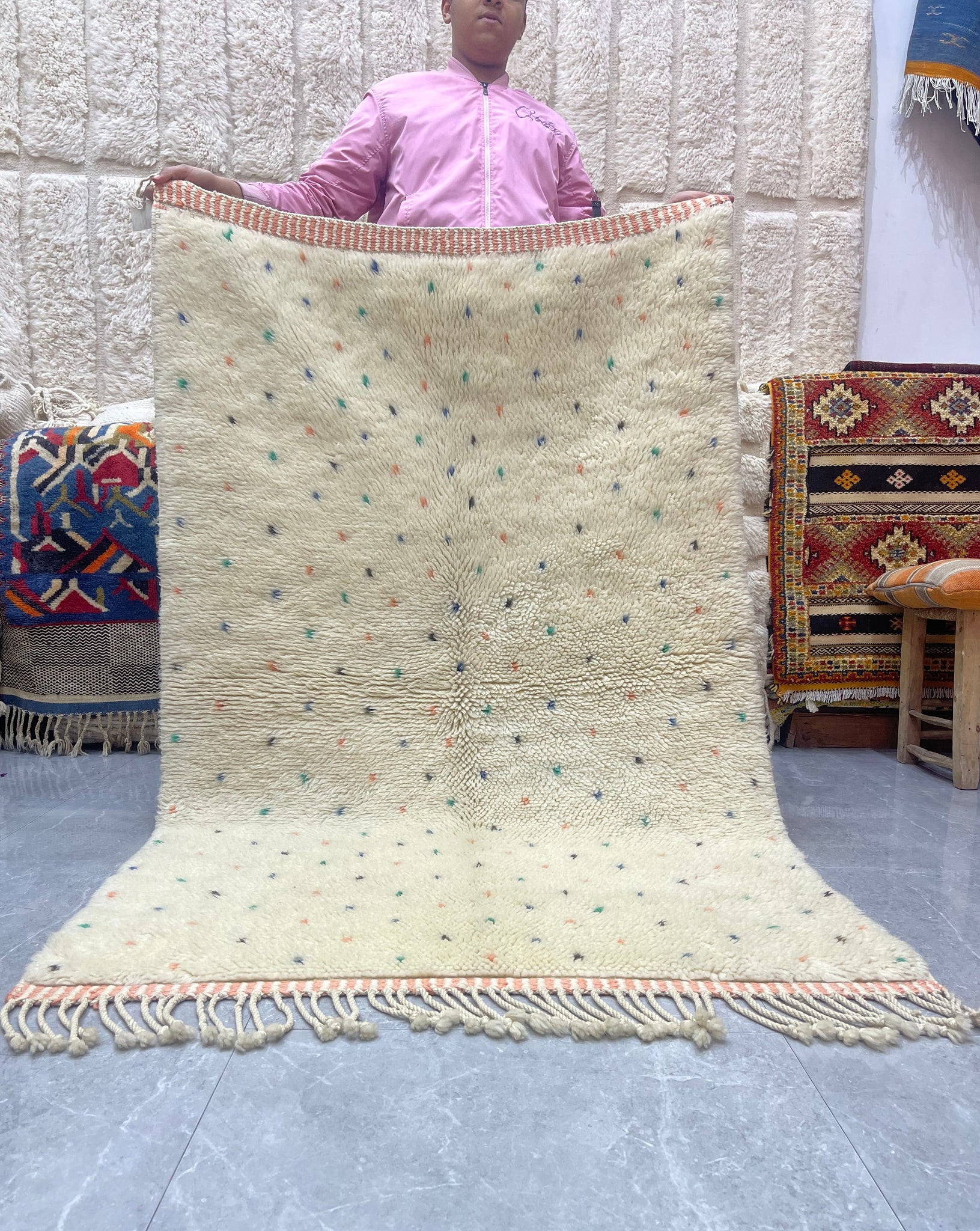 Modern Beni OURAIN rug, hand knotted by talented Berber dexterous weavers and professionally washed in Khenifra City. 100% premium wool and all natural organic ingredients are used to ensure pliability, a plush feel and exceptionally soft texture of these beautiful rugs.