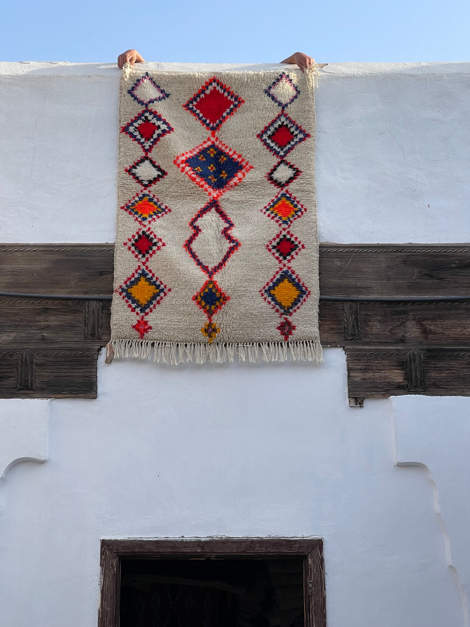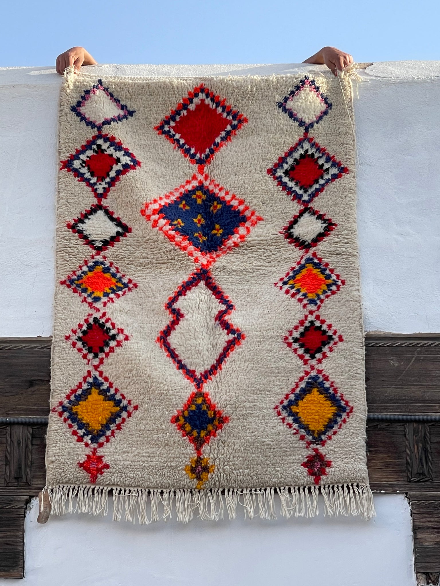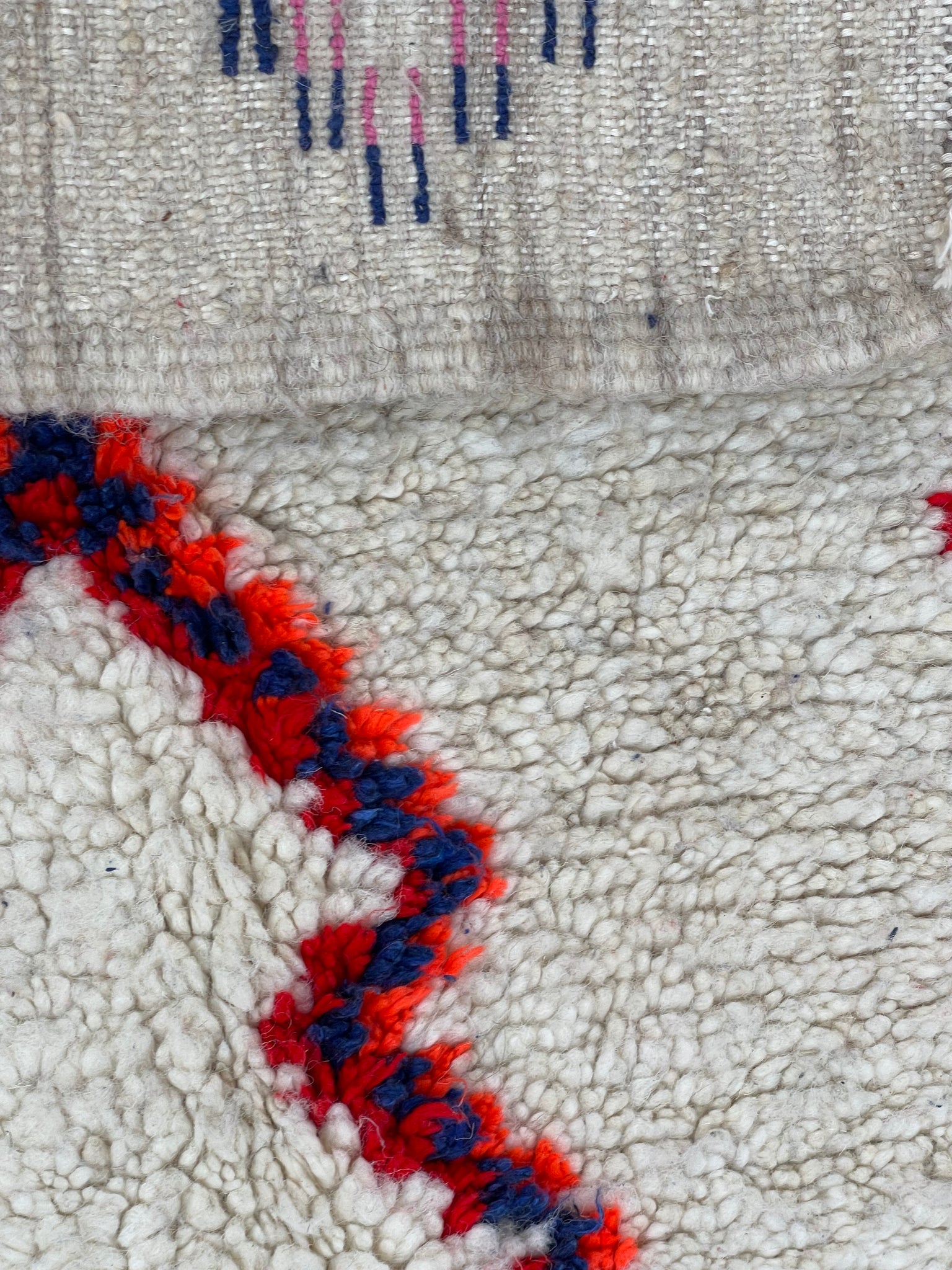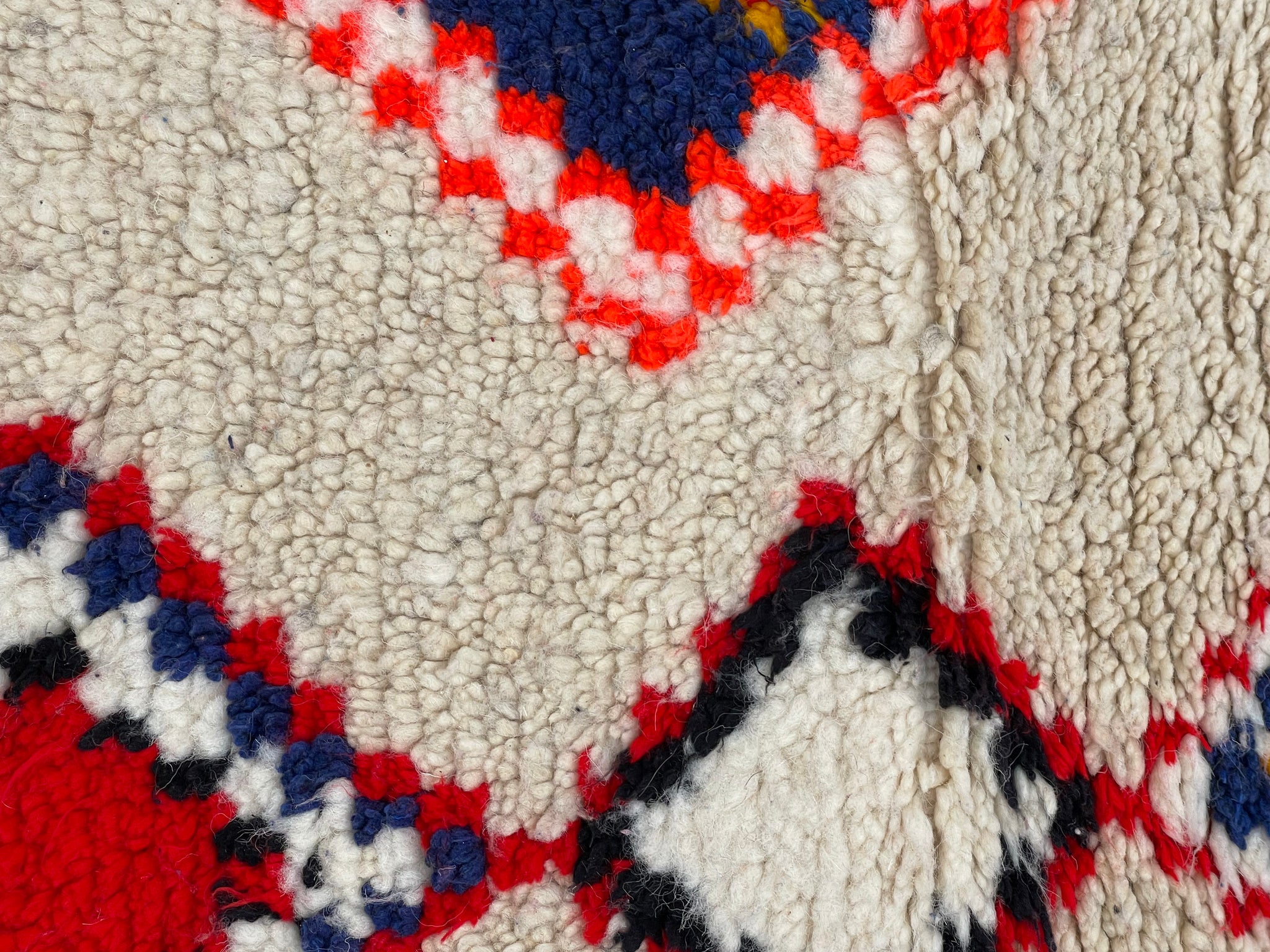 Modern Beni OURAIN rug, hand knotted by talented Berber dexterous weavers and professionally washed in Khenifra City. 100% premium wool and all natural organic ingredients are used to ensure pliability, a plush feel and exceptionally soft texture of these beautiful rugs.
