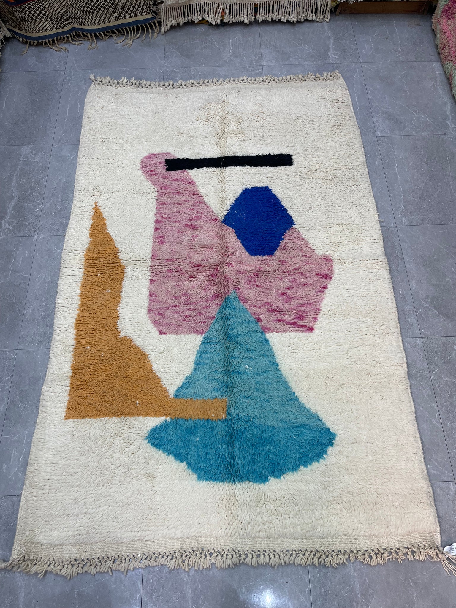 Modern Beni OURAIN rug, hand knotted by talented Berber dexterous weavers and professionally washed in Khenifra City. 100% premium wool and all natural organic ingredients are used to ensure pliability, a plush feel and exceptionally soft texture of these beautiful rugs.