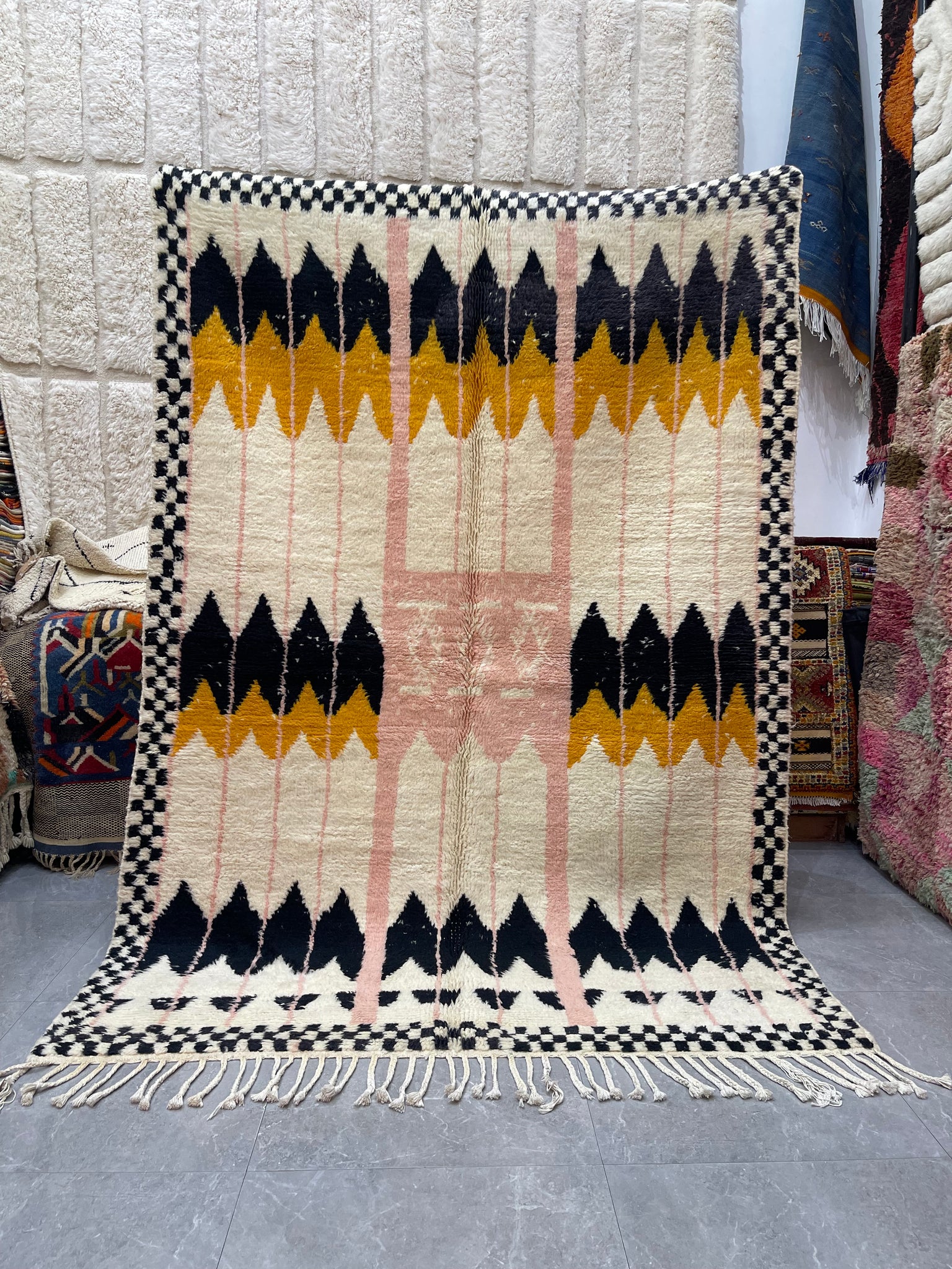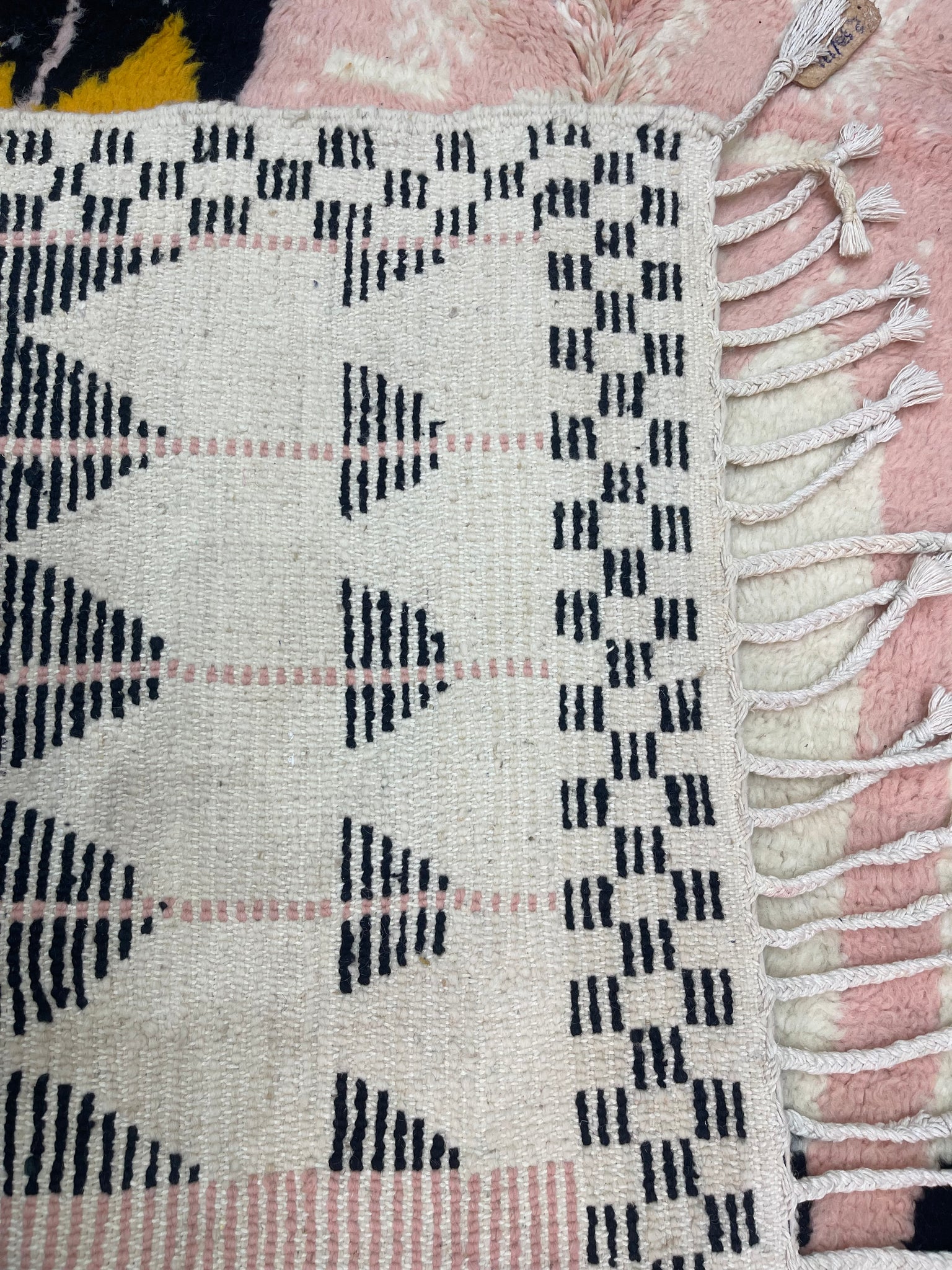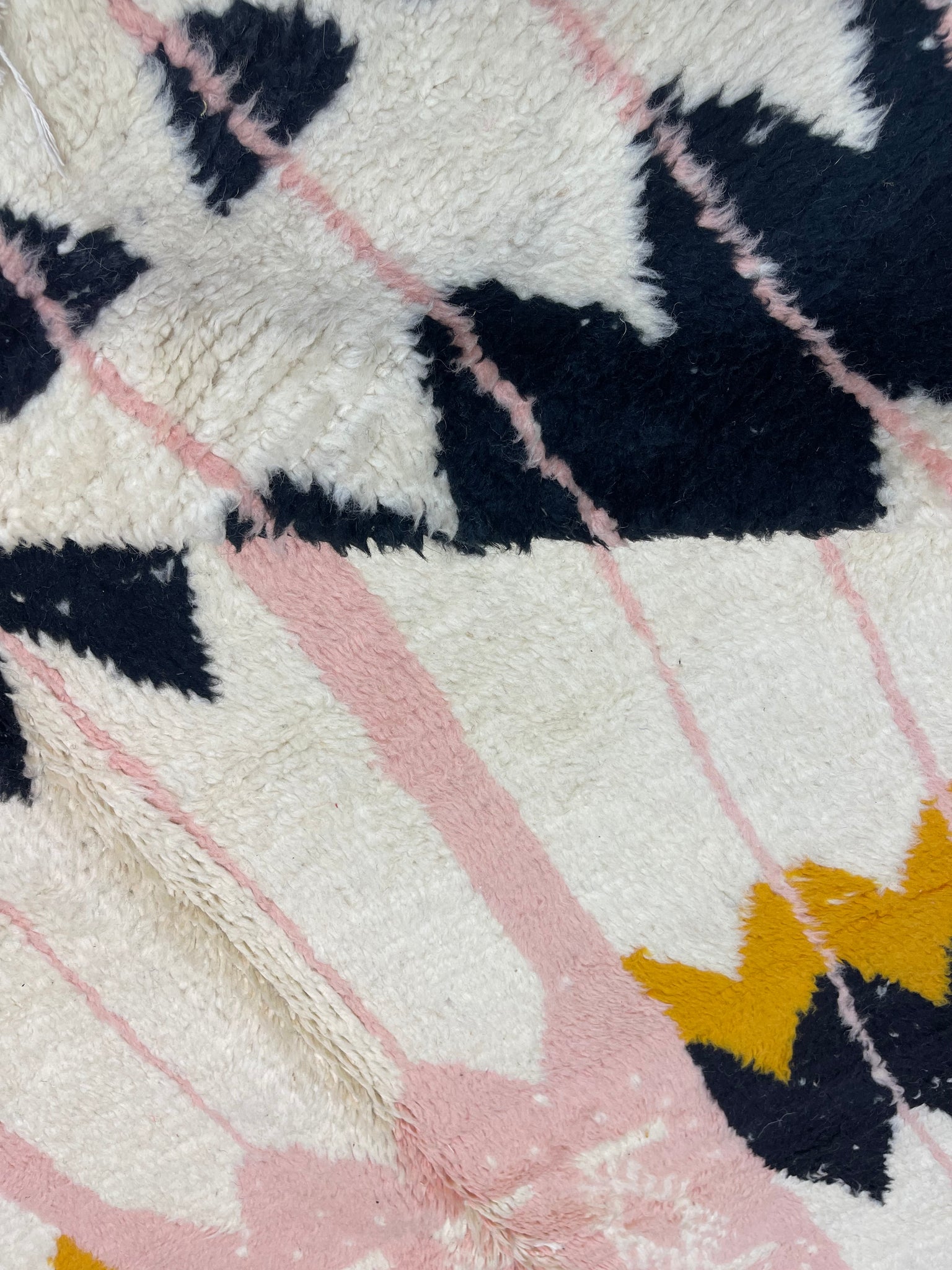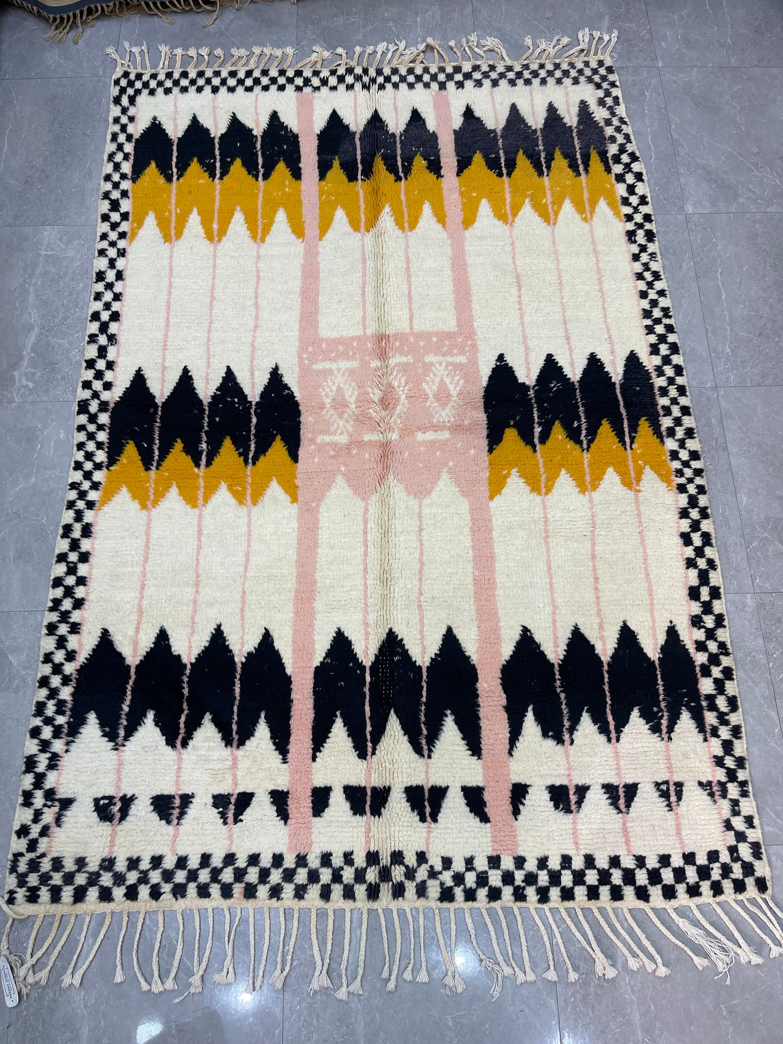 Modern Beni OURAIN rug, hand knotted by talented Berber dexterous weavers and professionally washed in Khenifra City. 100% premium wool and all natural organic ingredients are used to ensure pliability, a plush feel and exceptionally soft texture of these beautiful rugs.