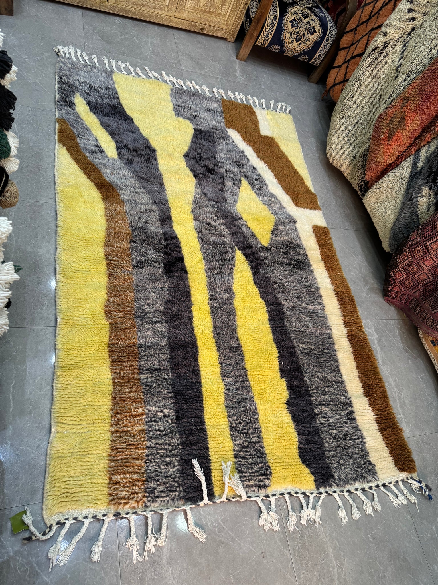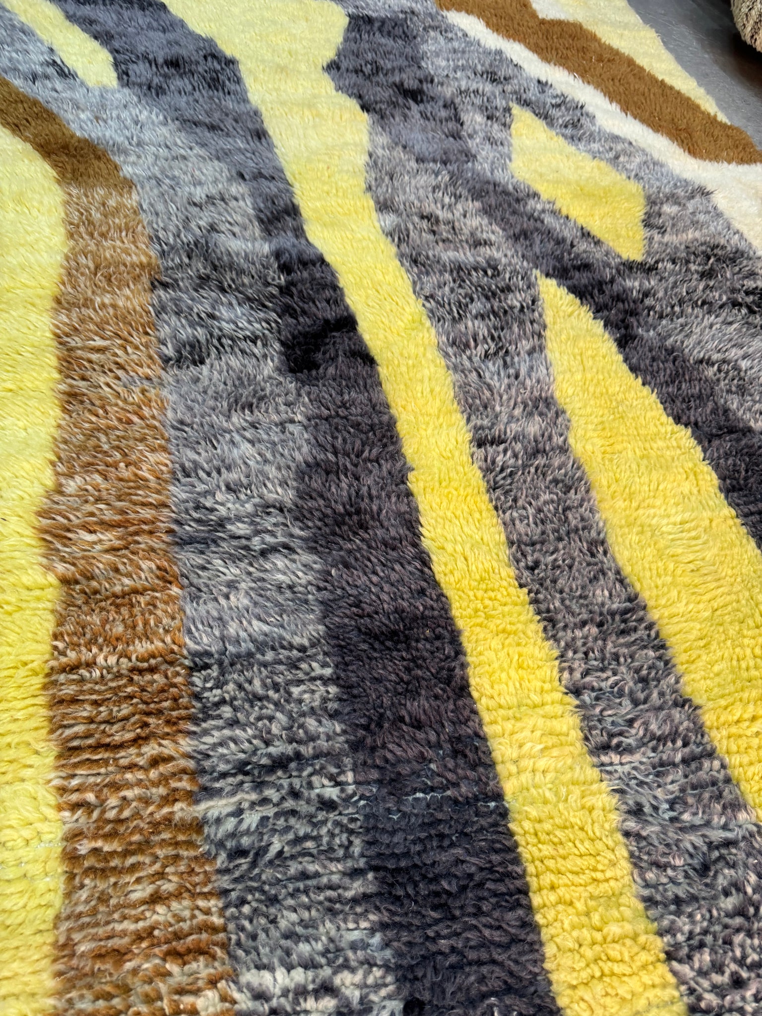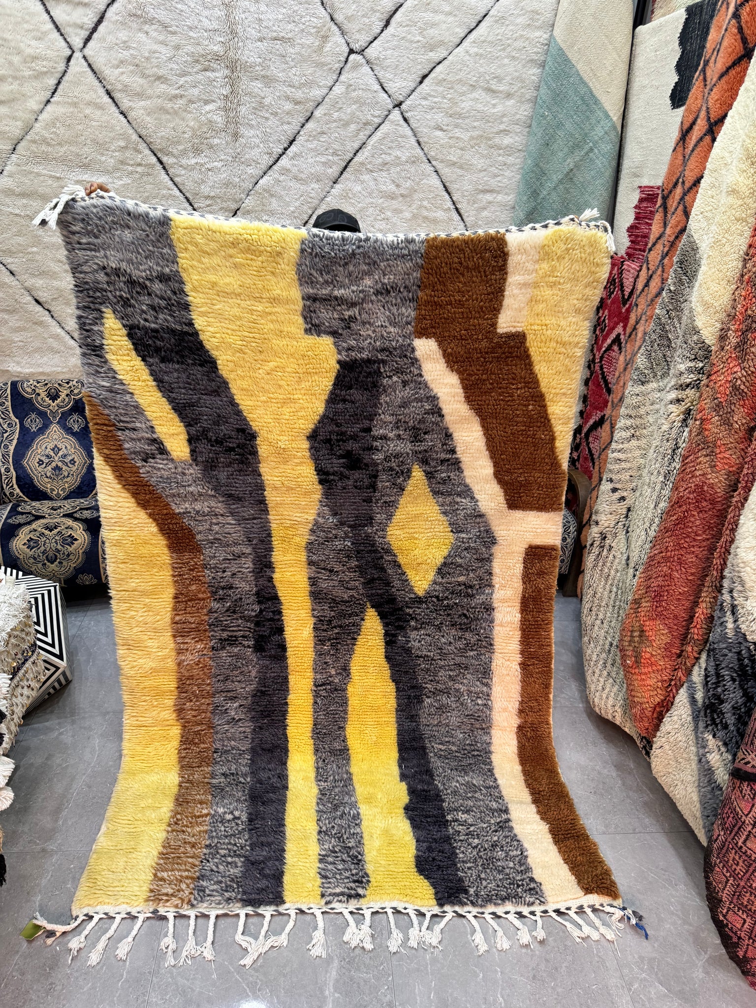 Modern Beni OURAIN rug, hand knotted by talented Berber dexterous weavers and professionally washed in Khenifra City. 100% premium wool and all natural organic ingredients are used to ensure pliability, a plush feel and exceptionally soft texture of these beautiful rugs.