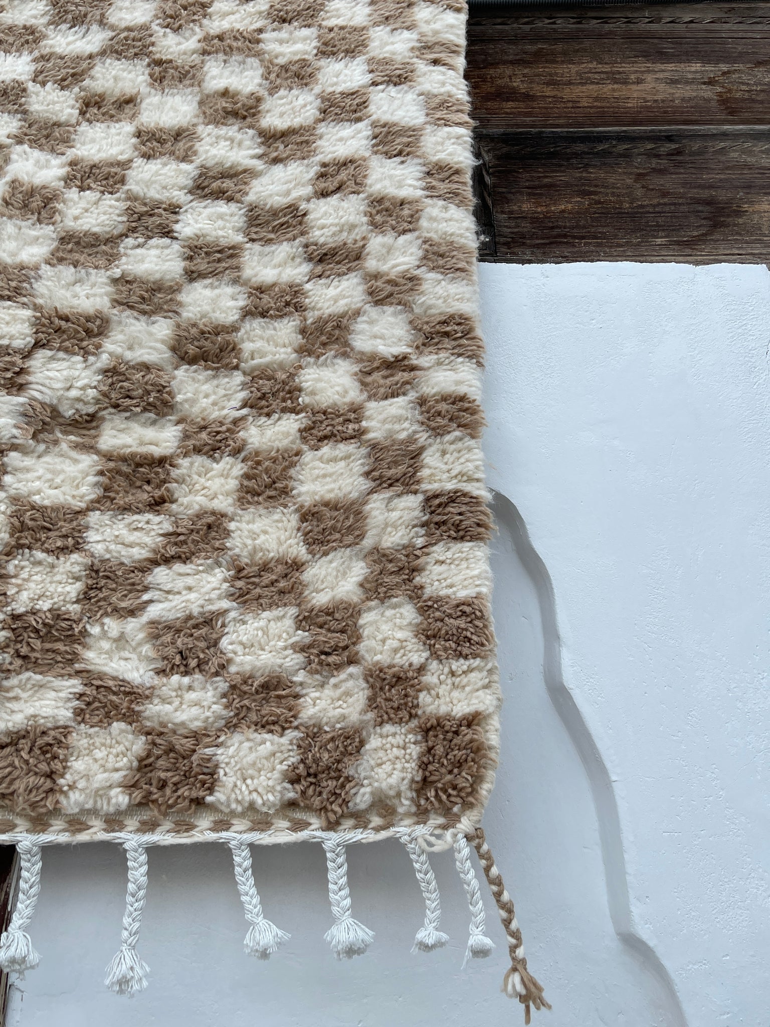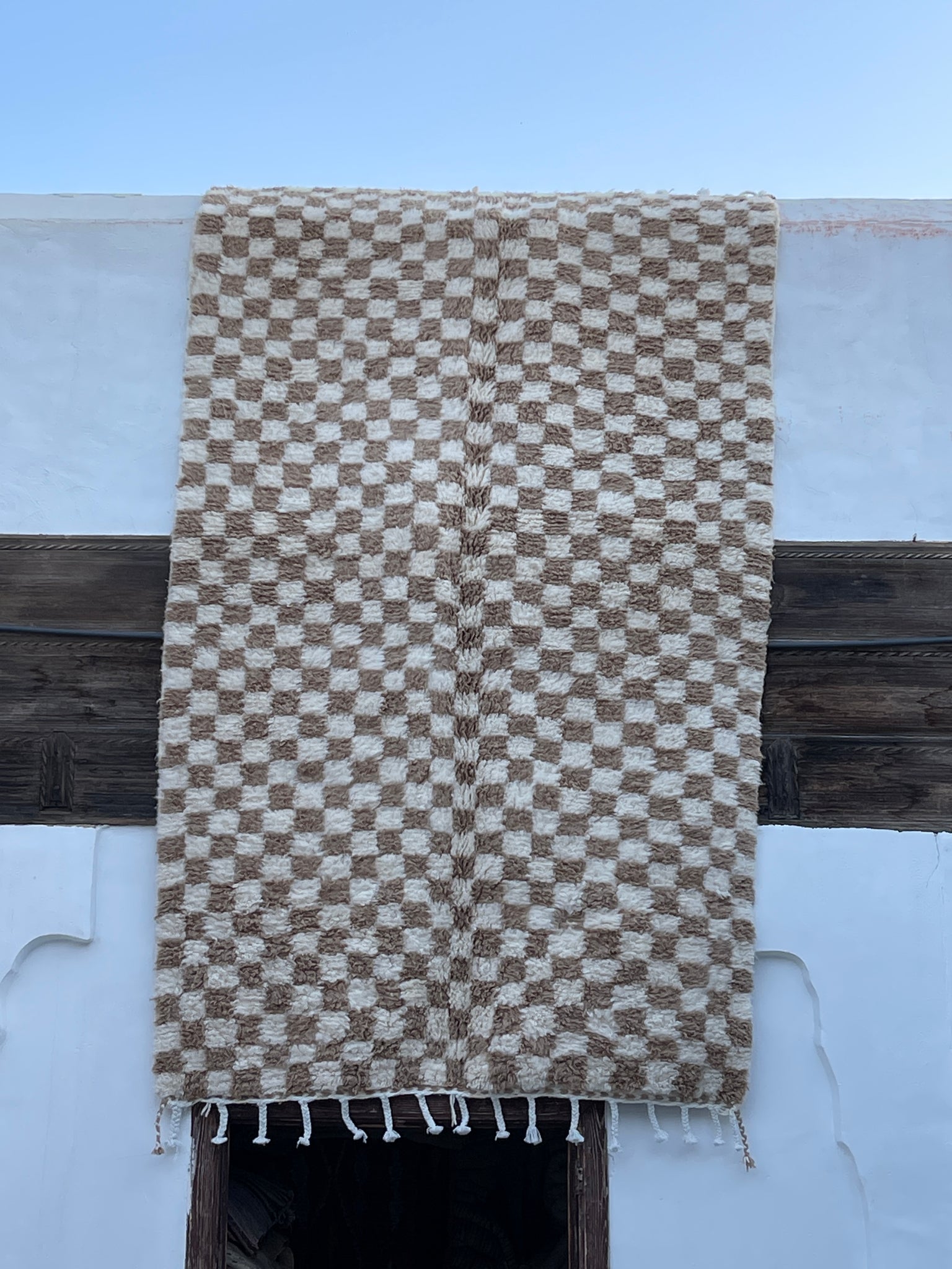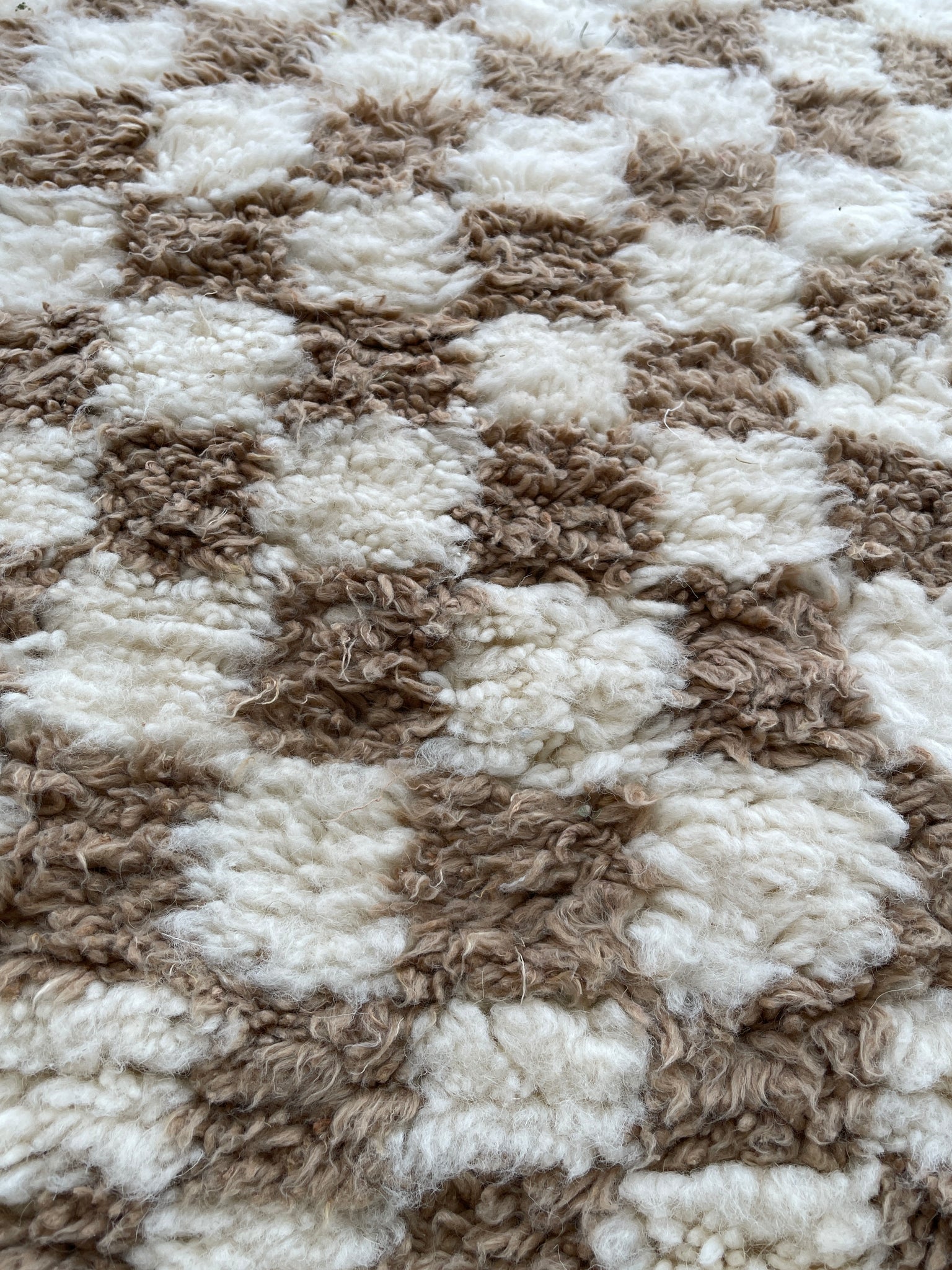 Modern Beni OURAIN rug, hand knotted by talented Berber dexterous weavers and professionally washed in Khenifra City. 100% premium wool and all natural organic ingredients are used to ensure pliability, a plush feel and exceptionally soft texture of these beautiful rugs.