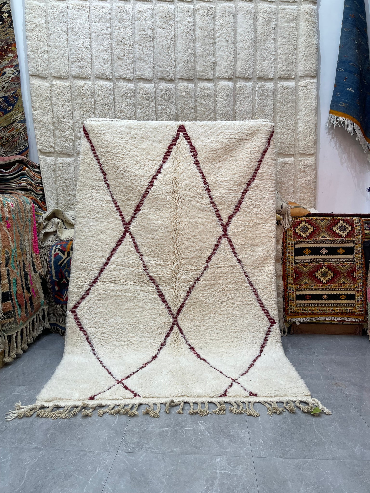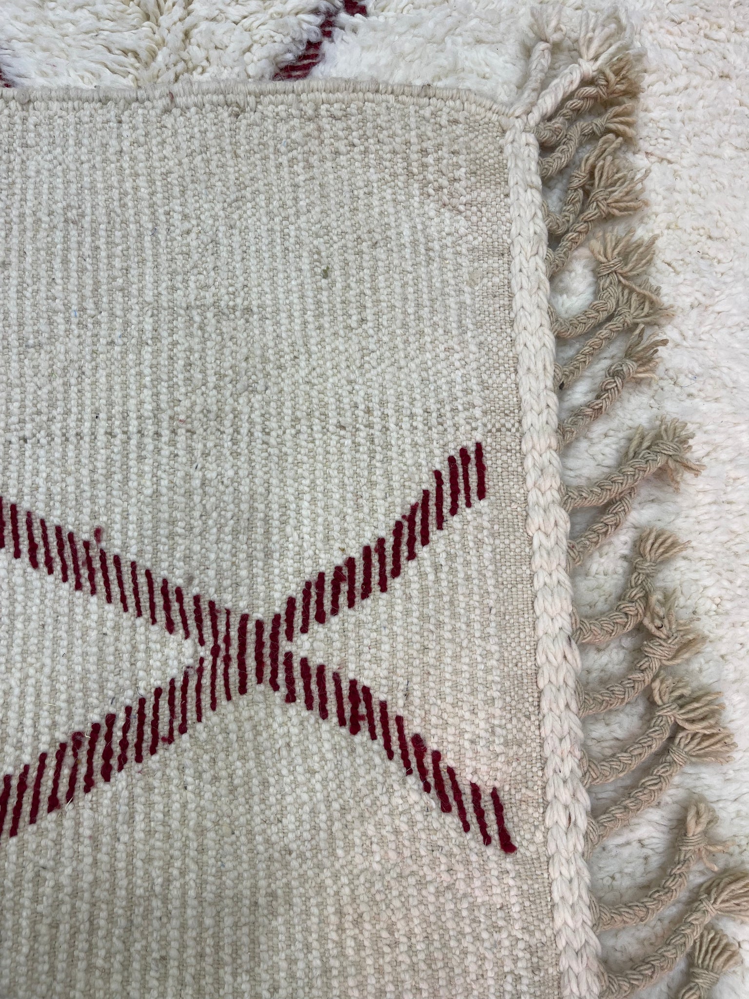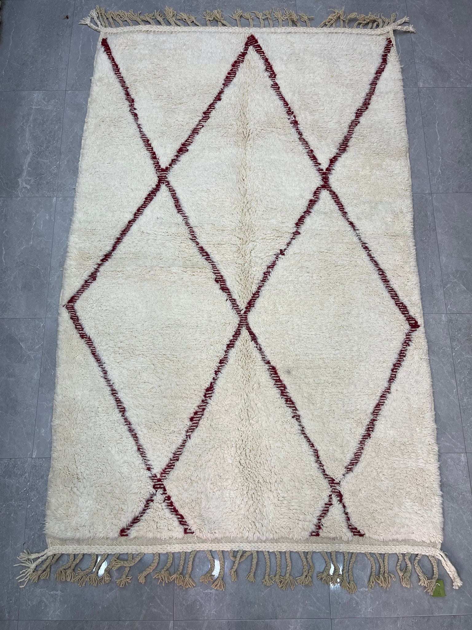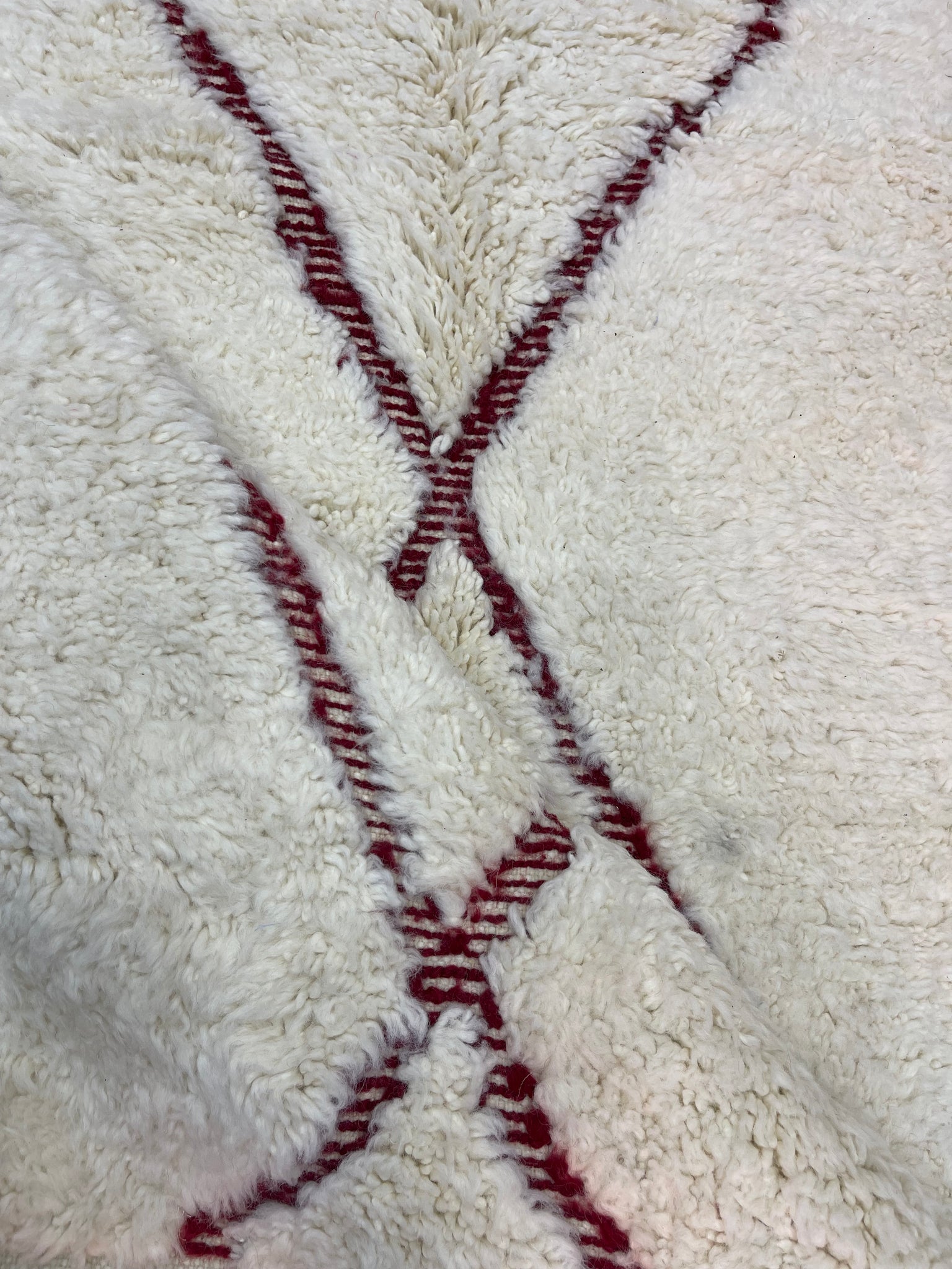Modern Beni OURAIN rug, hand knotted by talented Berber dexterous weavers and professionally washed in Khenifra City. 100% premium wool and all natural organic ingredients are used to ensure pliability, a plush feel and exceptionally soft texture of these beautiful rugs.