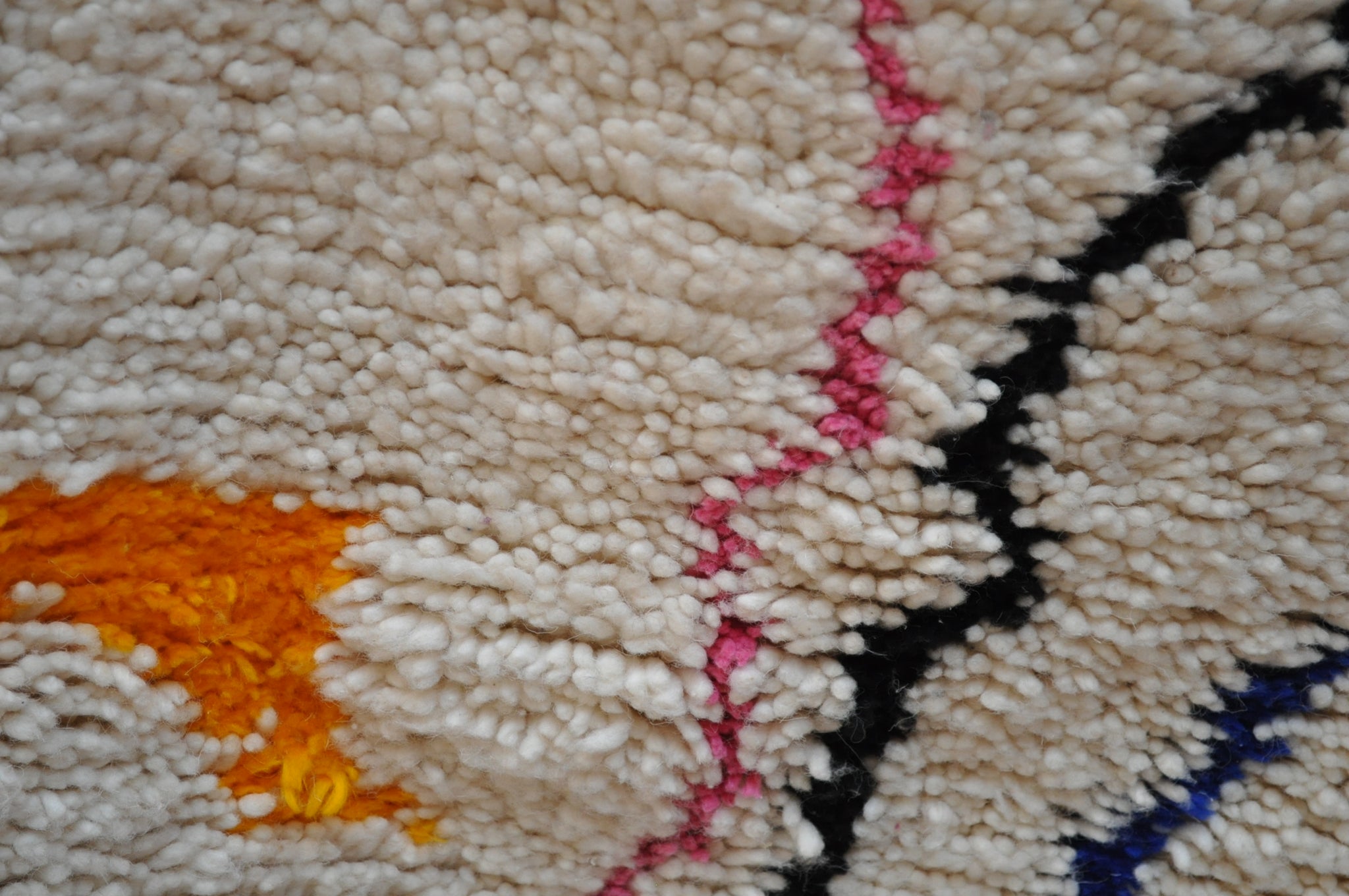 This wonderful vintage Moroccan traditional Berber Boujaad carpet is 100% handmade by the Atlas mountain's artist Berber women, with this special Moroccan design that comes from the Atlas mountain's artist Berber Women's imagination, and it will make a change in your house.