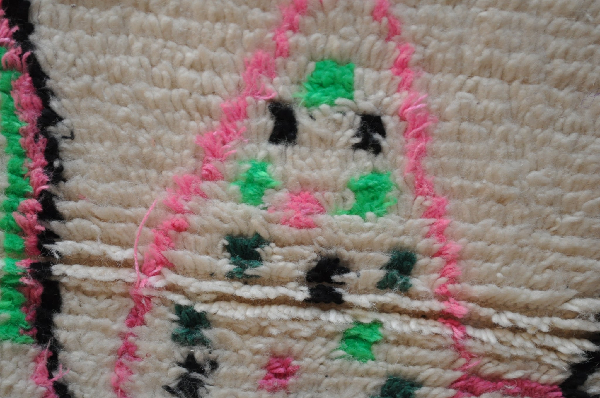 This wonderful vintage Moroccan traditional Berber Boujaad carpet is 100% handmade by the Atlas mountain's artist Berber women, with this special Moroccan design that comes from the Atlas mountain's artist Berber Women's imagination, and it will make a change in your house.