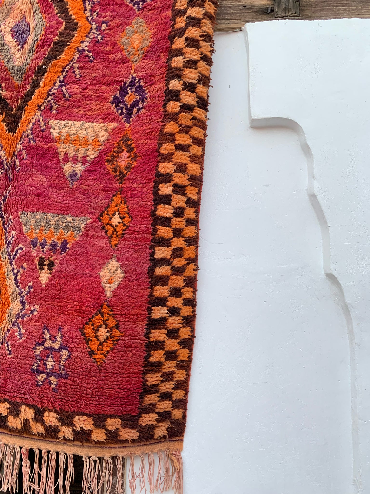 Each Moroccan vintage rug is chosen with expert care to ensure there are no obvious markings. However, being of vintage nature, some show signs of previous repair and others will have their trims repaired