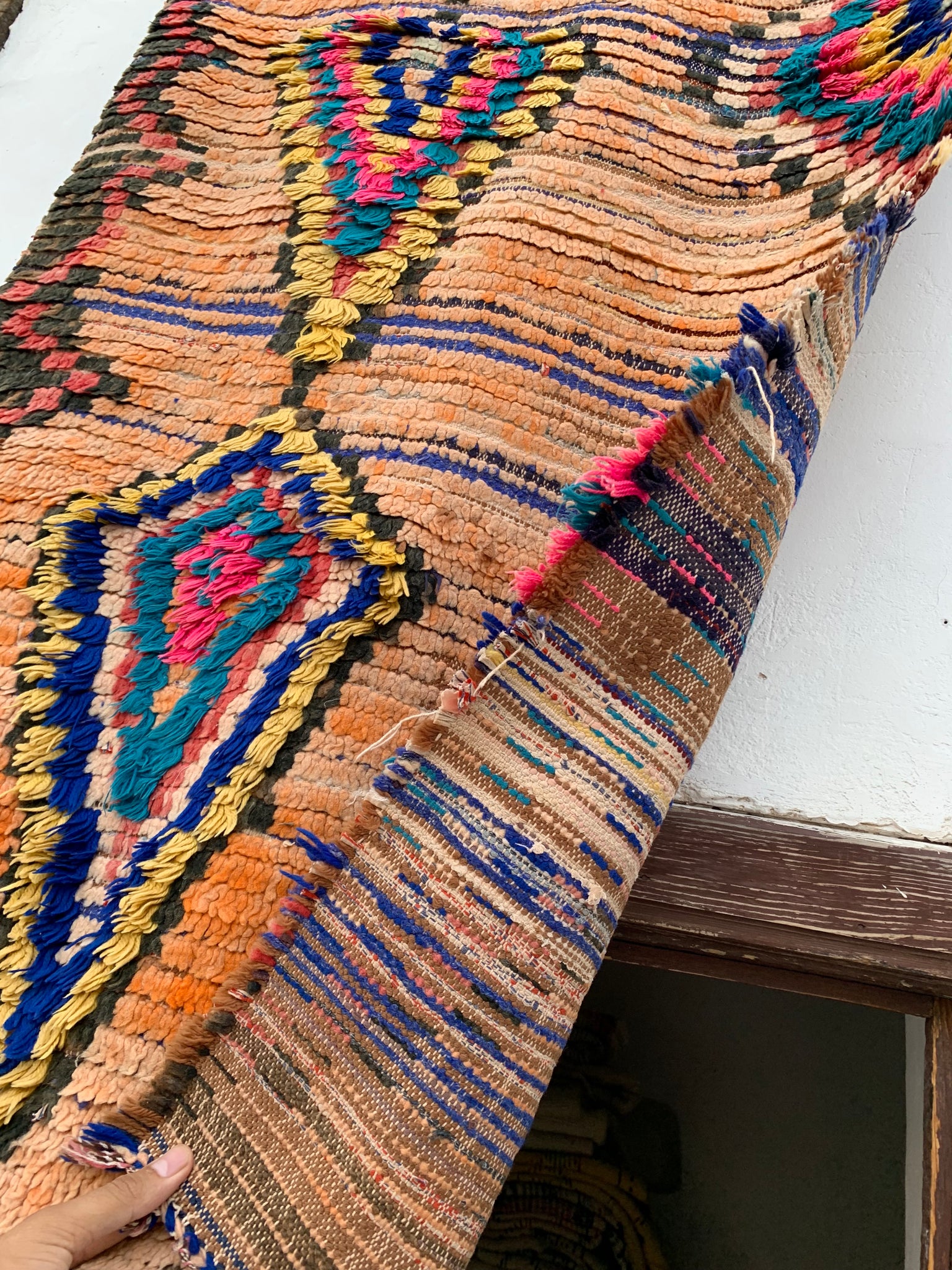 Each Moroccan vintage rug is chosen with expert care to ensure there are no obvious markings. However, being of vintage nature, some show signs of previous repair and others will have their trims repaired